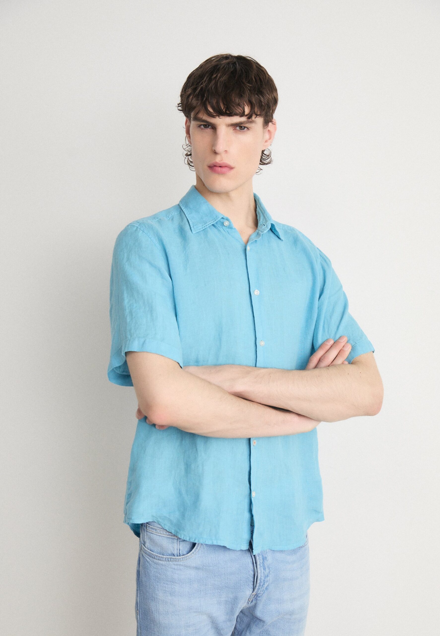 SLIM FIT LINEN SHIRT – Shirt – office blue