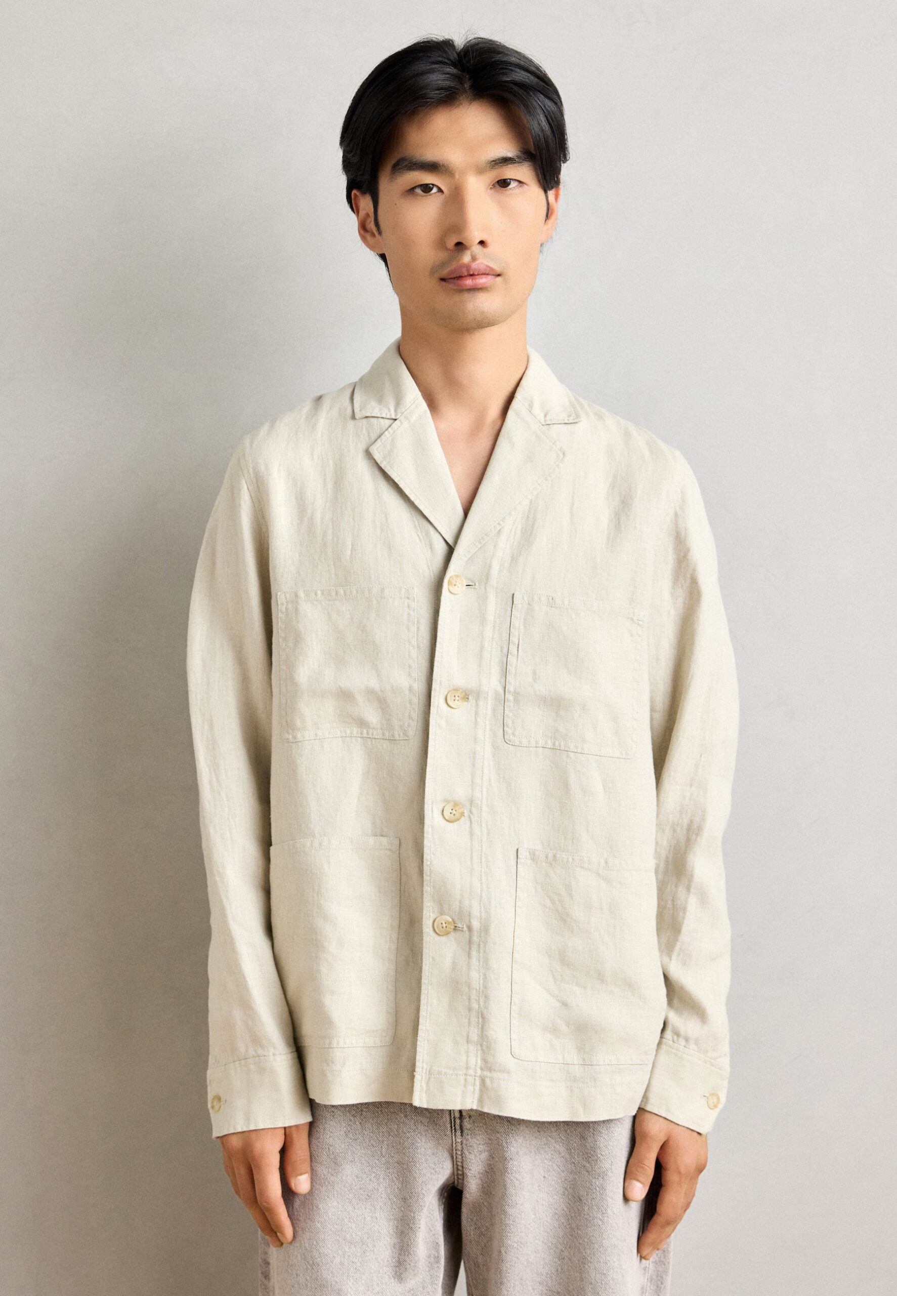 OVERSHIRT WITH BLAZER DETAILS PATCHED FRONT POCKETS STRAIGHT – Light jacket – gray