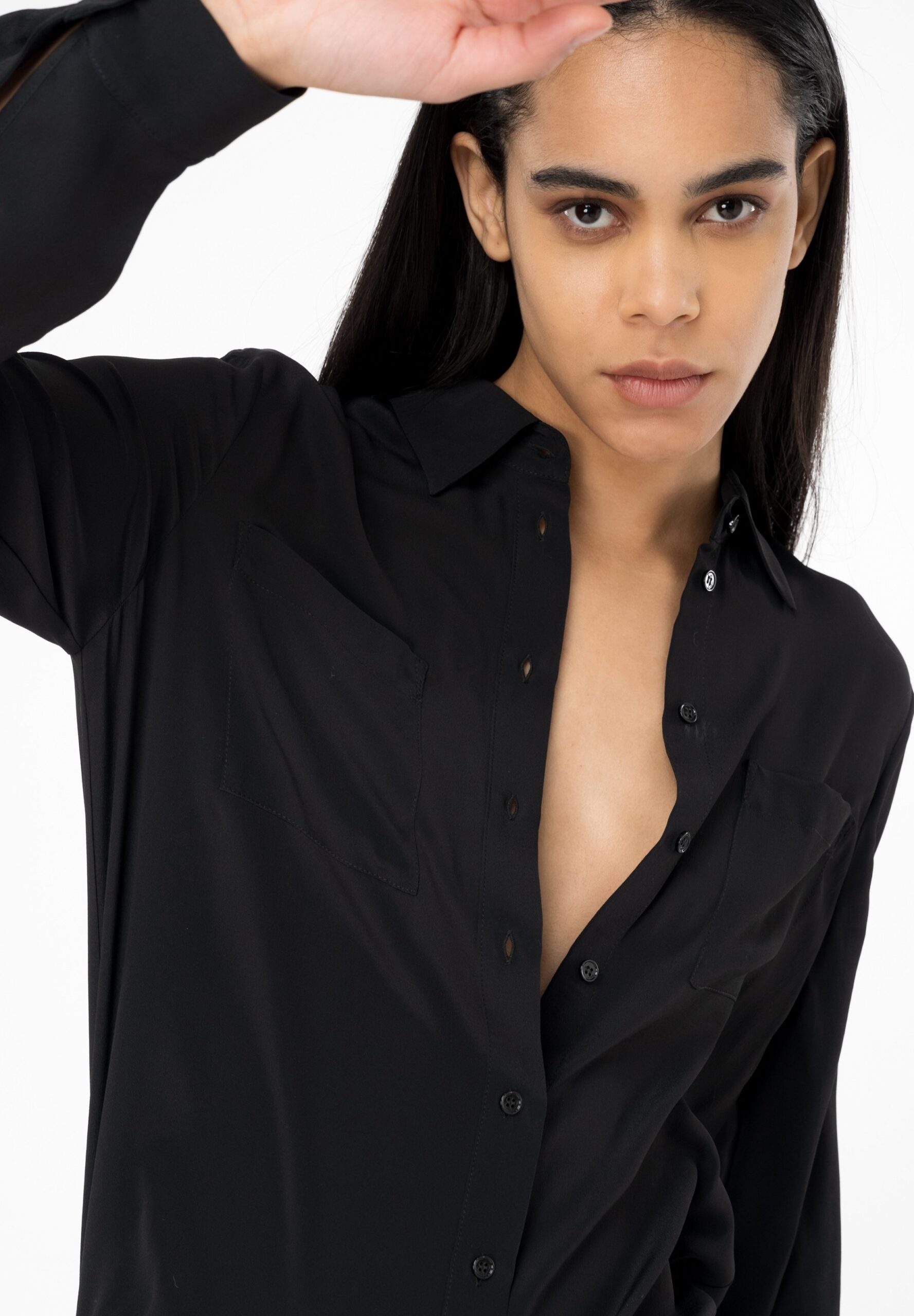 100124-A1O8 NORA – Button-down blouse – limo black