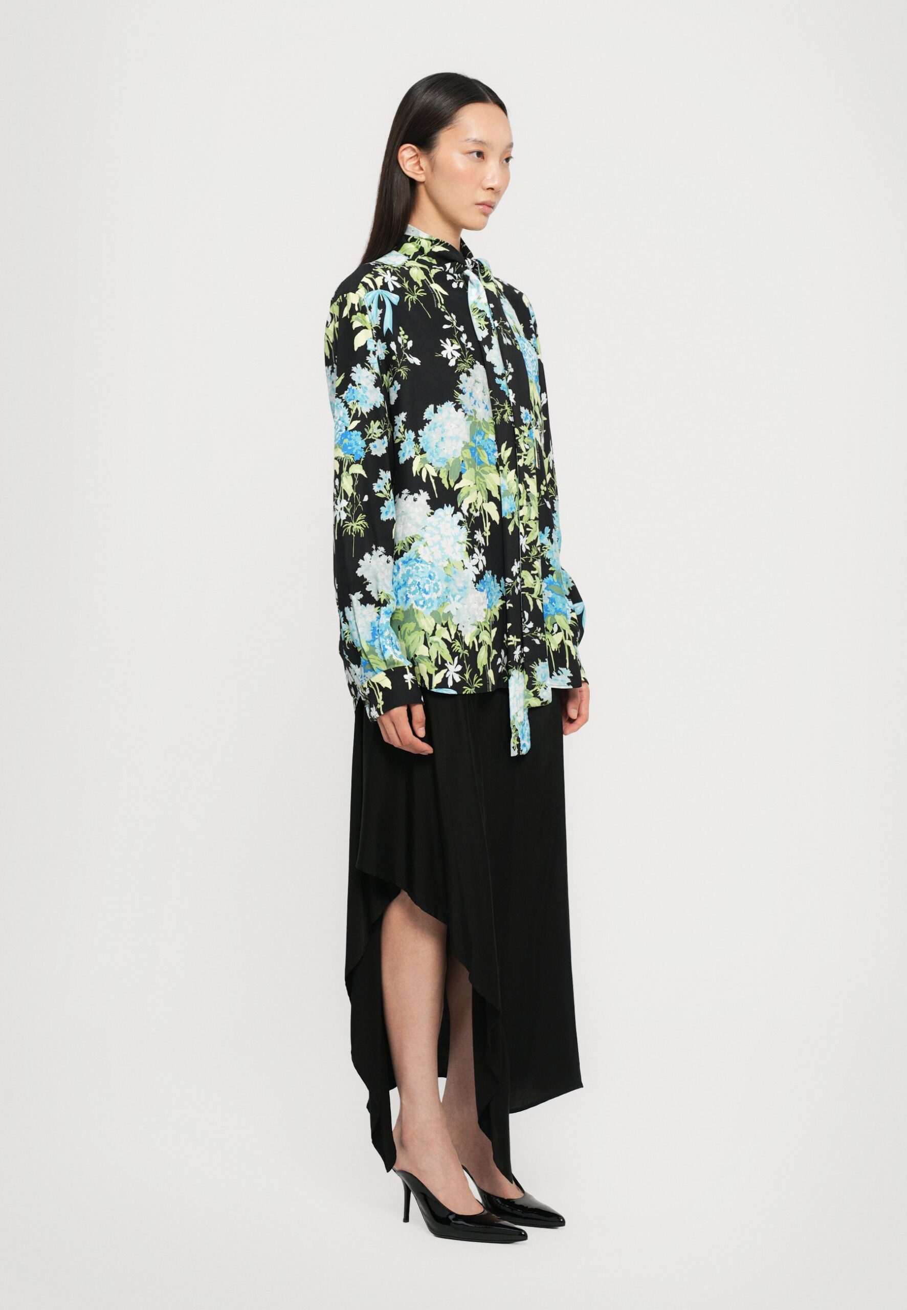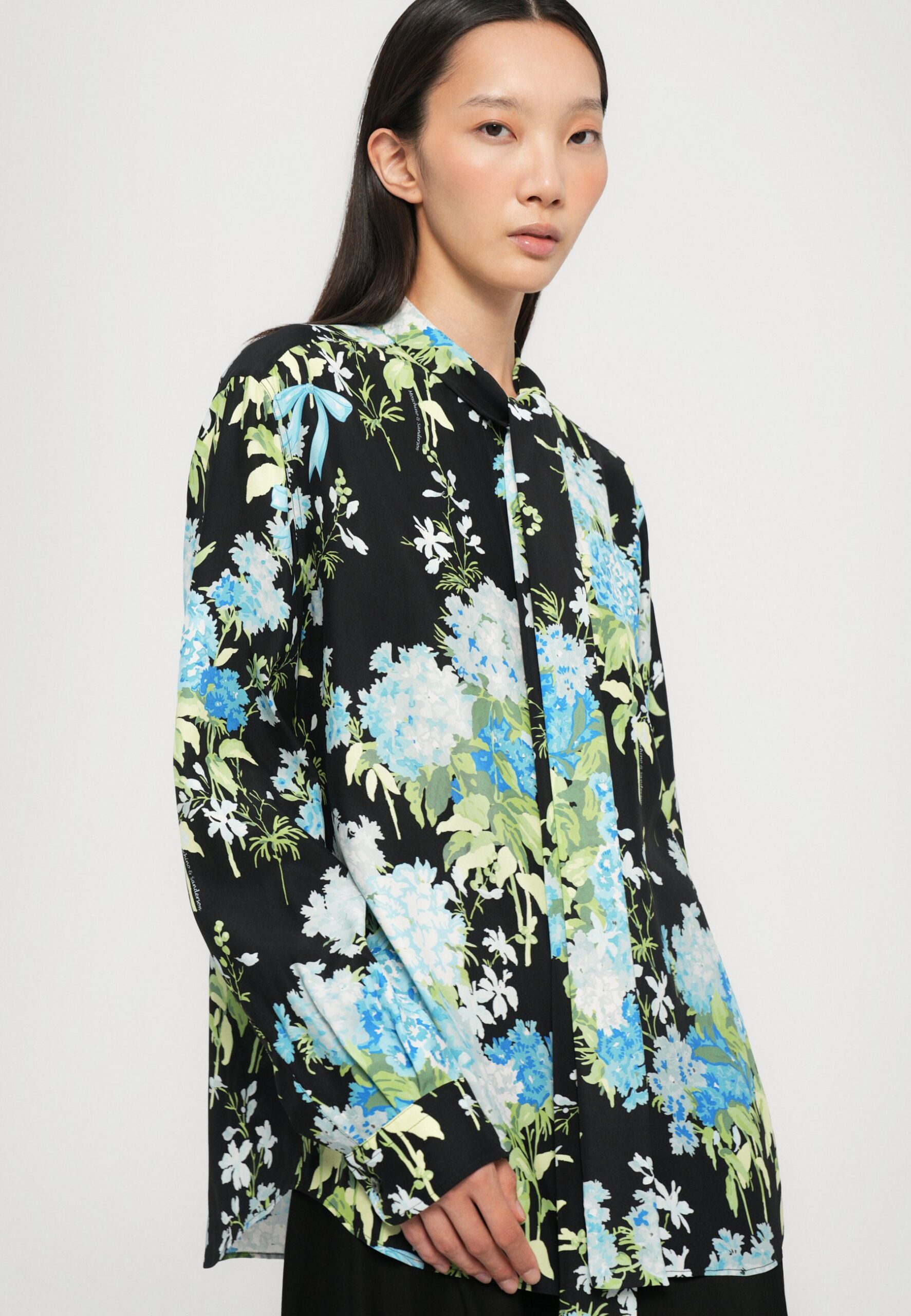 ALL OVER SWEET WILLIAMS PRINT – Button-down blouse – black