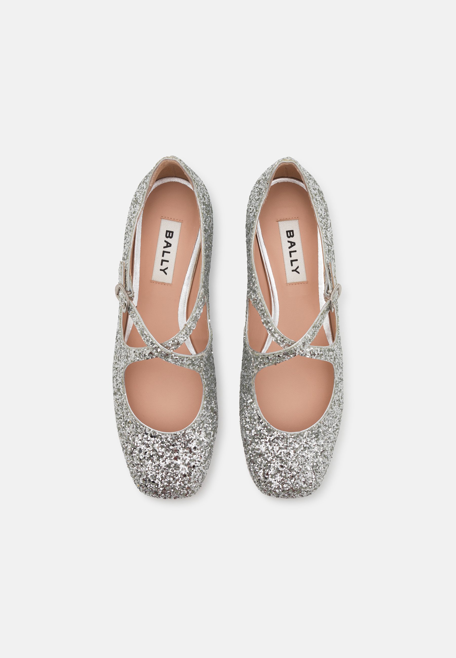 Ankle strap ballet pumps – silver