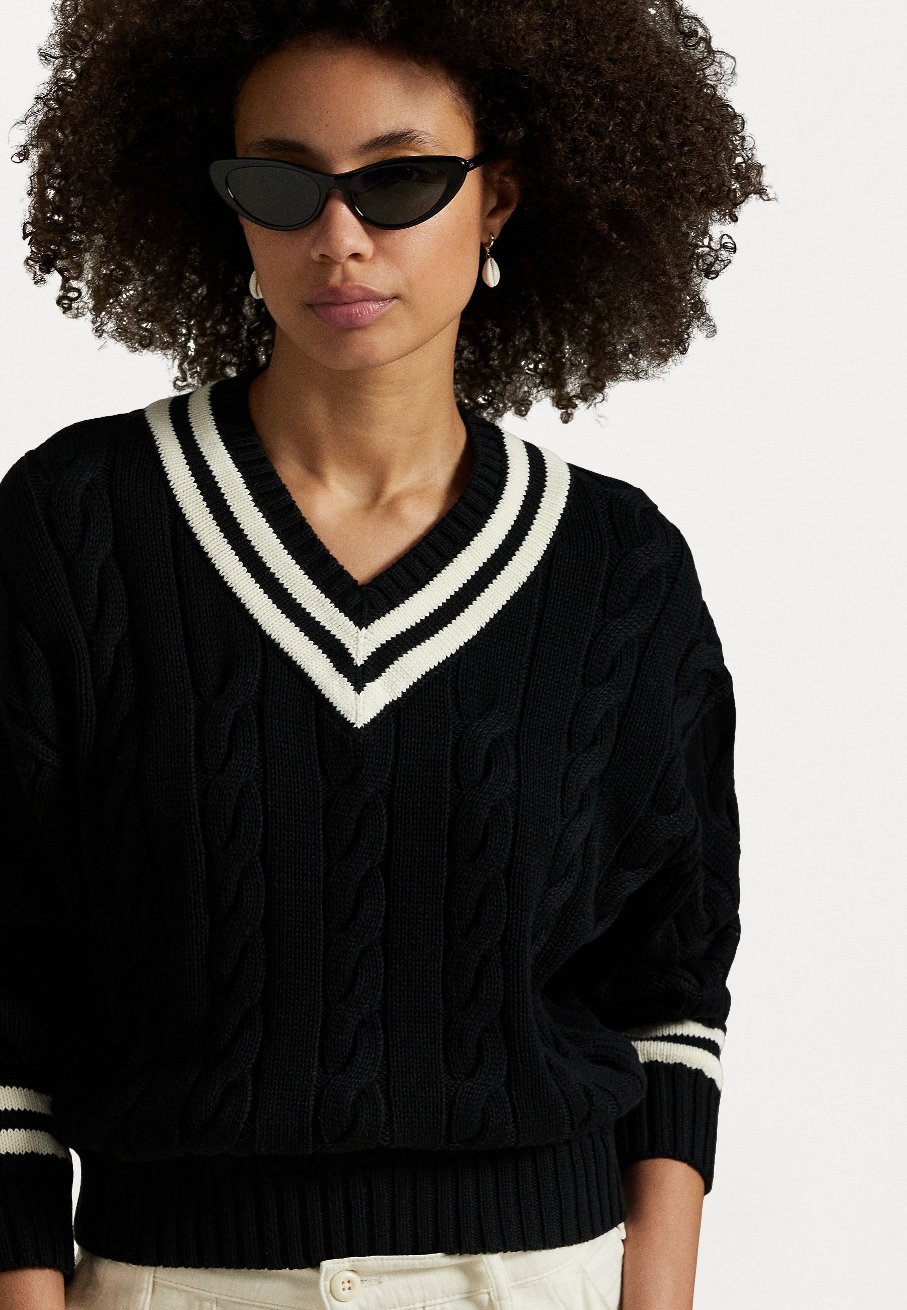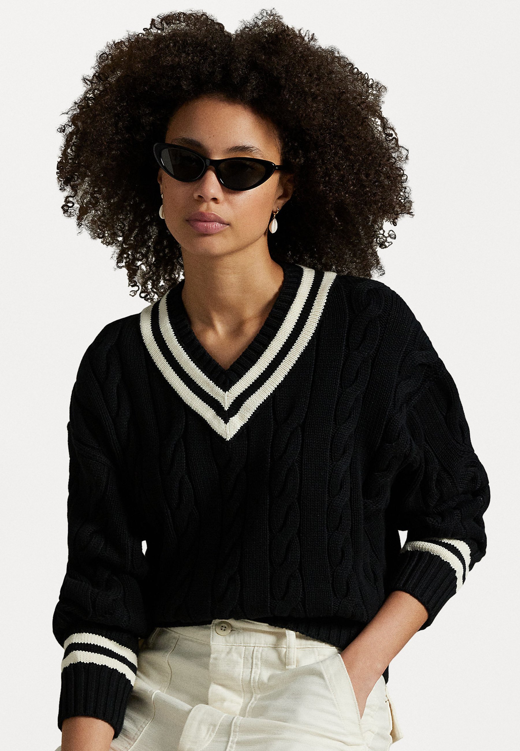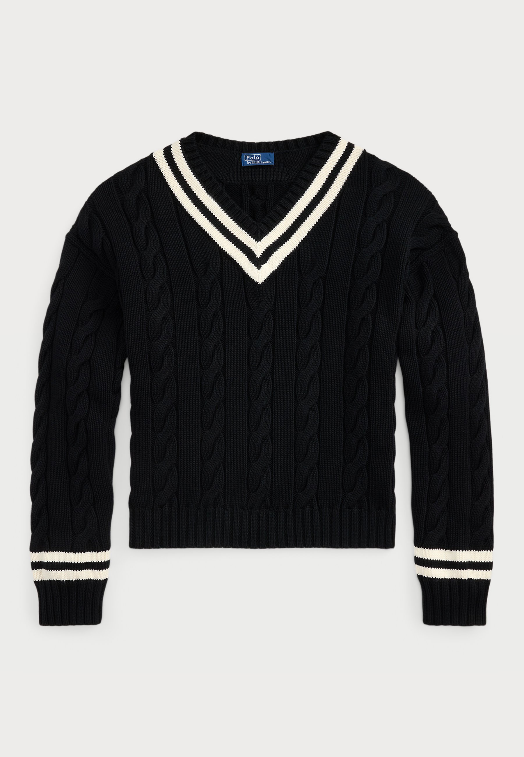 ARAN KNIT COTTON CRICKET JUMPER – Jumper – black/cricket cream