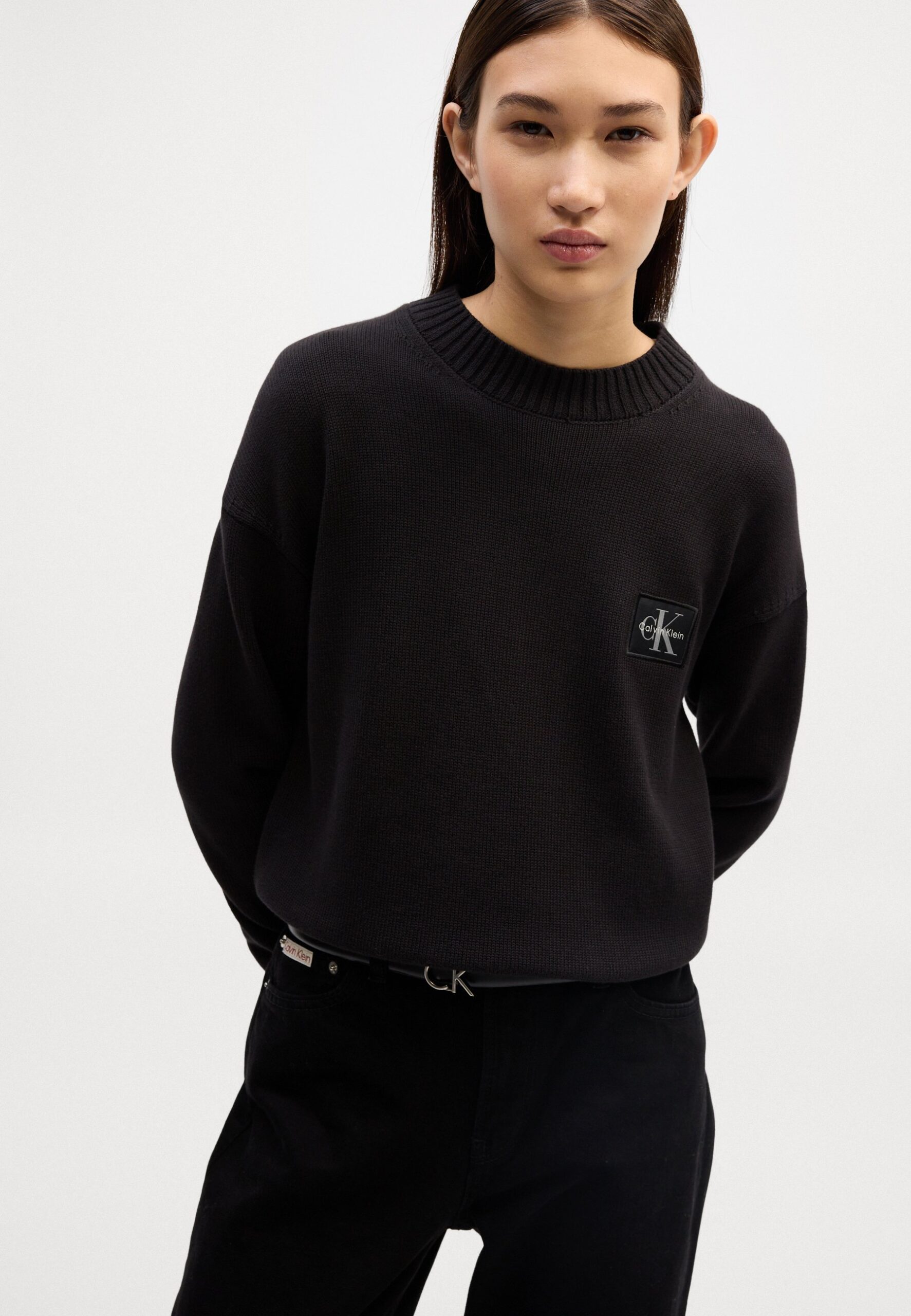 BADGE SWEATER – Jumper – black