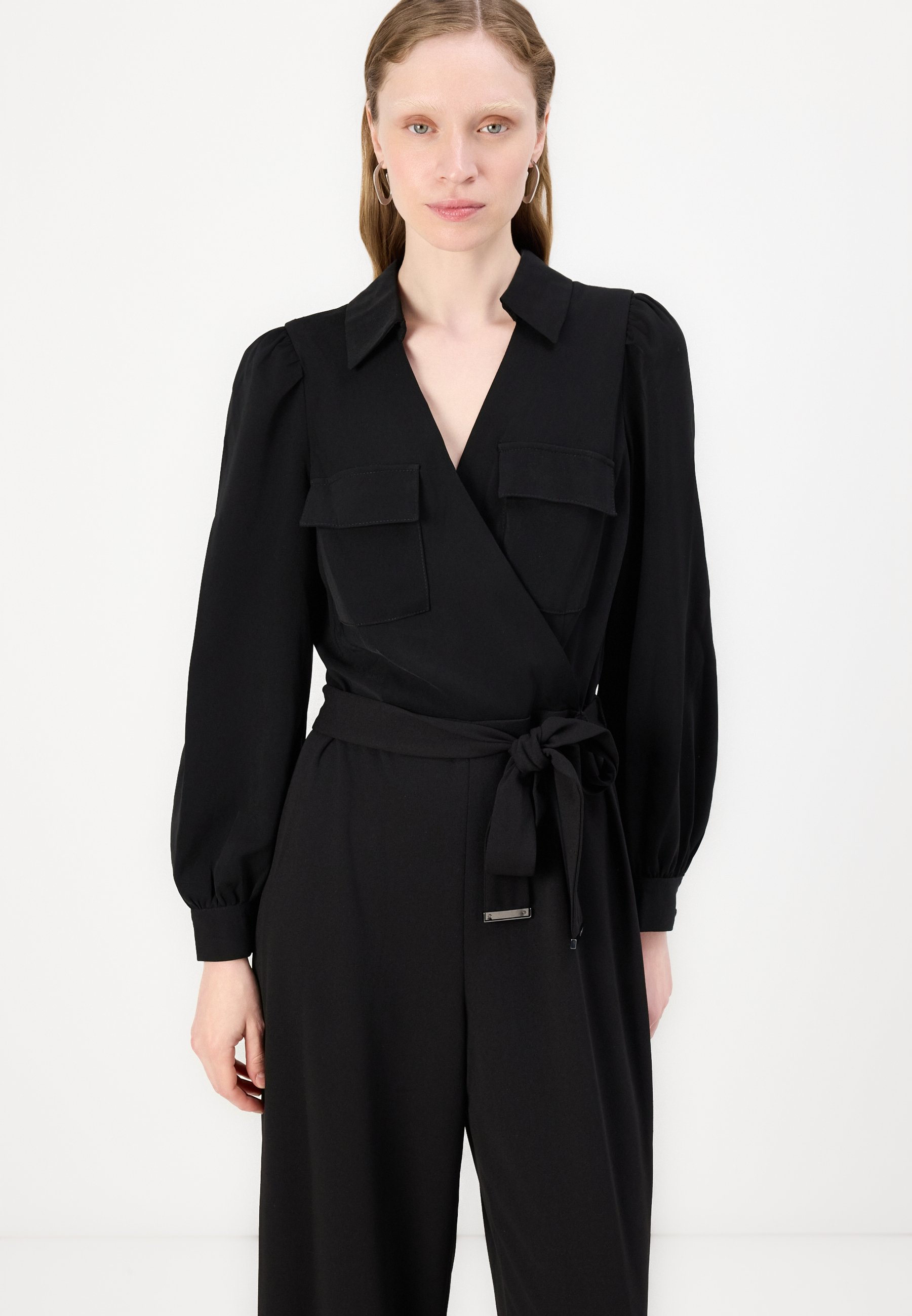BALLOON SLEEVE WITH COLLAR AND UTILITY POCKETS – Jumpsuit – black