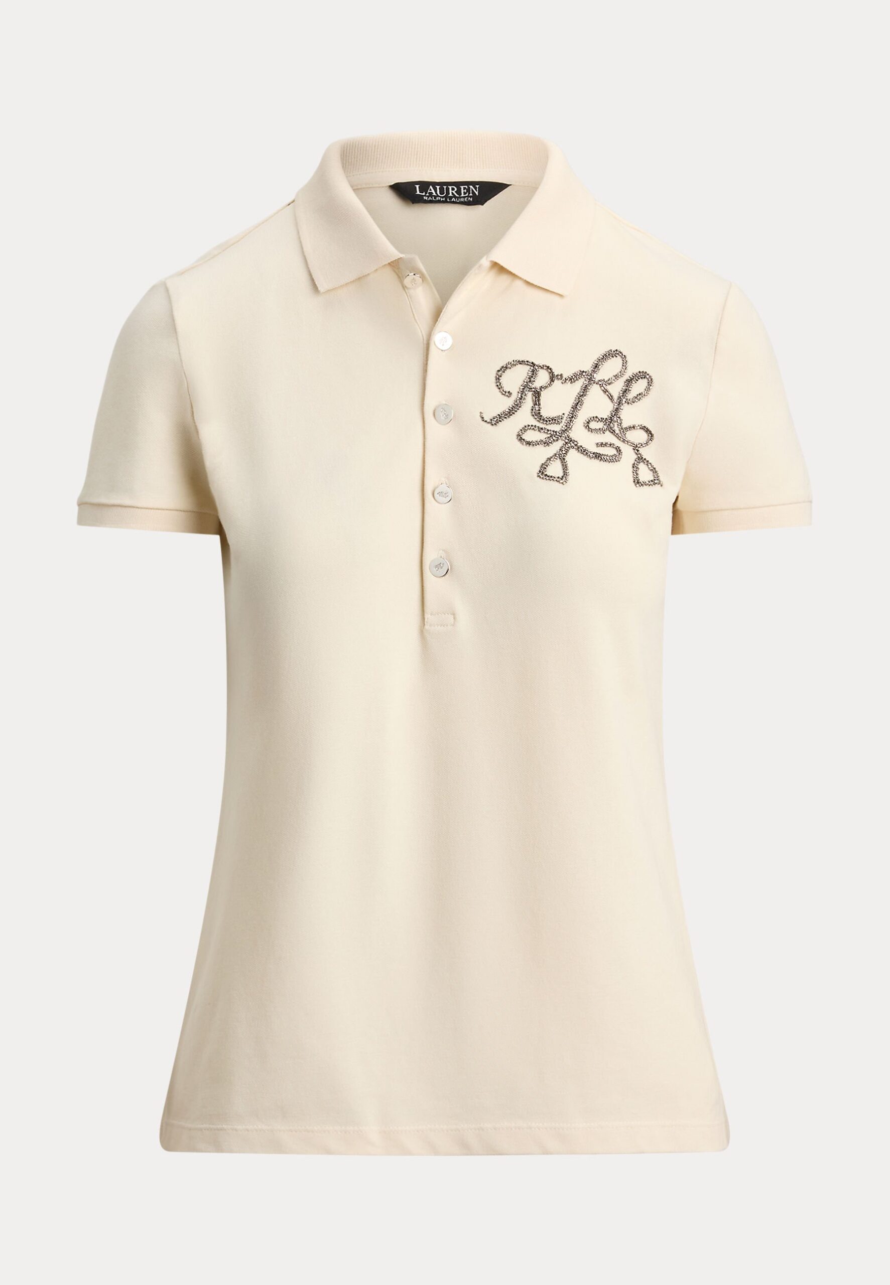 BEADED LOGO COTTON PIQUÉ POLO SHIRT – Polo shirt – mascarpone cream
