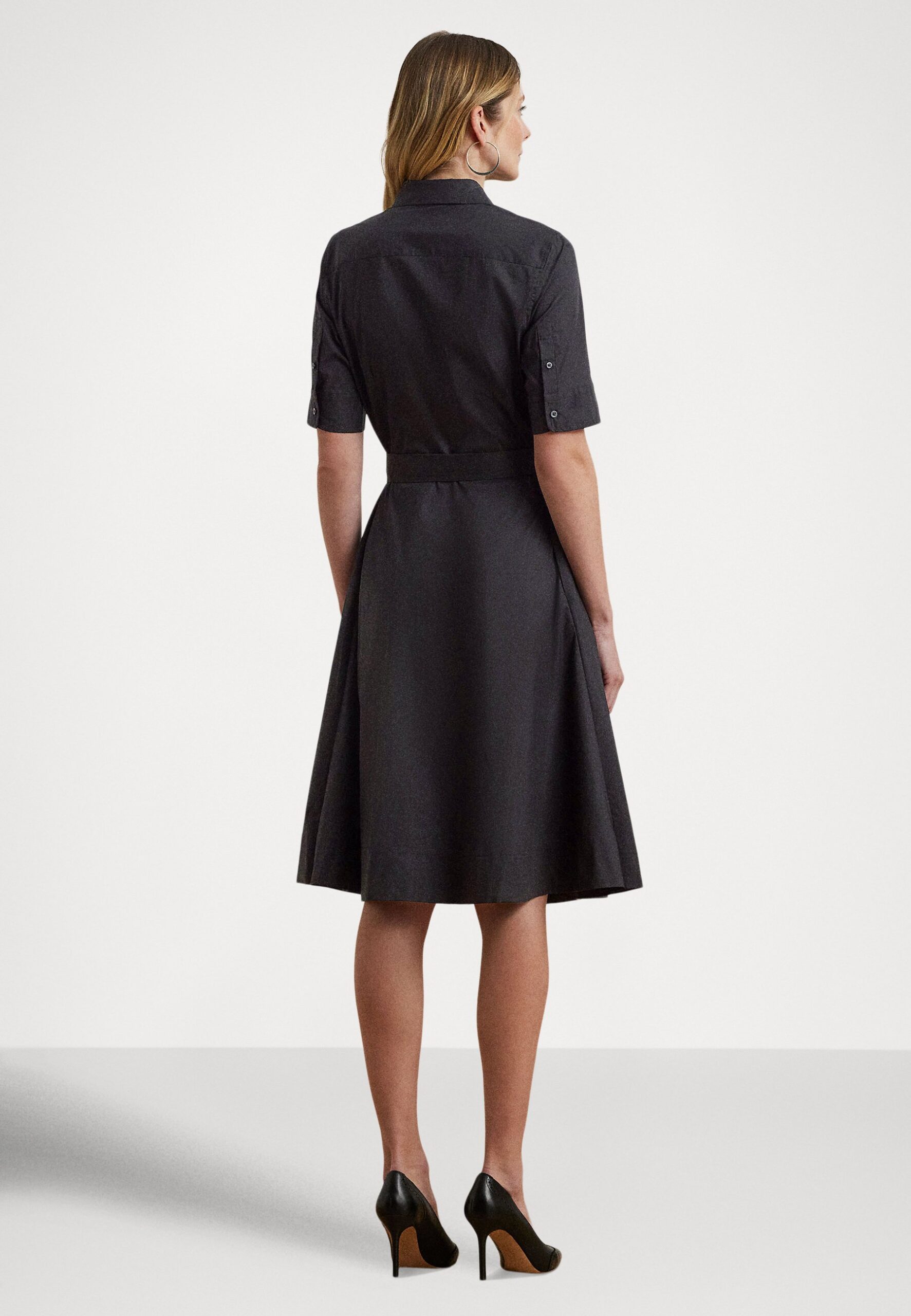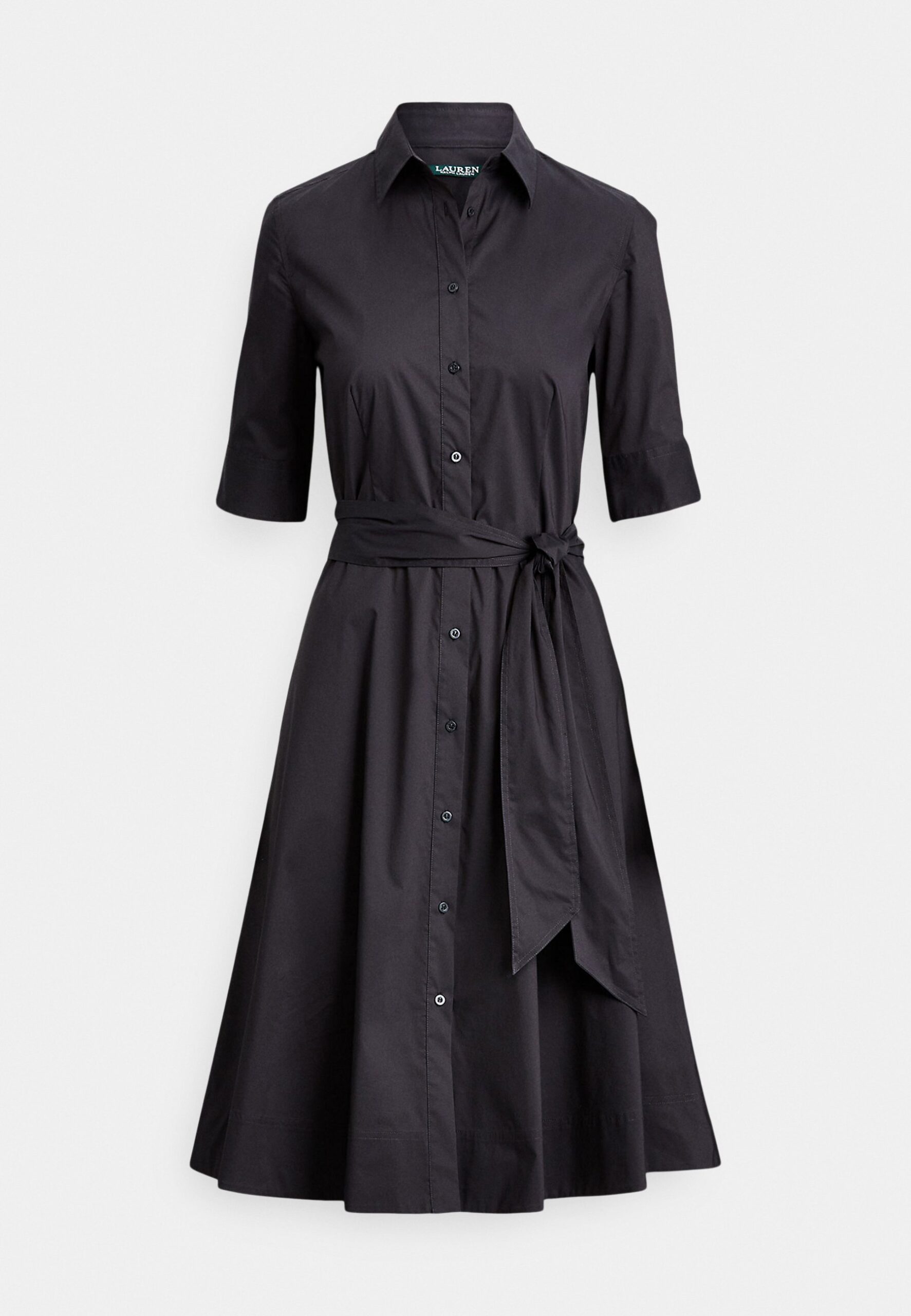 BELTED COTTON-BLEND SHIRTDRESS – Shirt dress – black