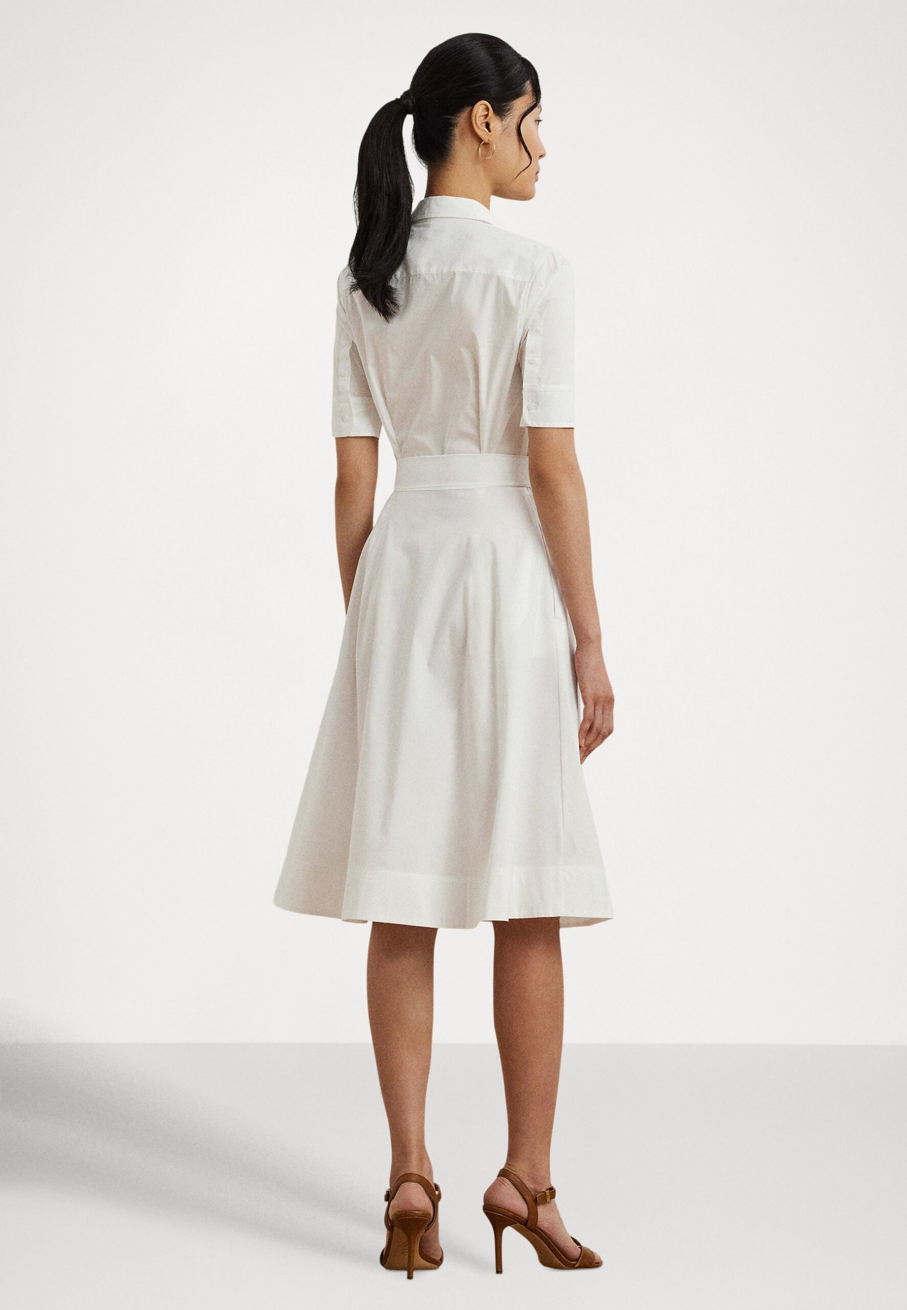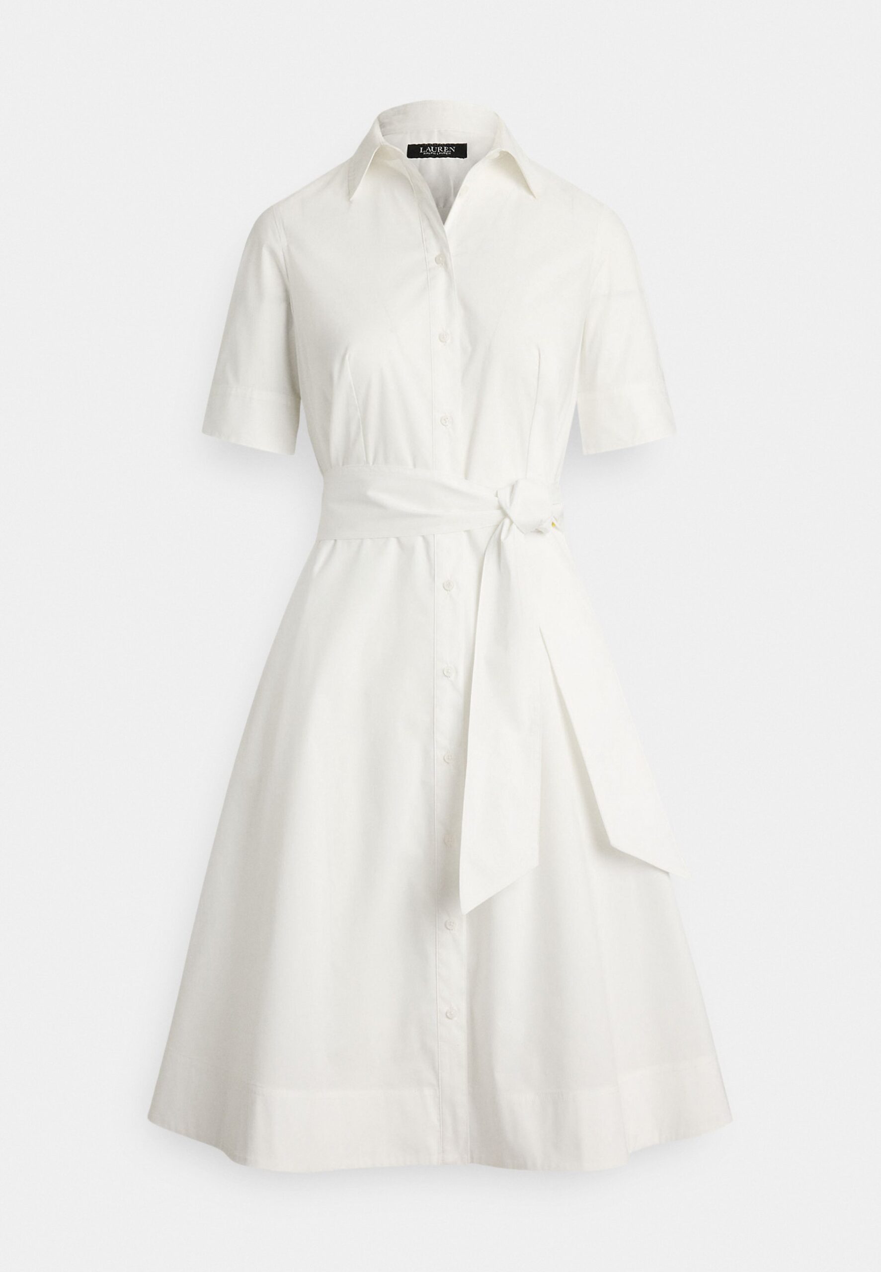 BELTED COTTON-BLEND SHIRTDRESS – Shirt dress – white