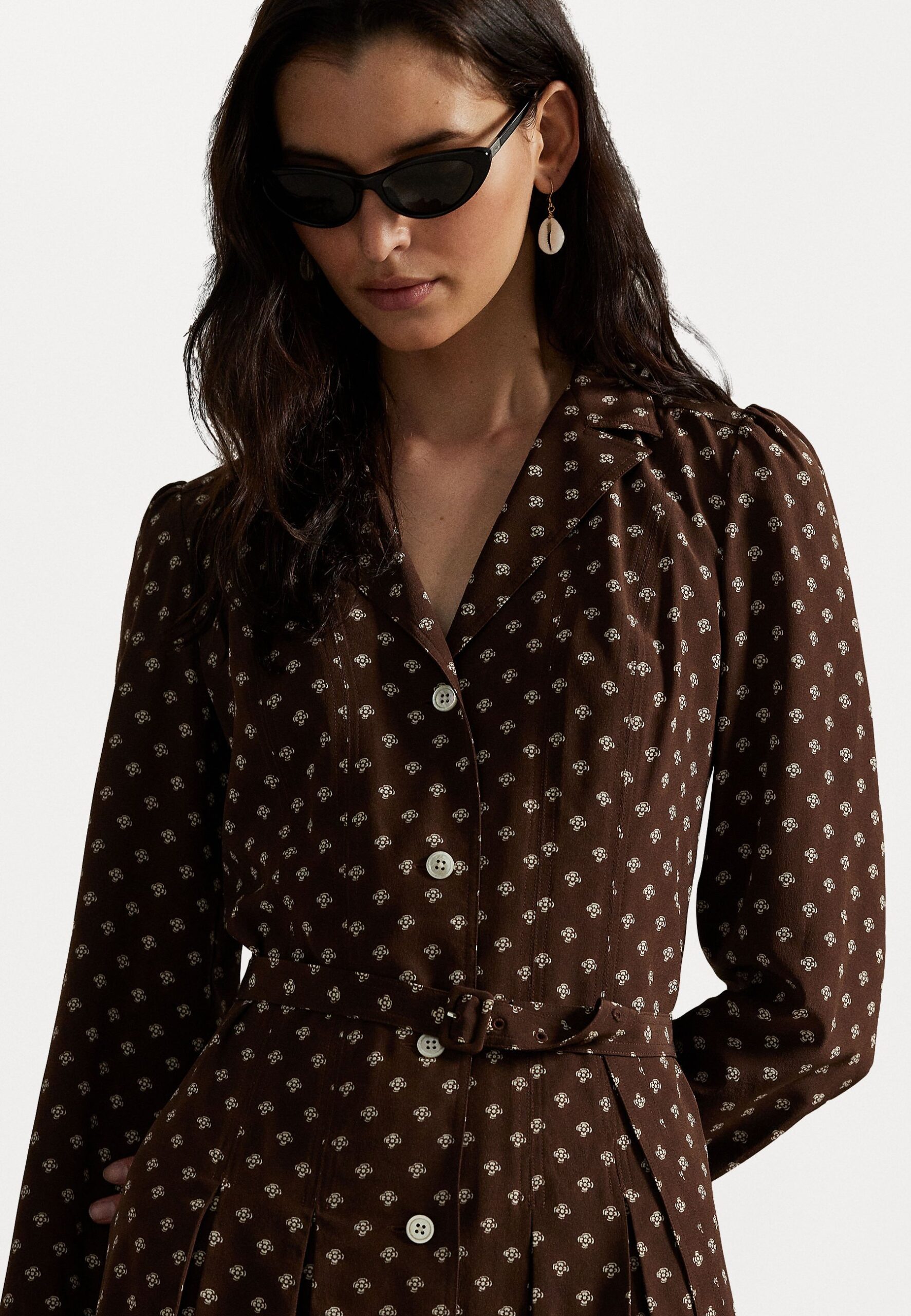 BELTED SILK CREPE SHIRTDRESS – Shirt dress – brown/cream