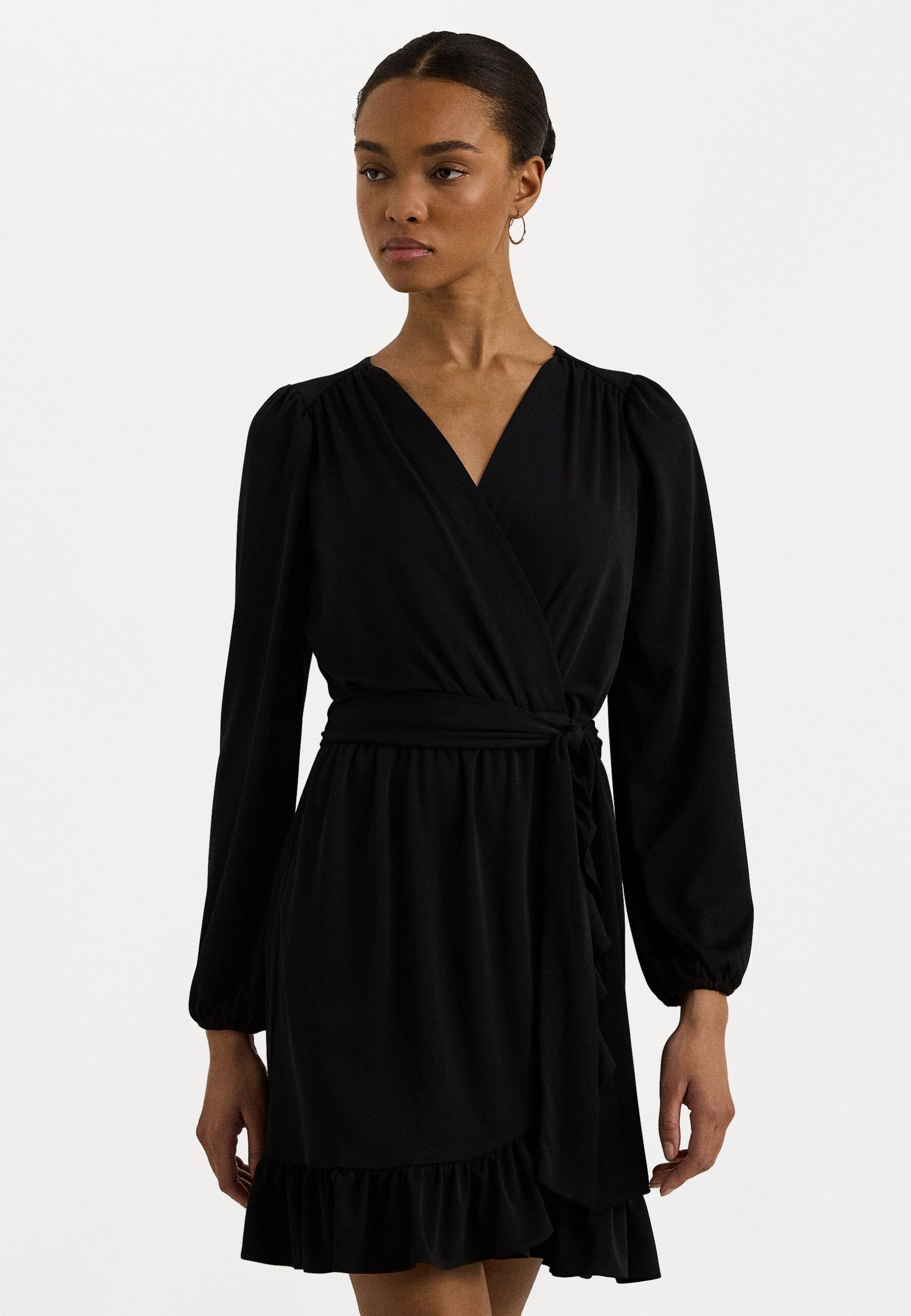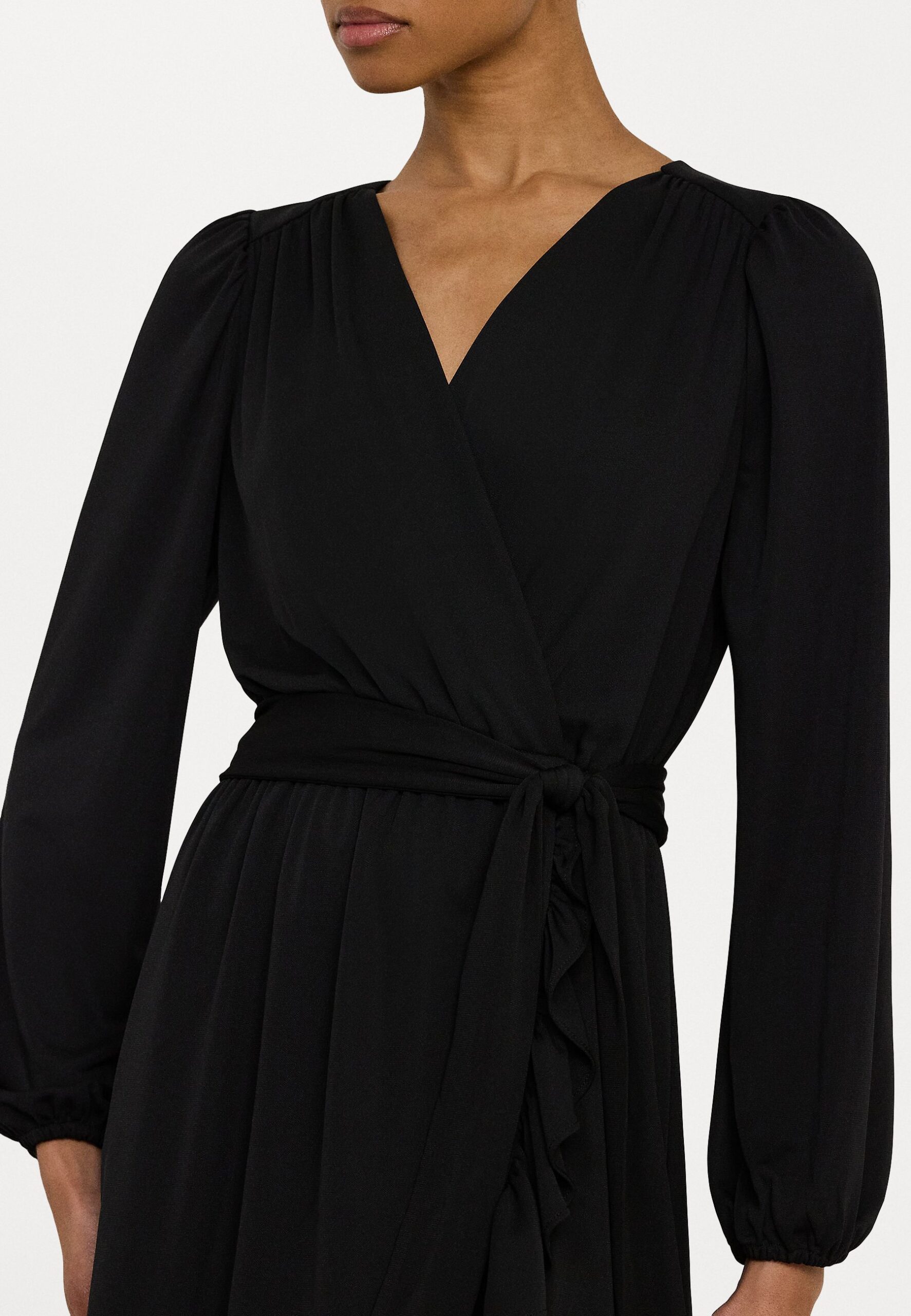 BELTED STRETCH JERSEY DRESS – Day dress – black