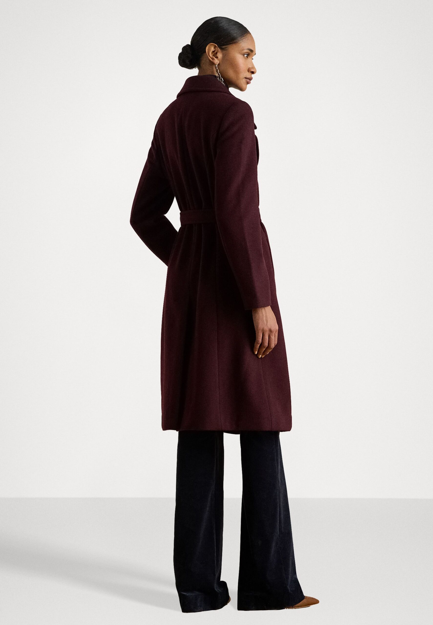 BELTED WOOL-BLEND WRAP COAT – Classic coat – pinot noir