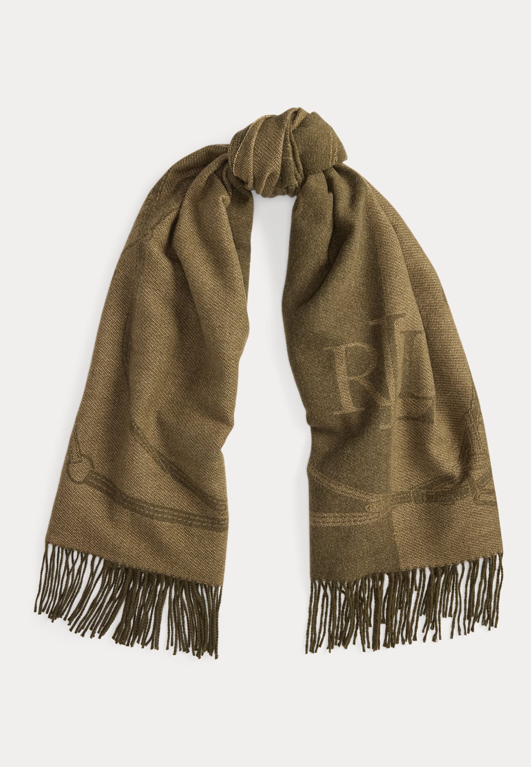 BELTING-MOTIF & LOGO JACQUARD WRAP SCARF – Scarf – dark olive/camel