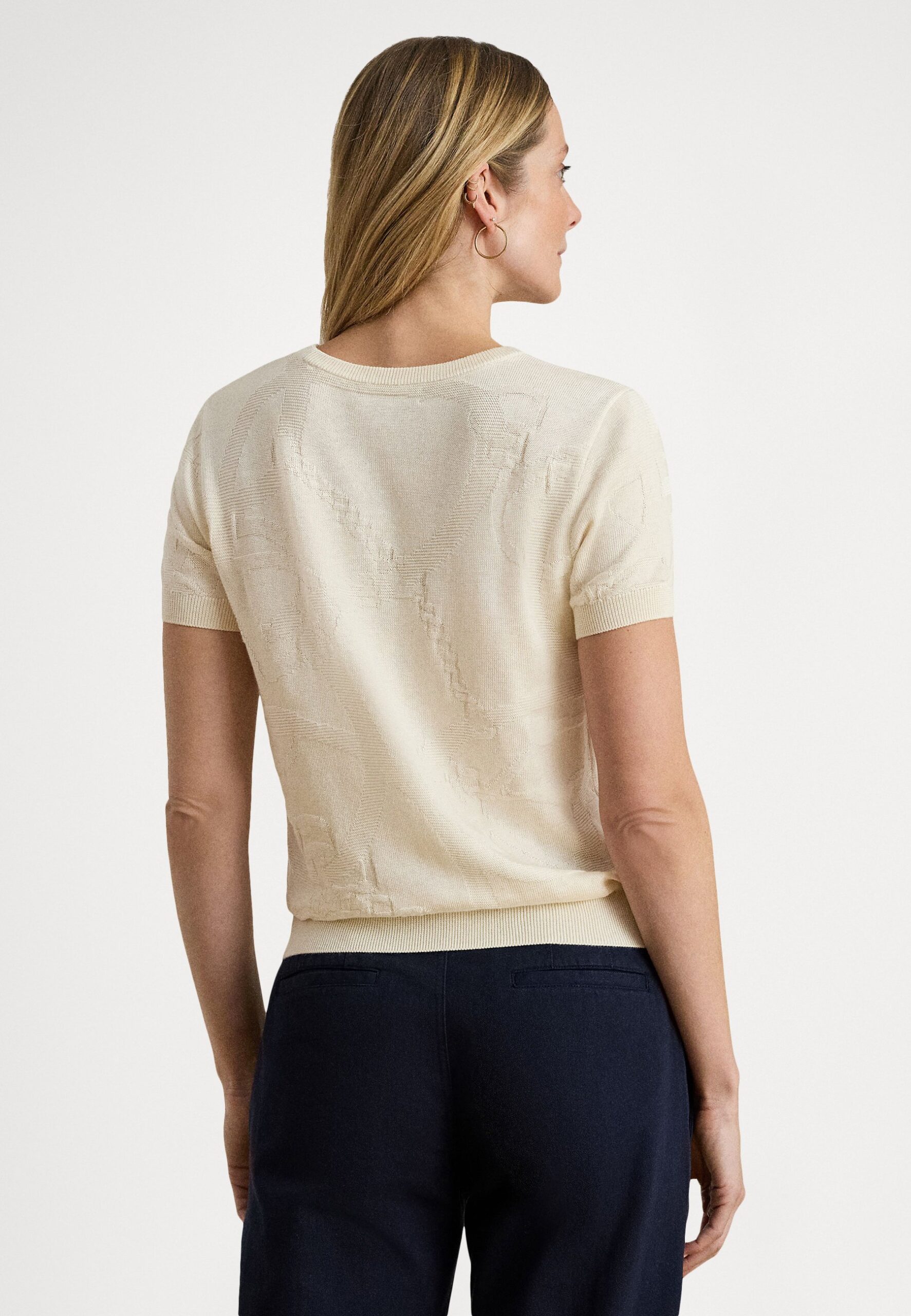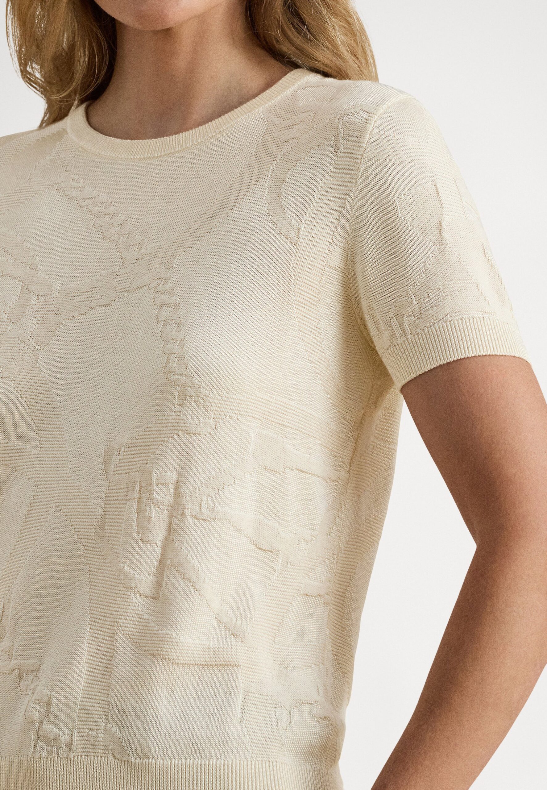 BELTING-MOTIF SHORT-SLEEVE SWEATER – Basic T-shirt – mascarpone cream