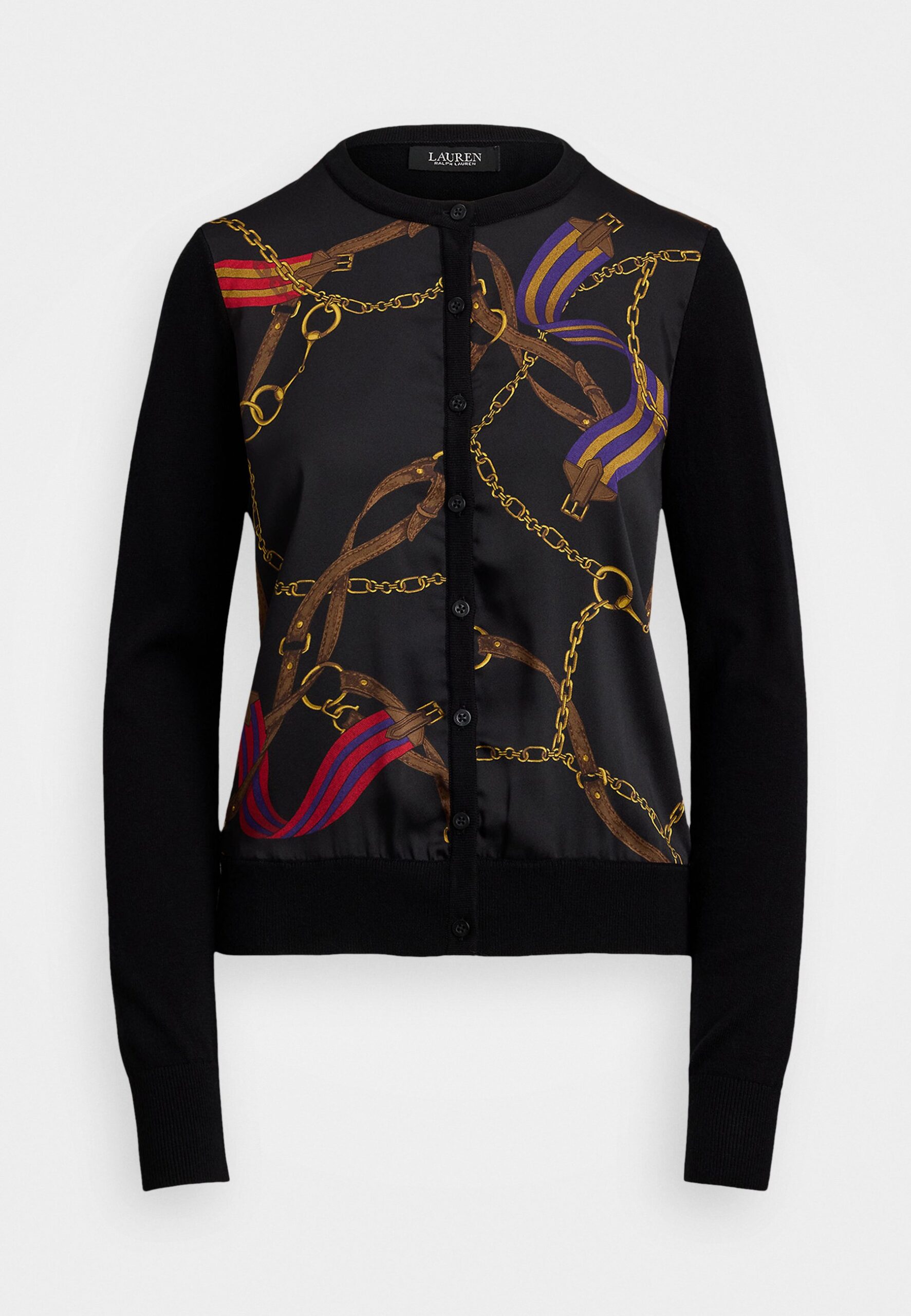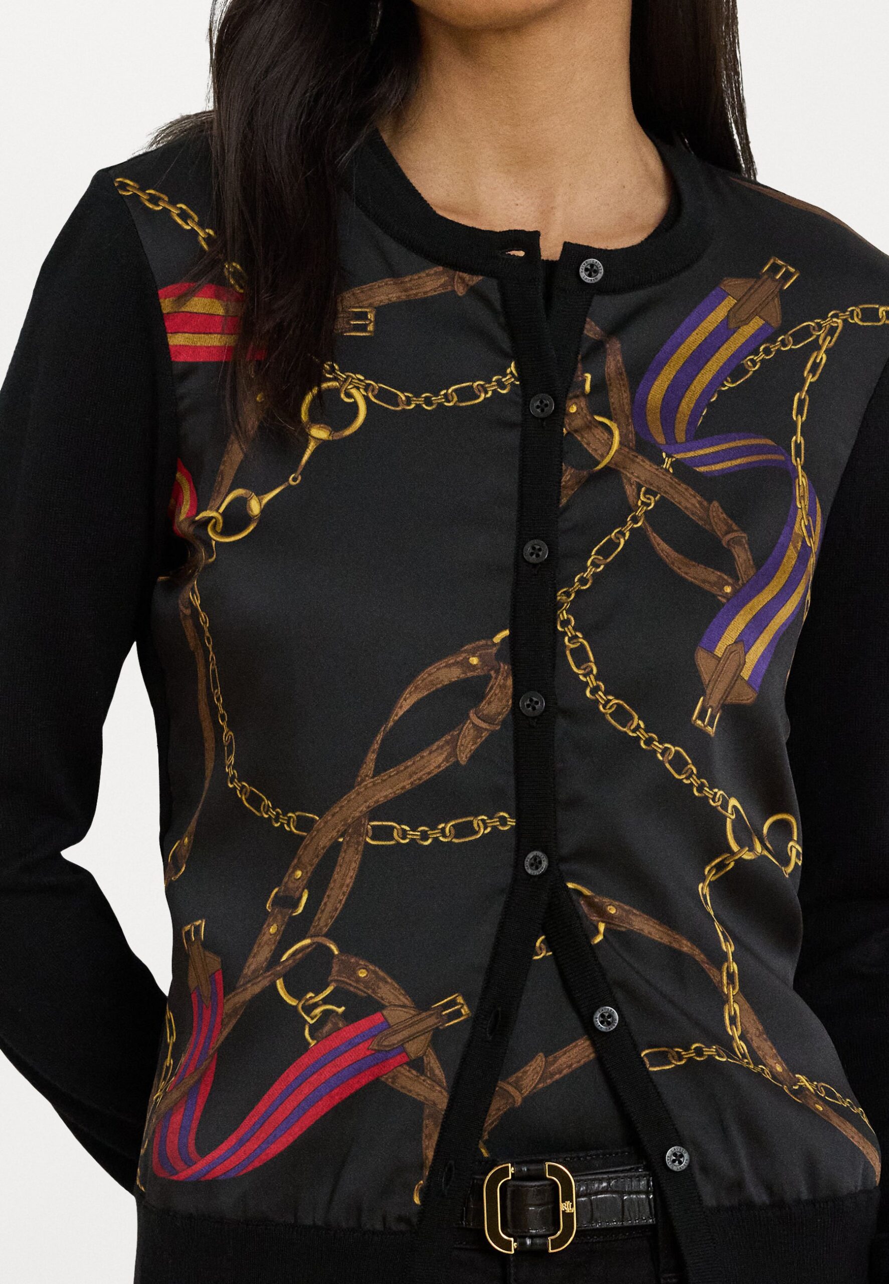BELTING PRINT COTTON BLEND CARDIGAN – Cardigan – black