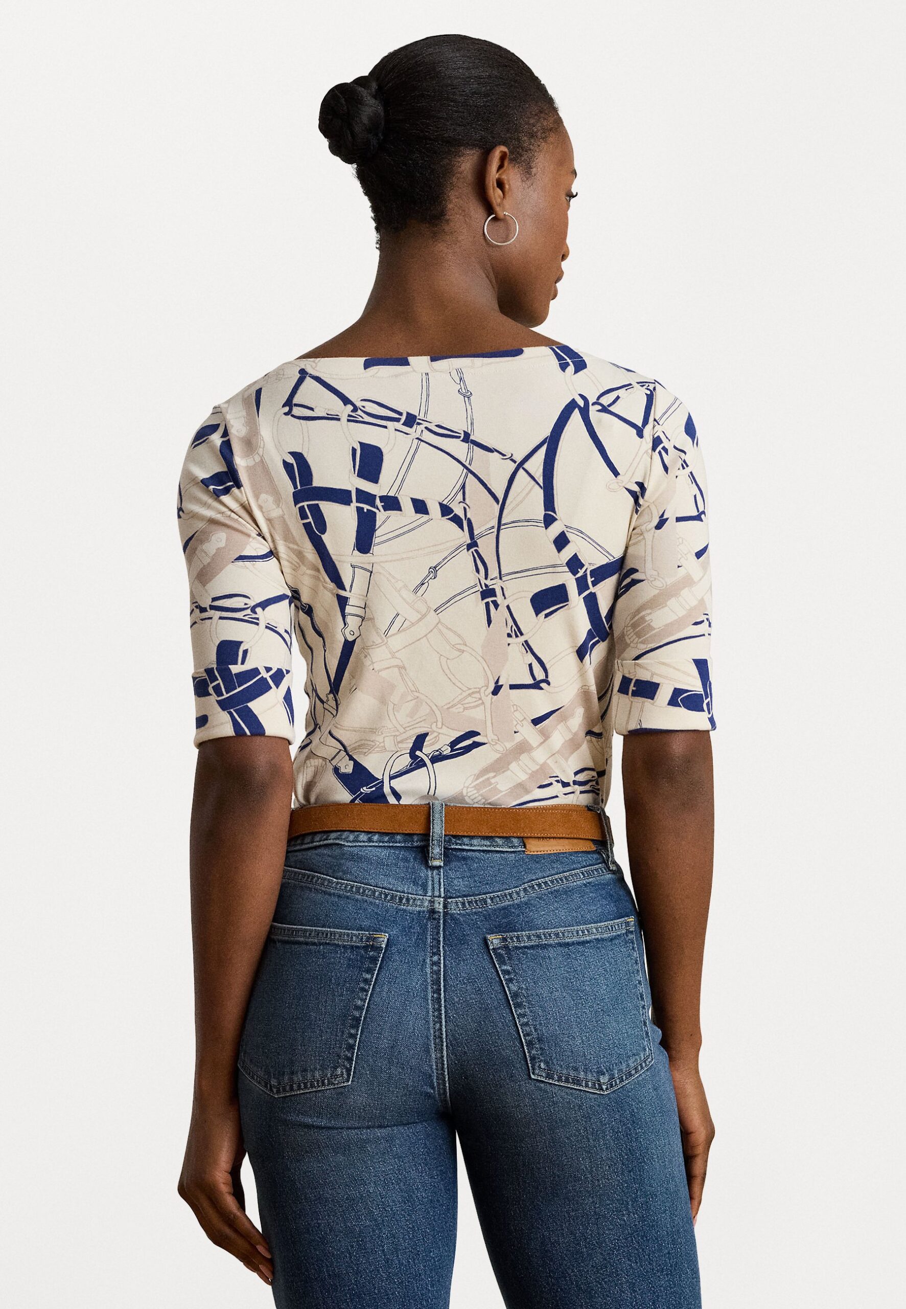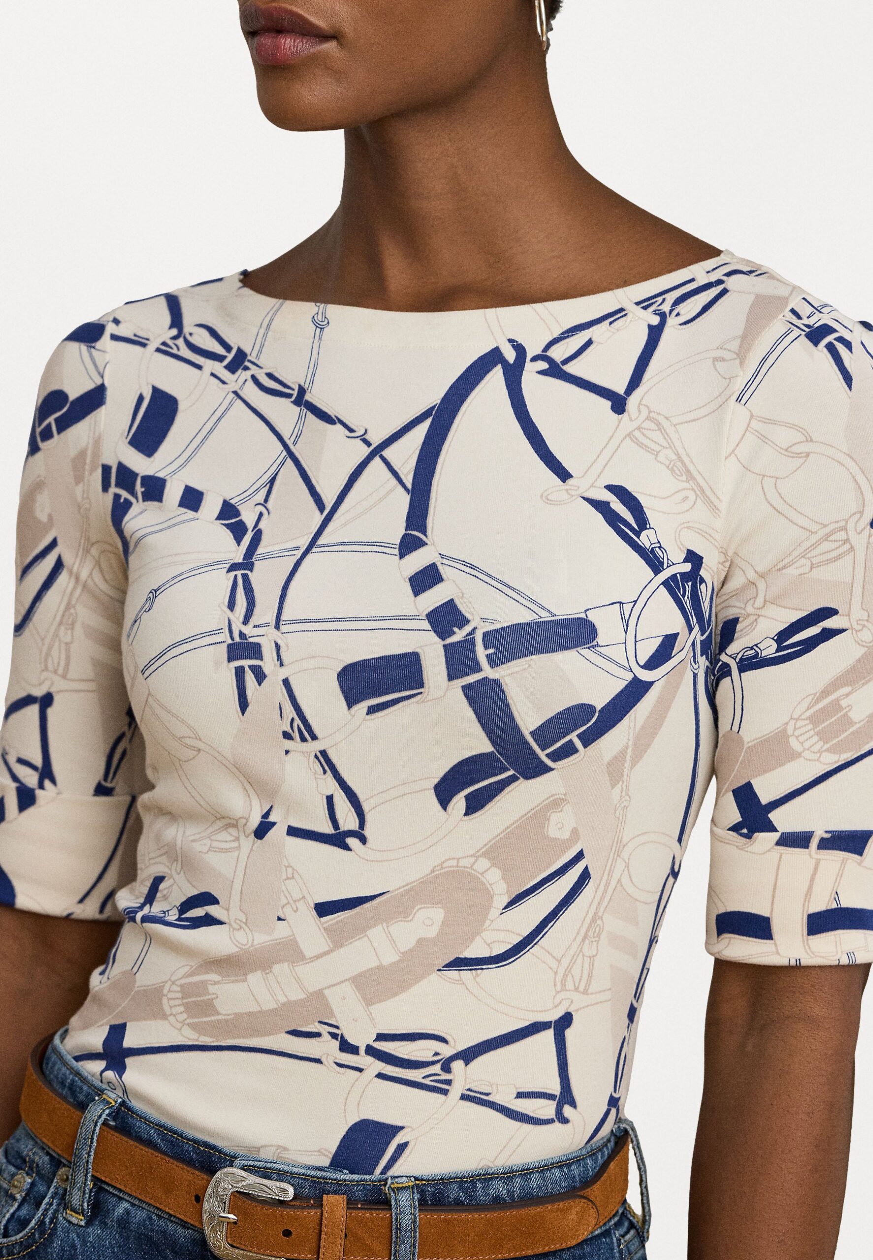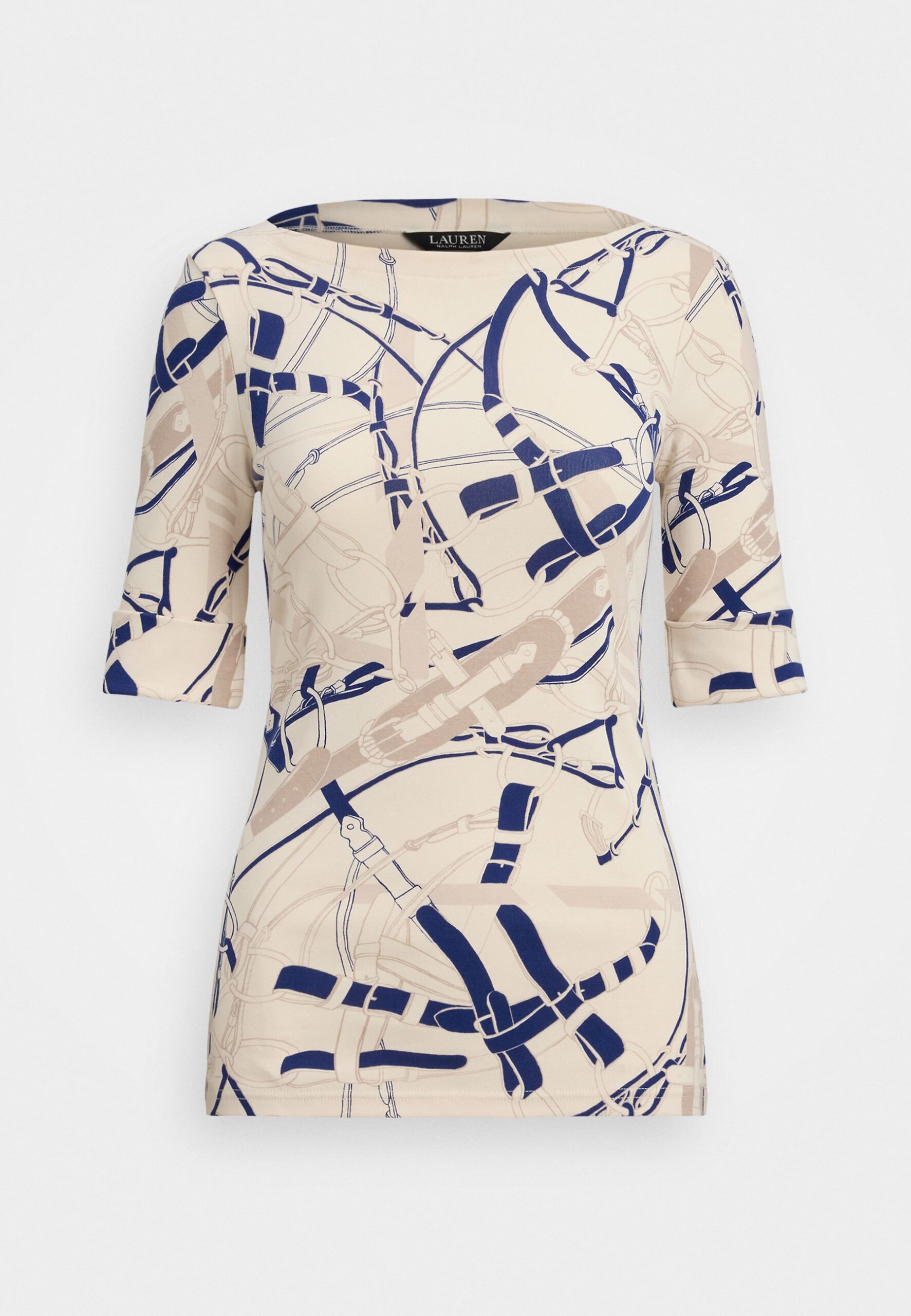 BELTING PRINT COTTON BOATNECK TEE – Print T-shirt – cream/navy