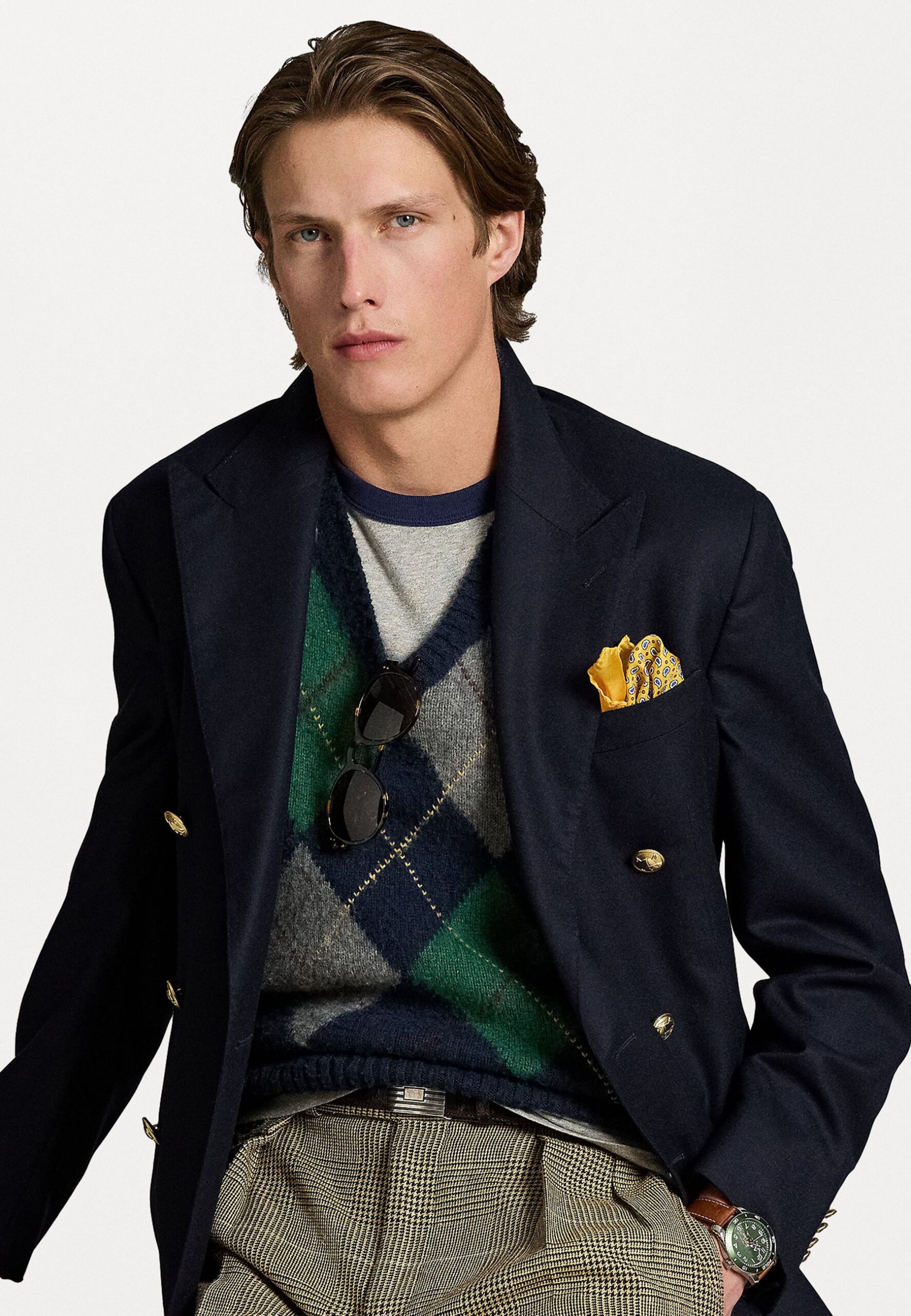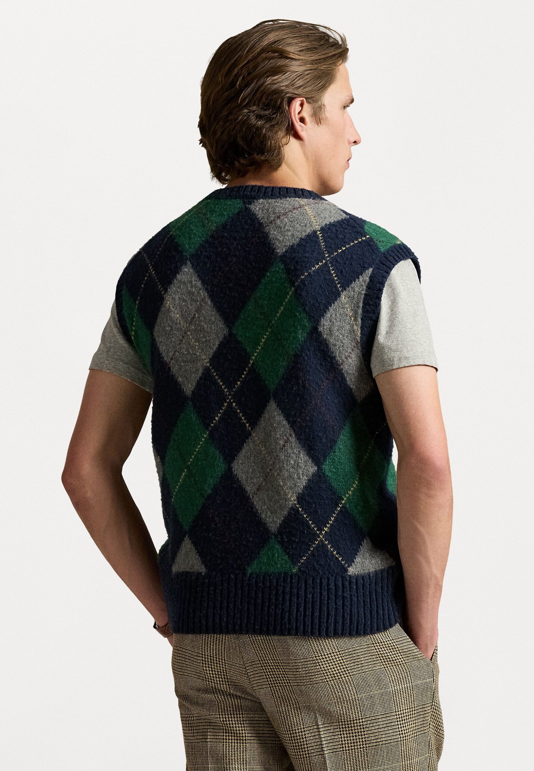 BIG FIT ARGYLE SLEEVELESS JUMPER – Jumper – navy combo