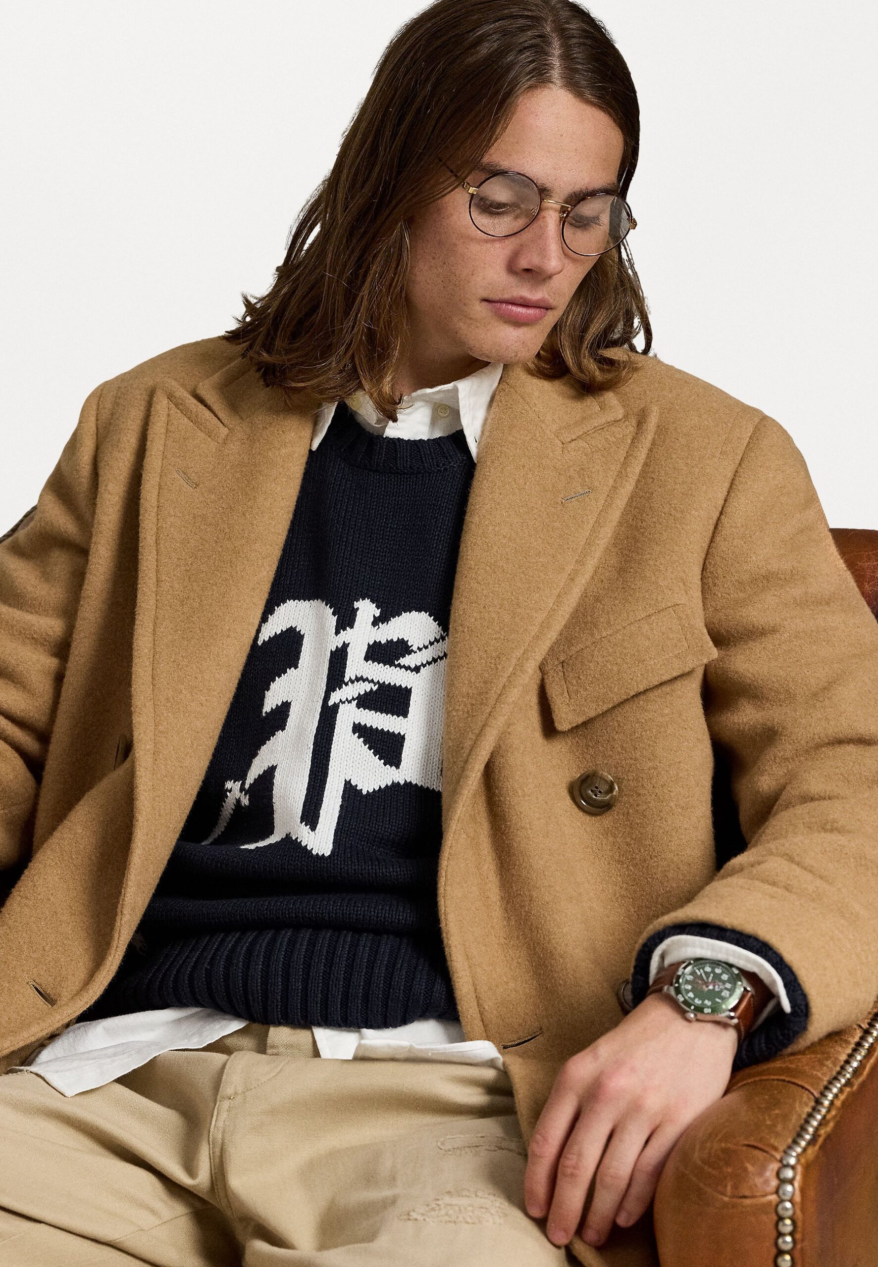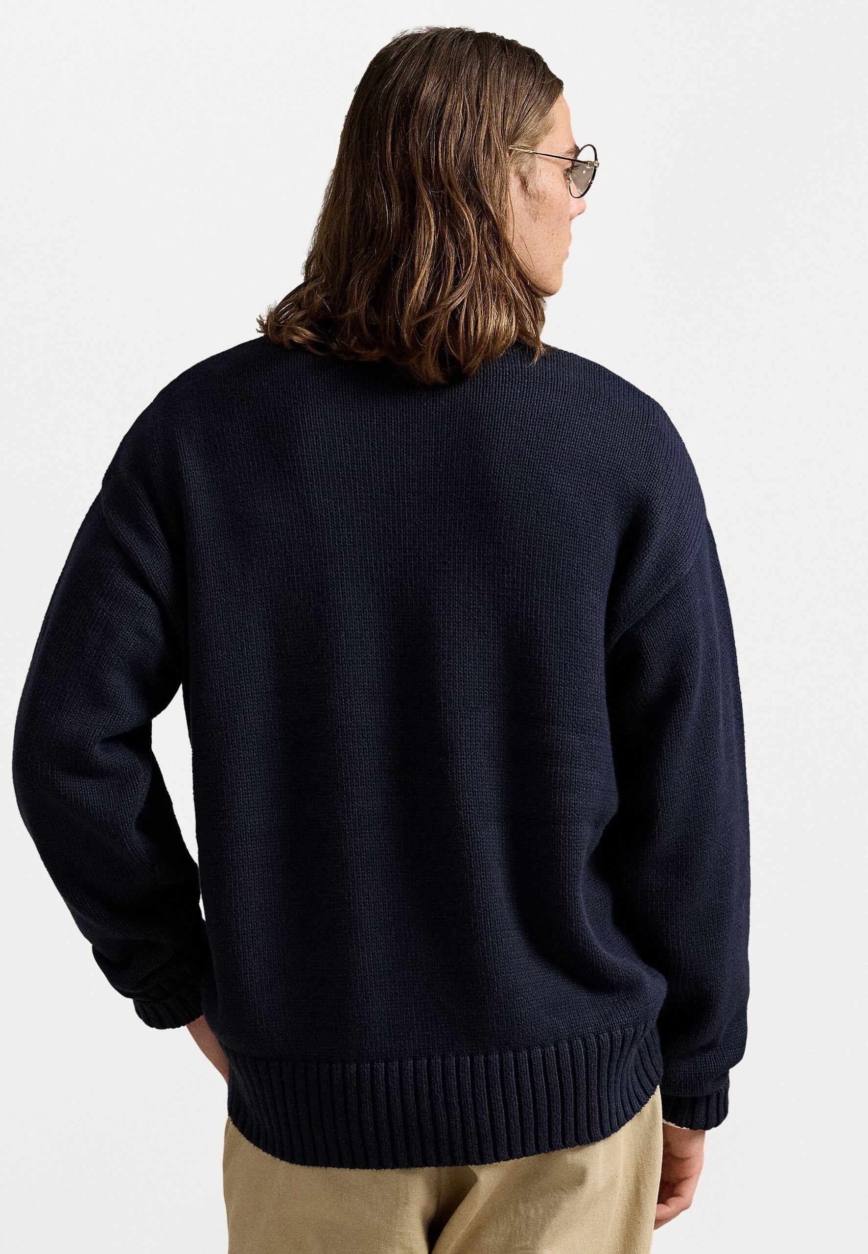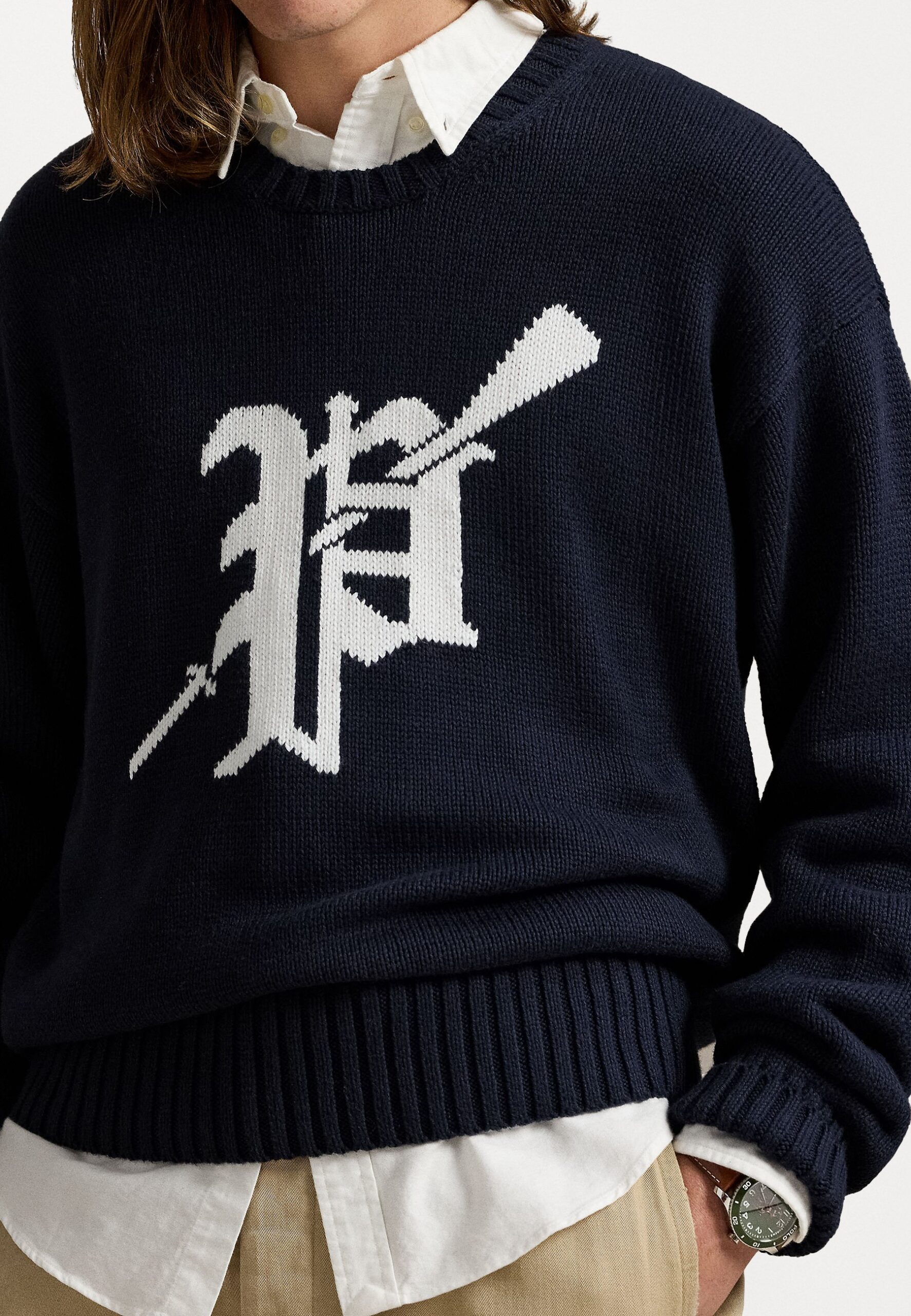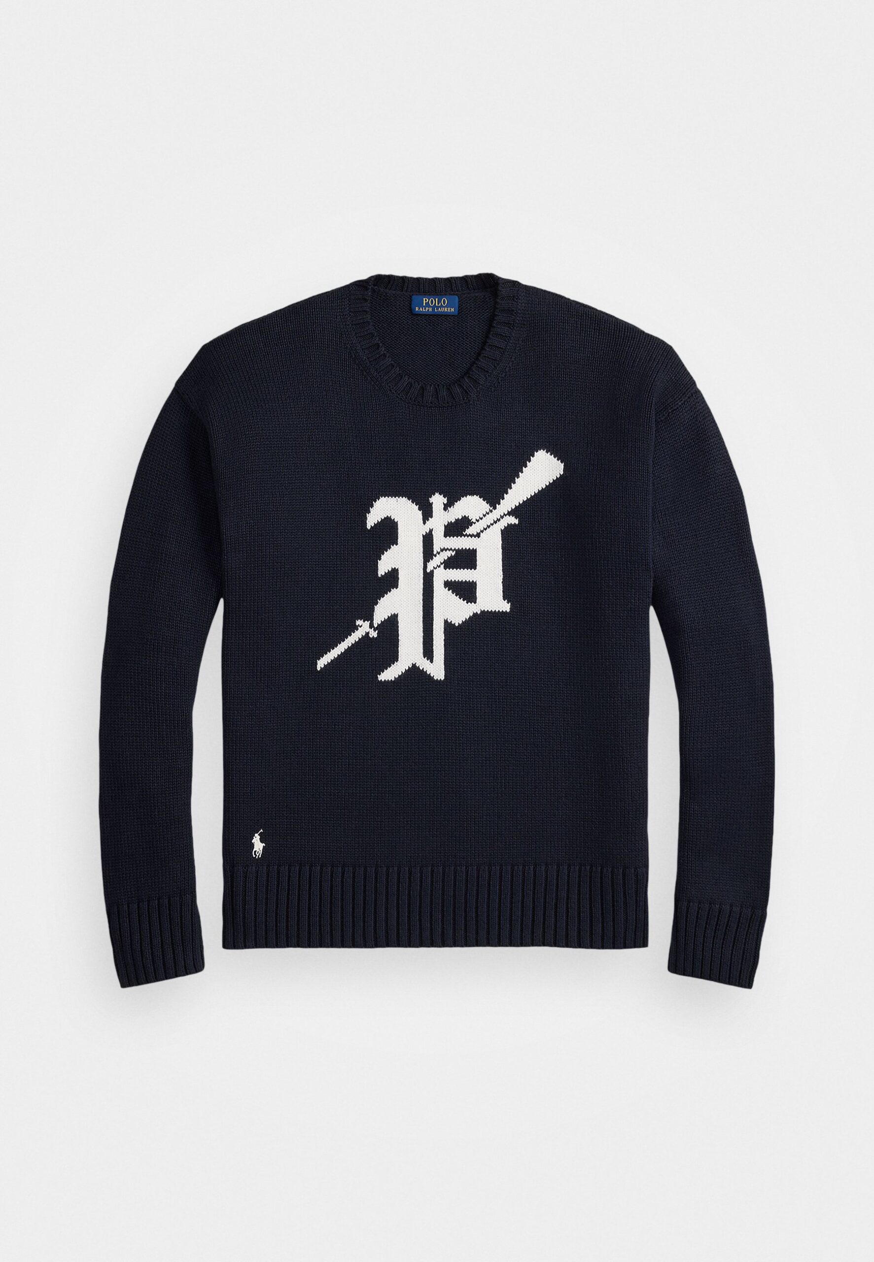 BIG FIT LOGO-INTARSIA COTTON SWEATER – Jumper – navy/white