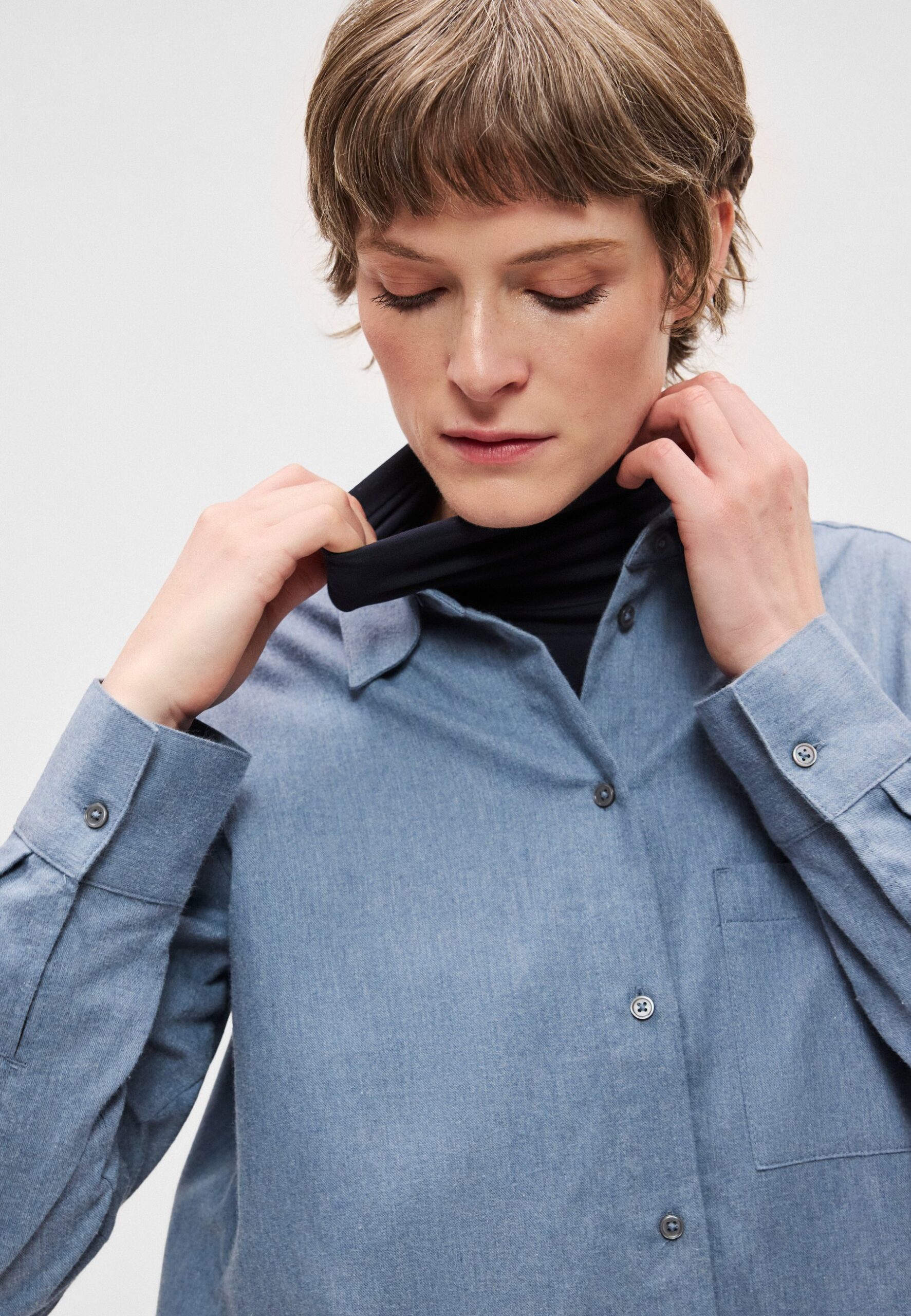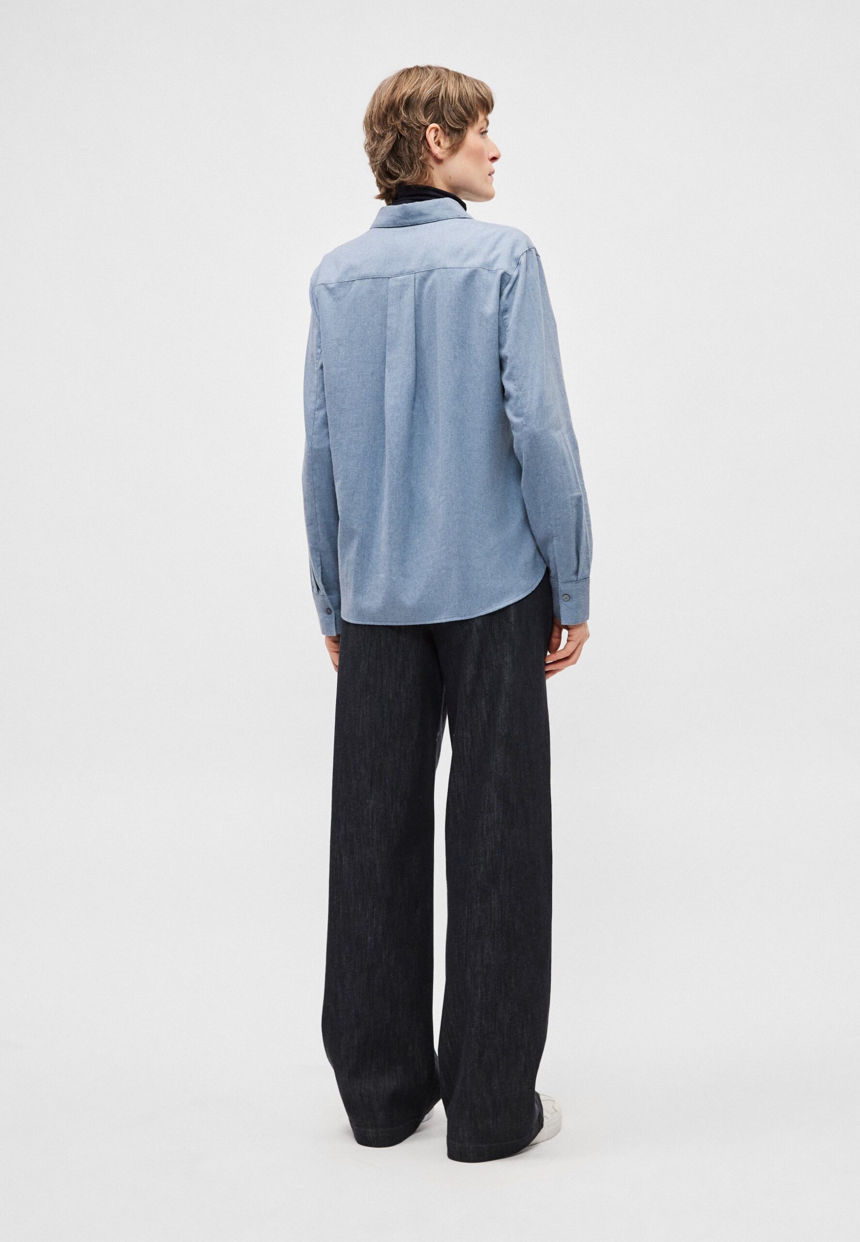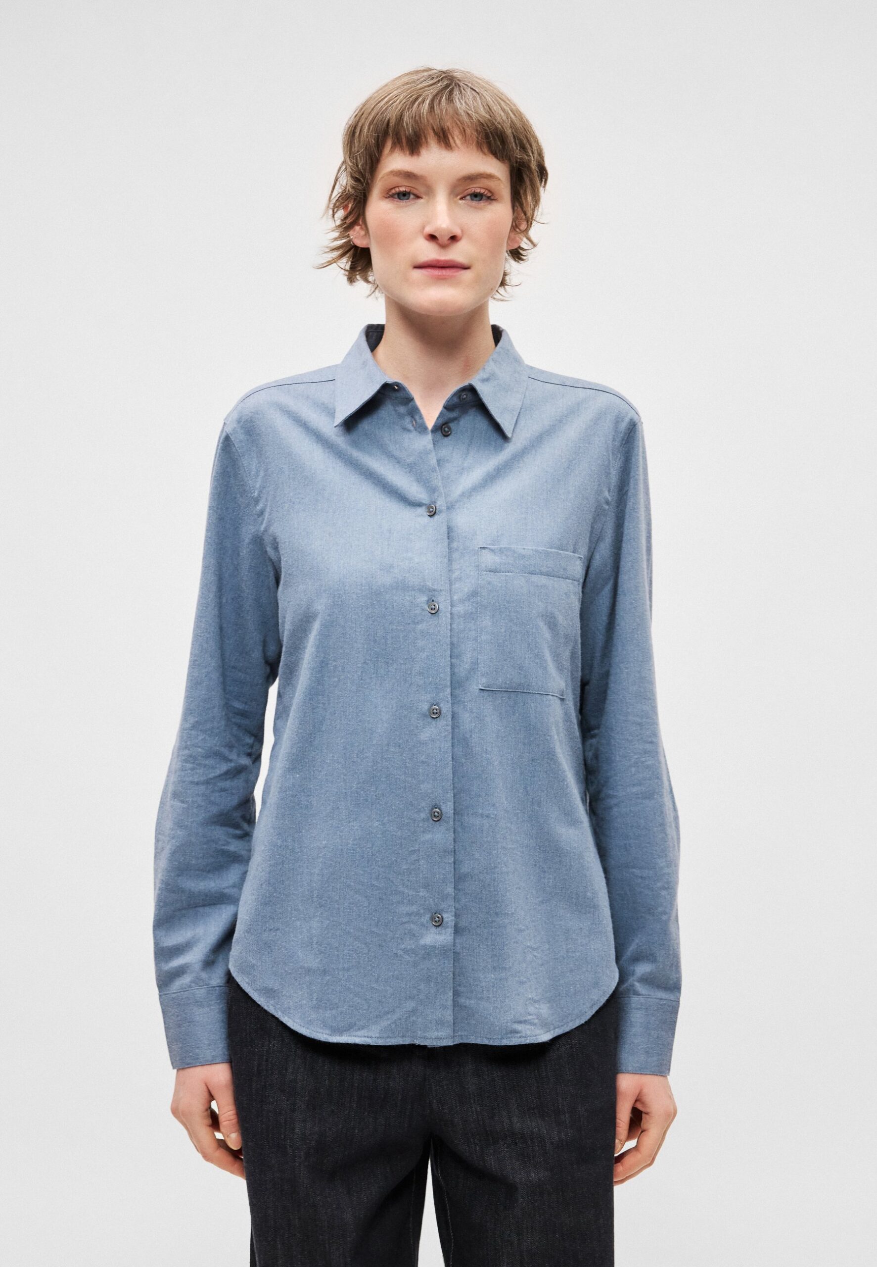 BLOUSE COLLAR LONG SLEEVES CHEST POCKET – Button-down blouse – slate blue