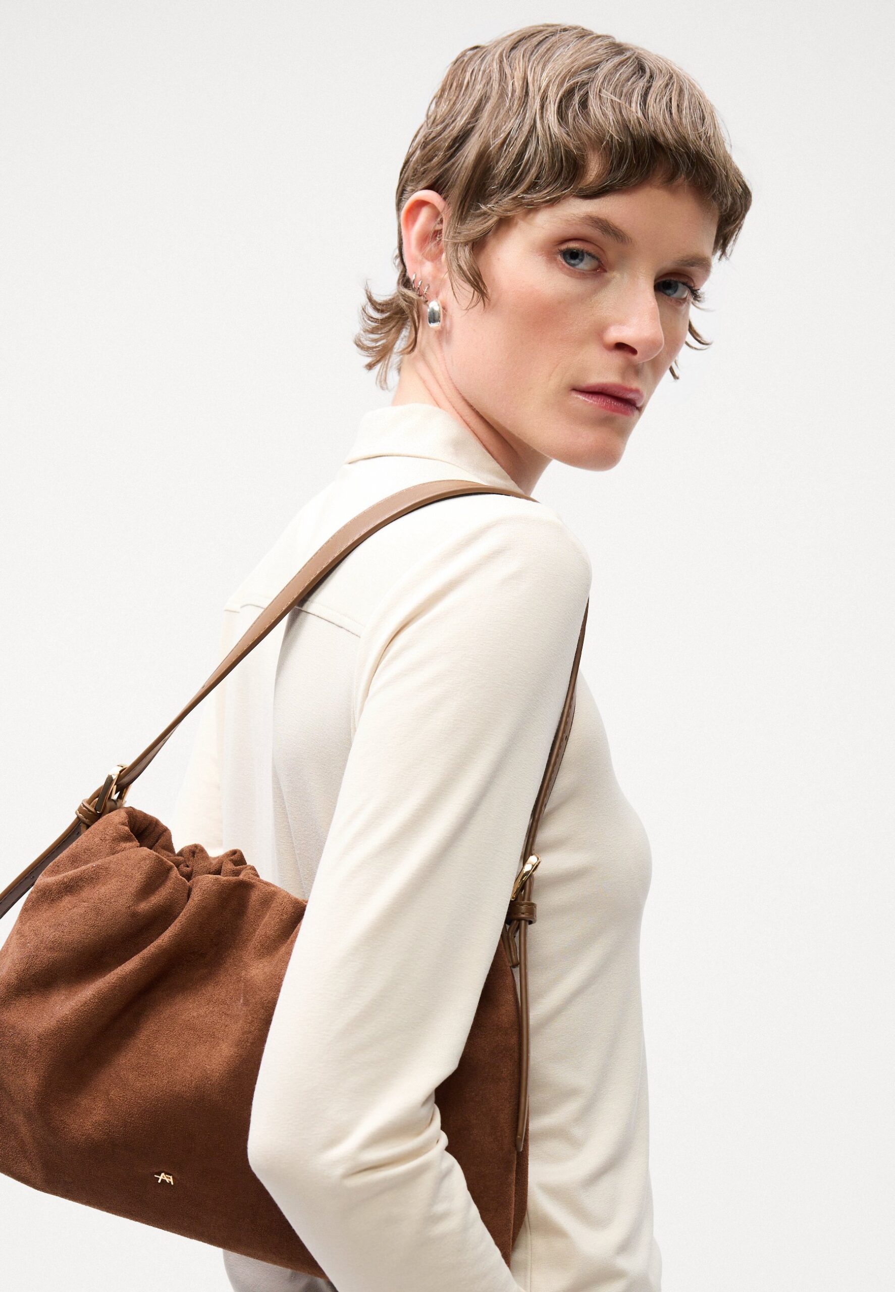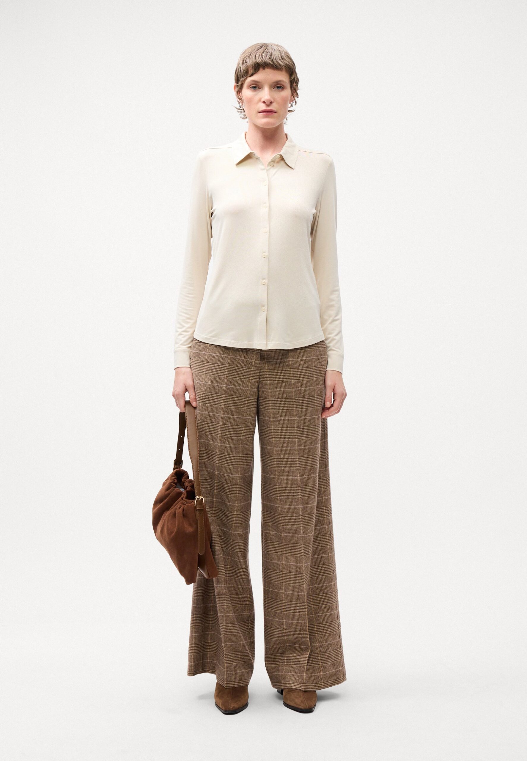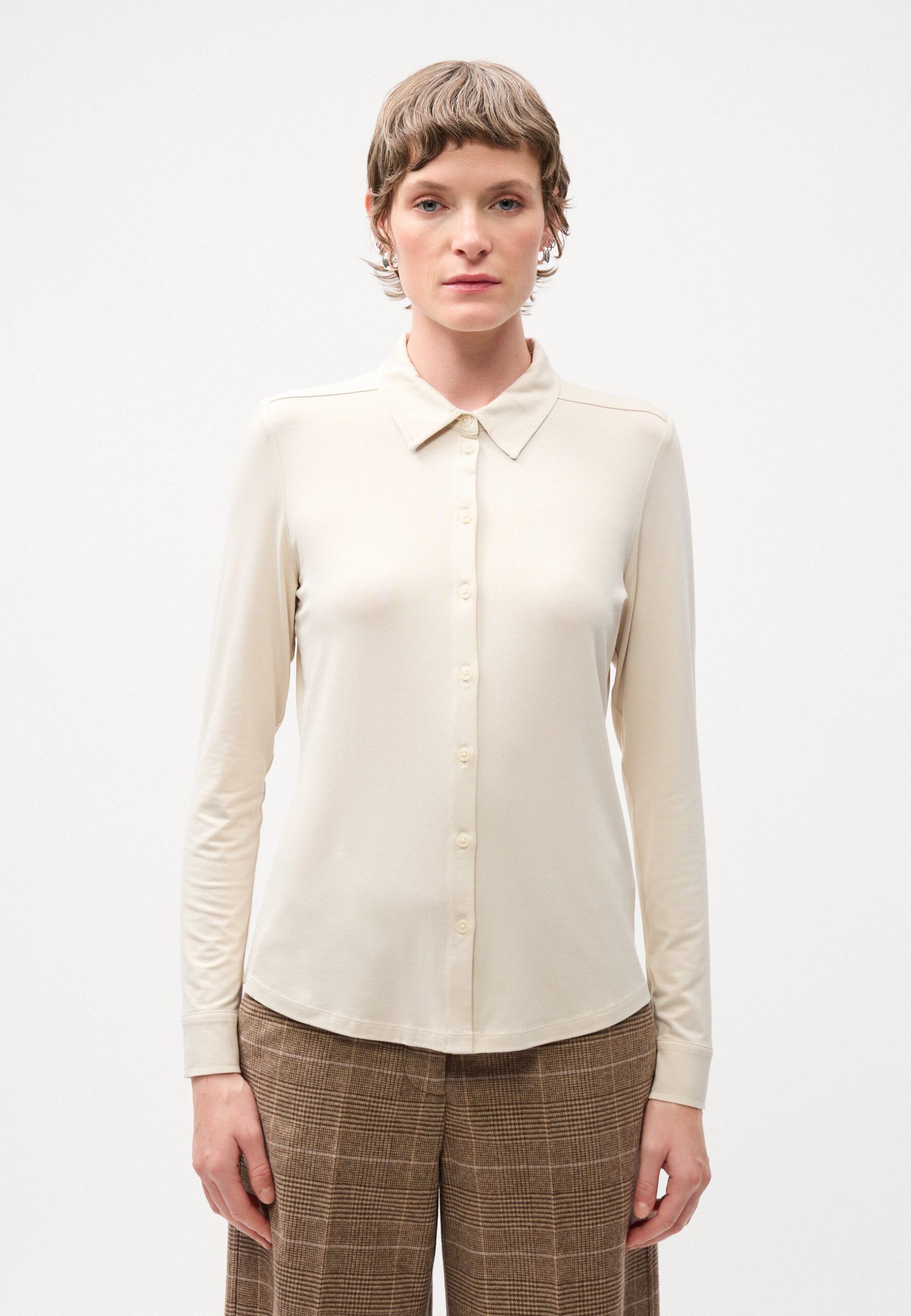 BLOUSE LONG SLEEVE COLLAR BUTTON PLACKET – Button-down blouse – natural stone