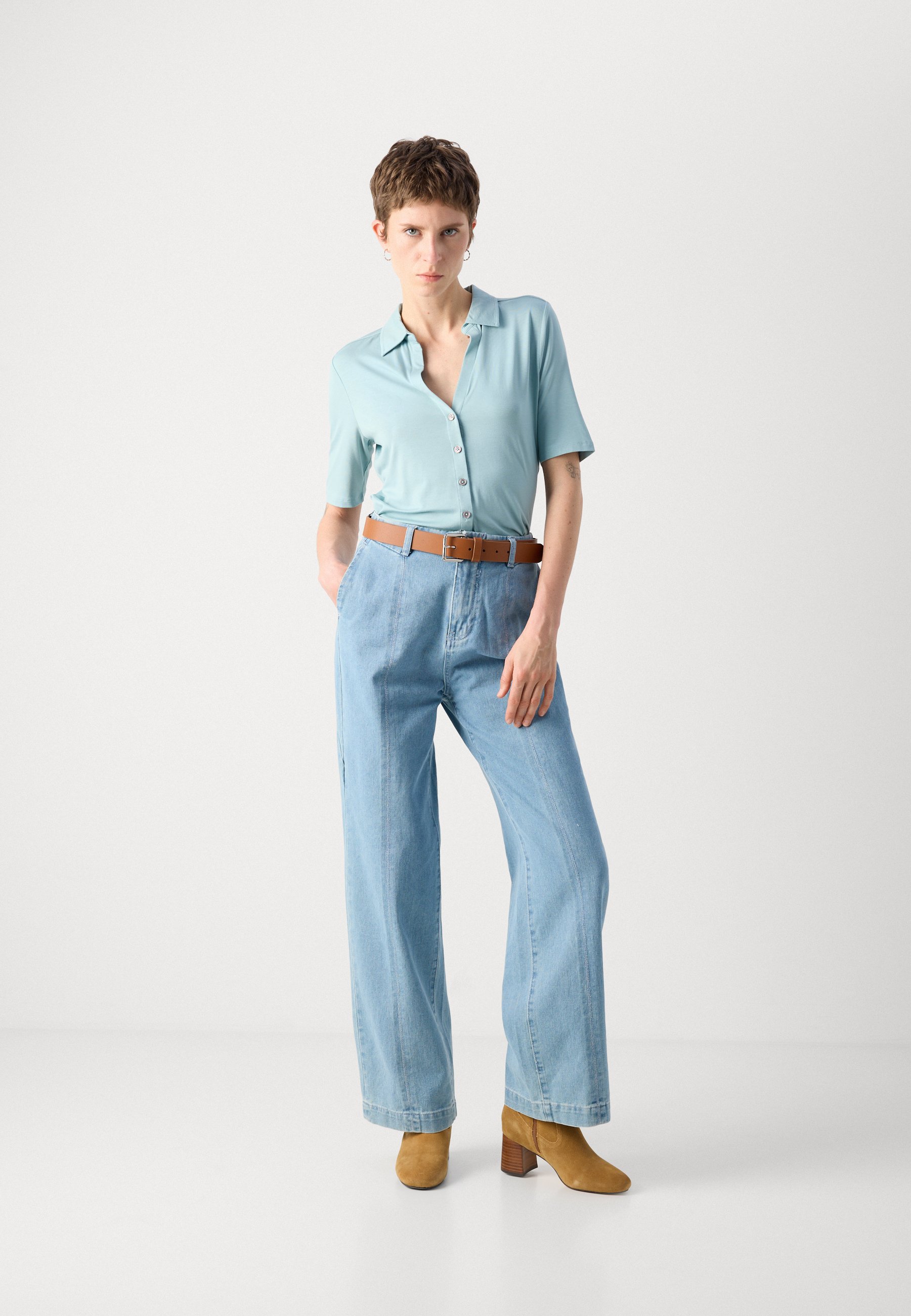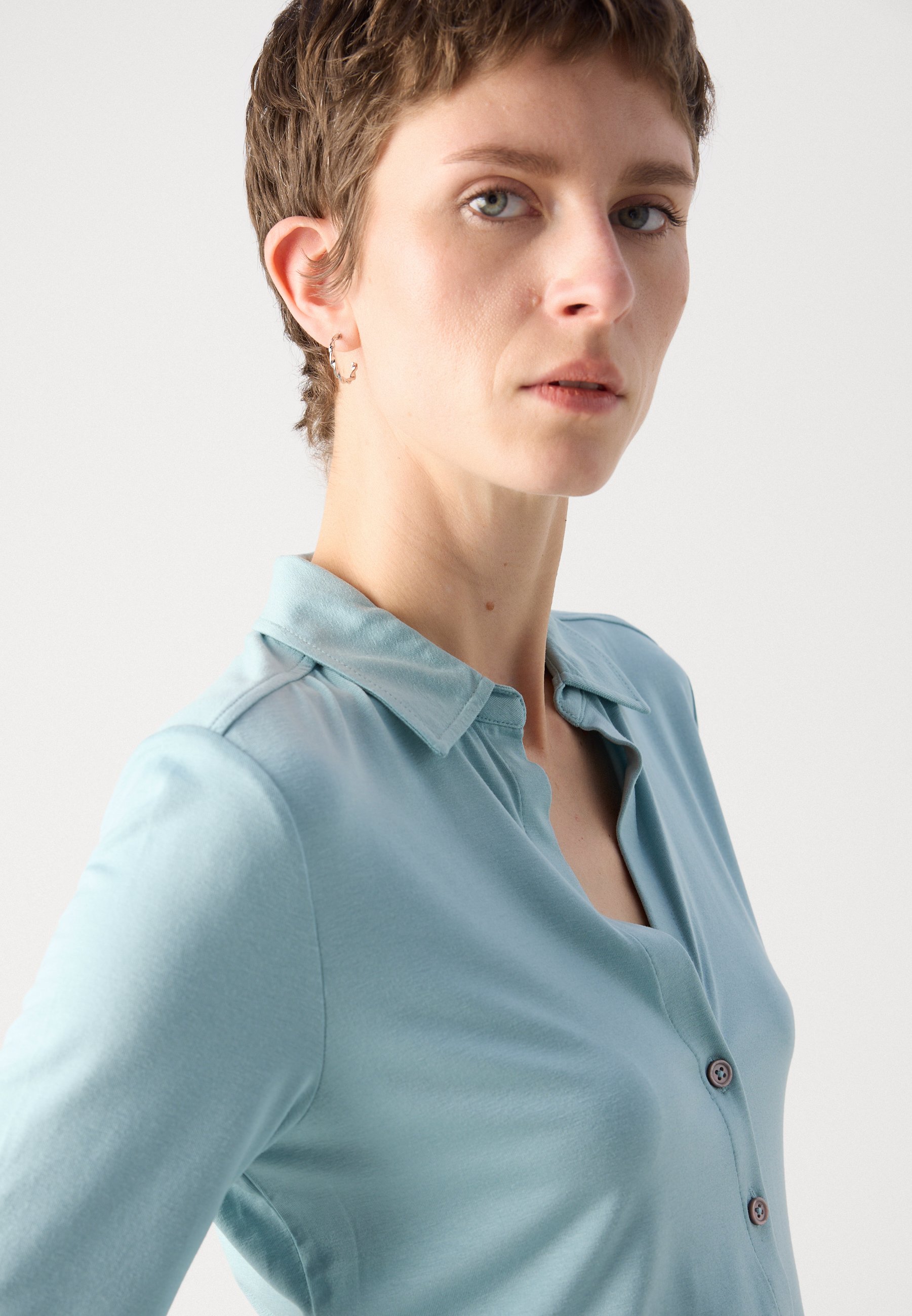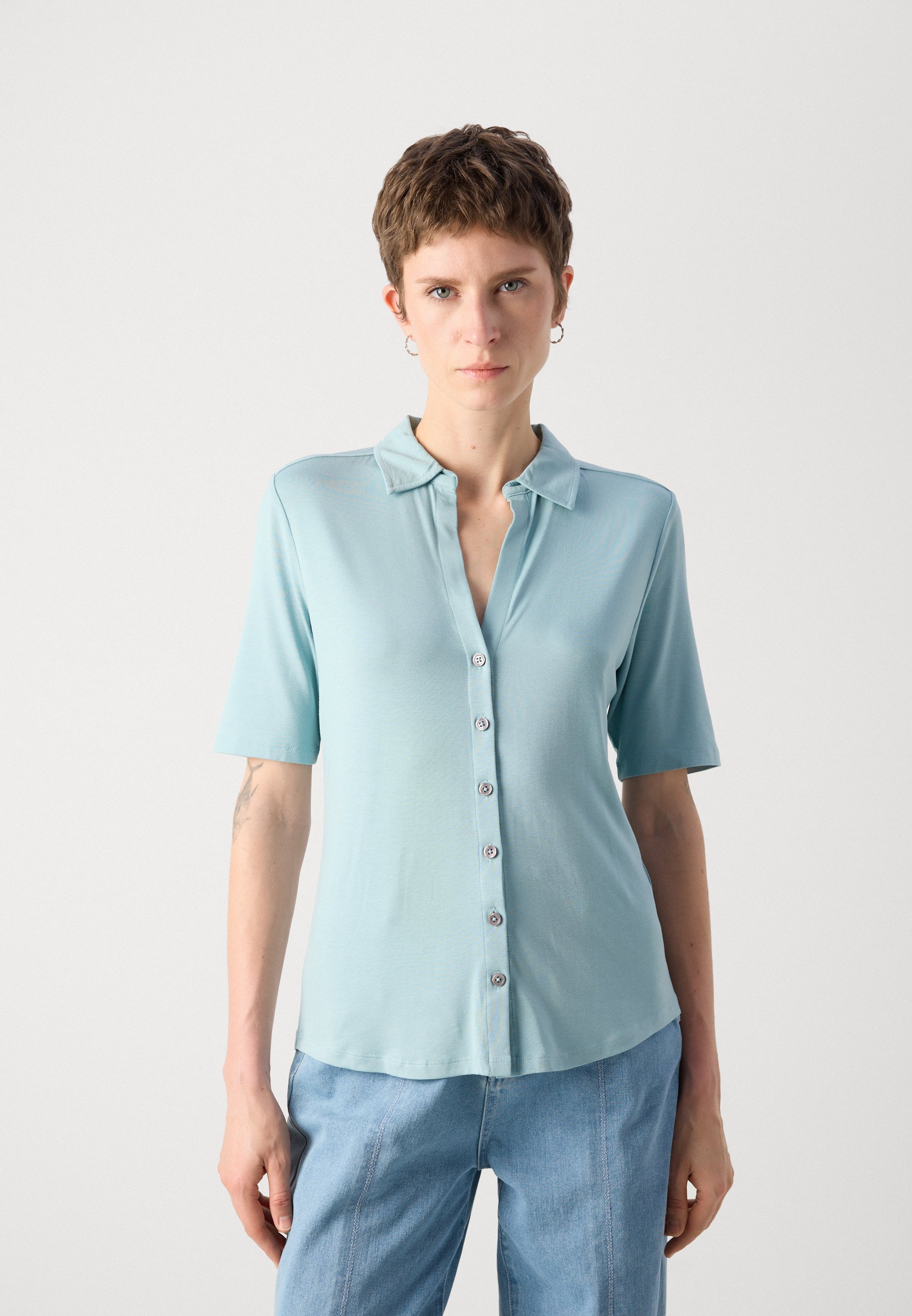 BLOUSE SHORT SLEEVE CLASSIC FIT – Button-down blouse – pure teal