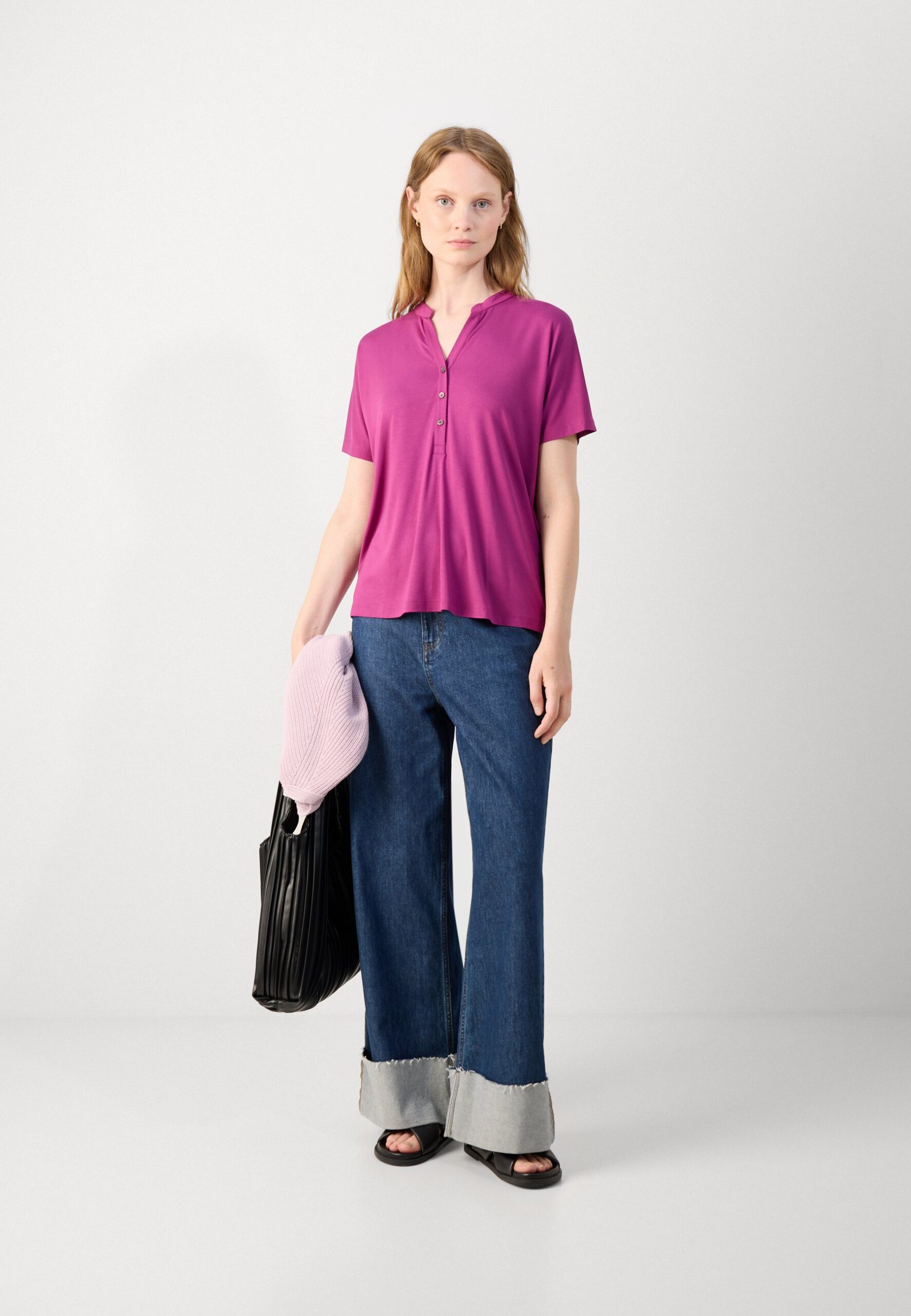 BLOUSE SHORT SLEEVE PLACKET AT FRONT – Blouse – fresh berry