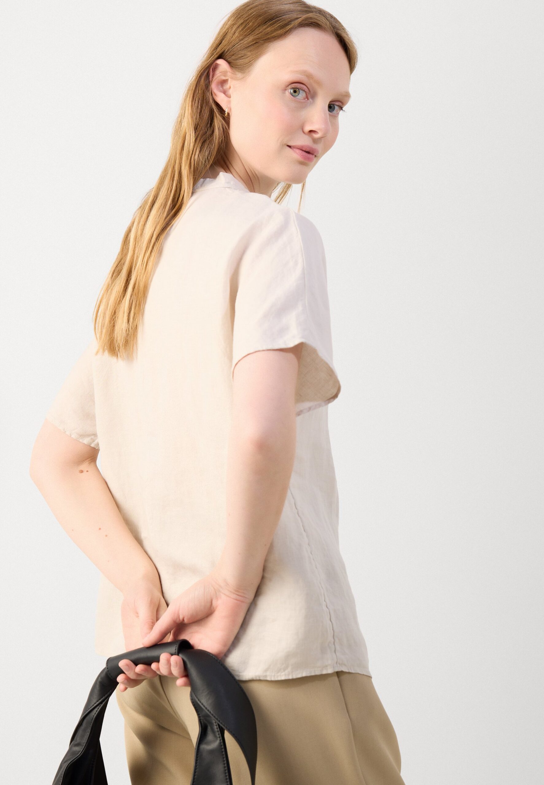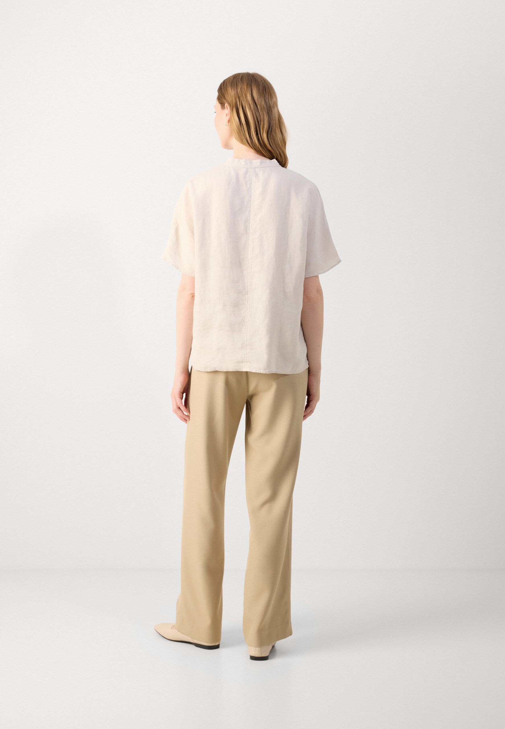 BLOUSE STAND UP COLLAR BOW DETAIL SHORT SLEEVE SOLID – Blouse – silky stone