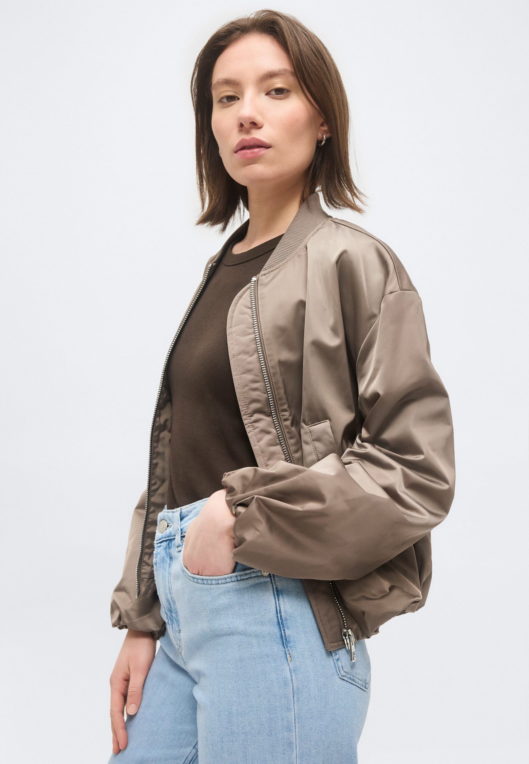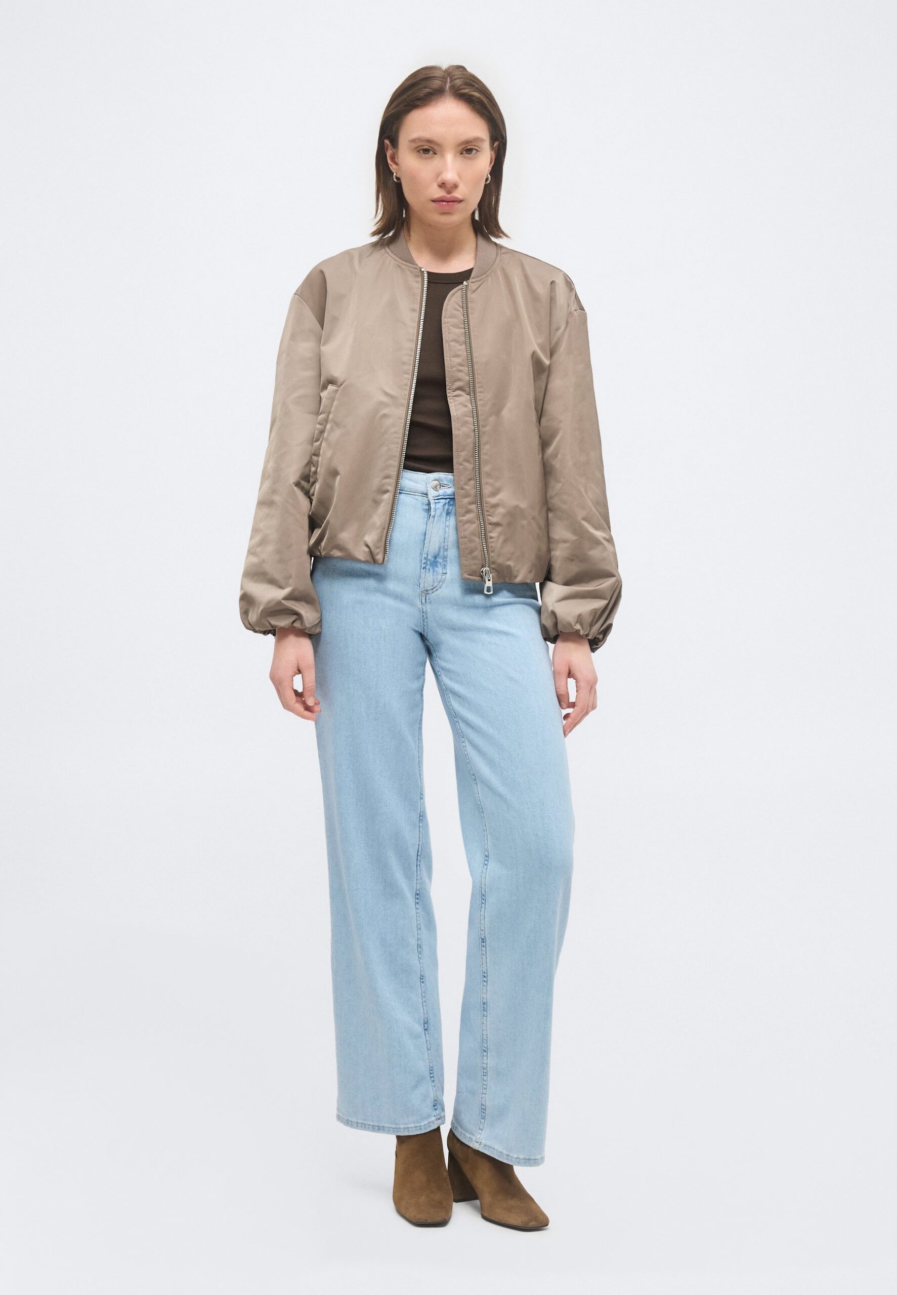 BLOUSON COLLAR WELT POCKETS DRAWSTRING AT BODY AND SLEEVE HEM – Bomber Jacket – chalky brown