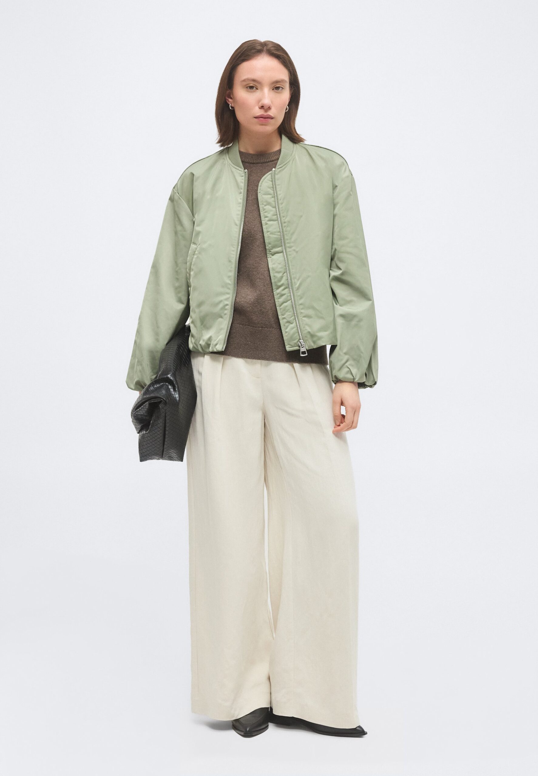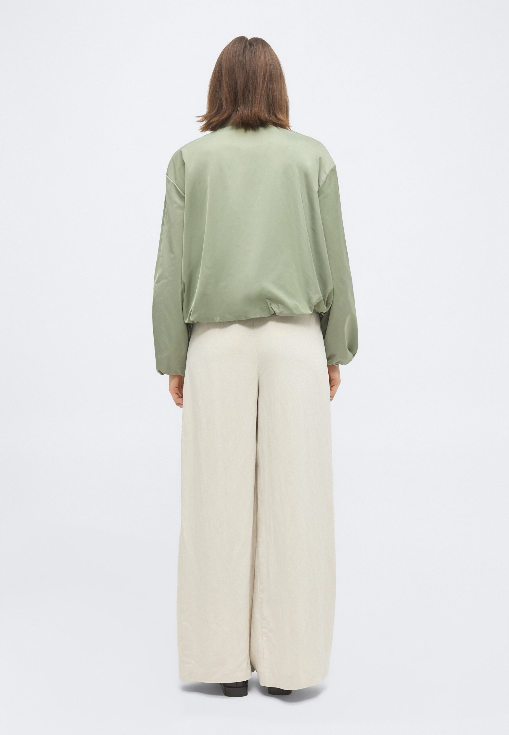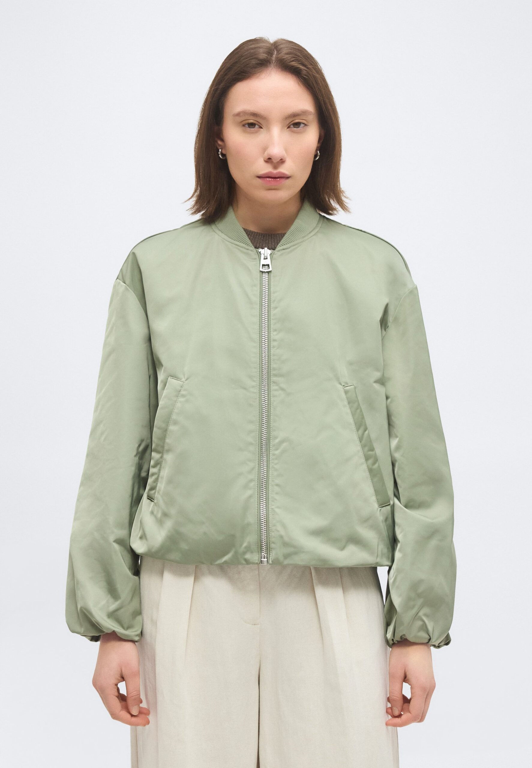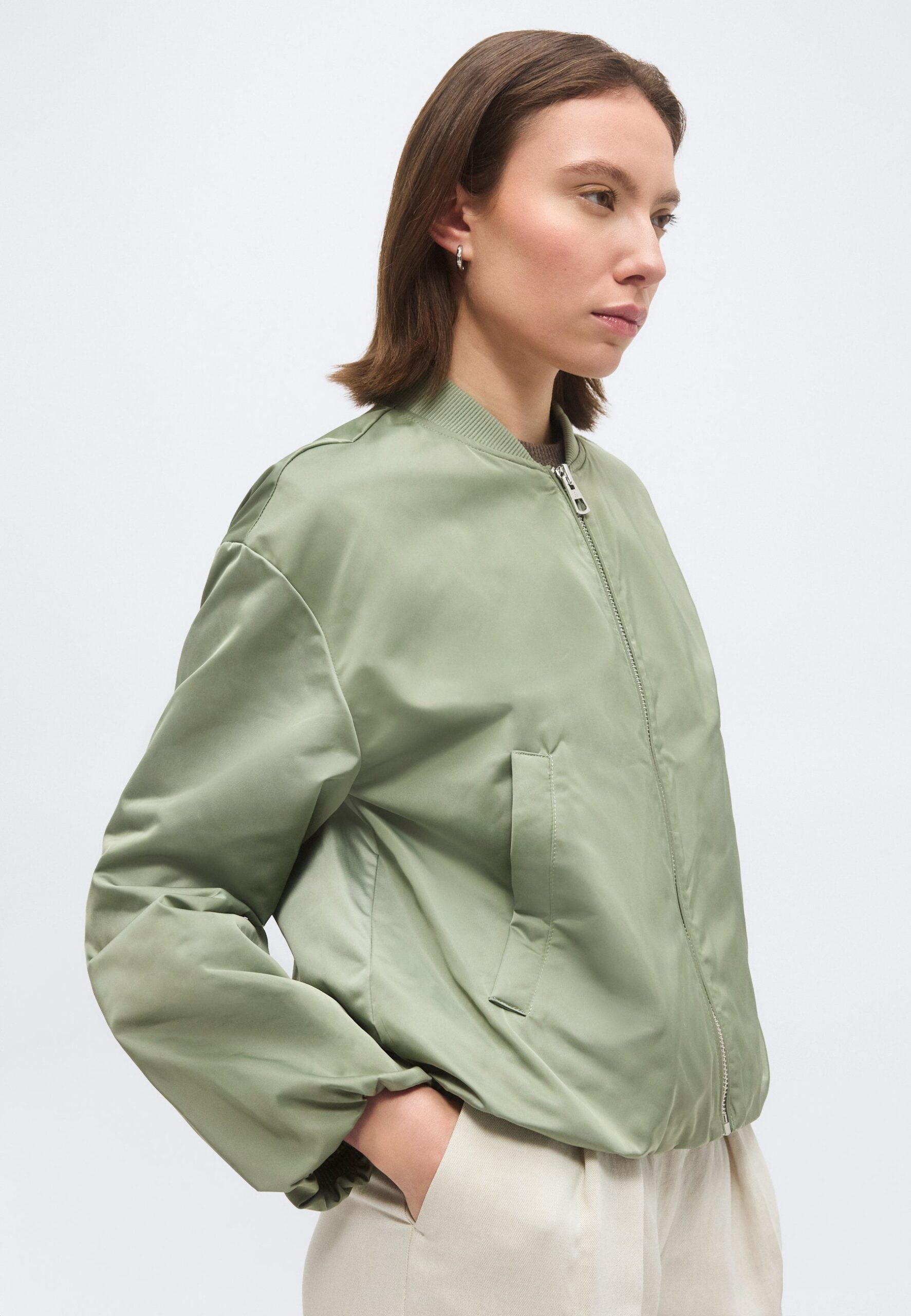 BLOUSON COLLAR WELT POCKETS DRAWSTRING AT BODY AND SLEEVE HEM – Bomber Jacket – fresh sage