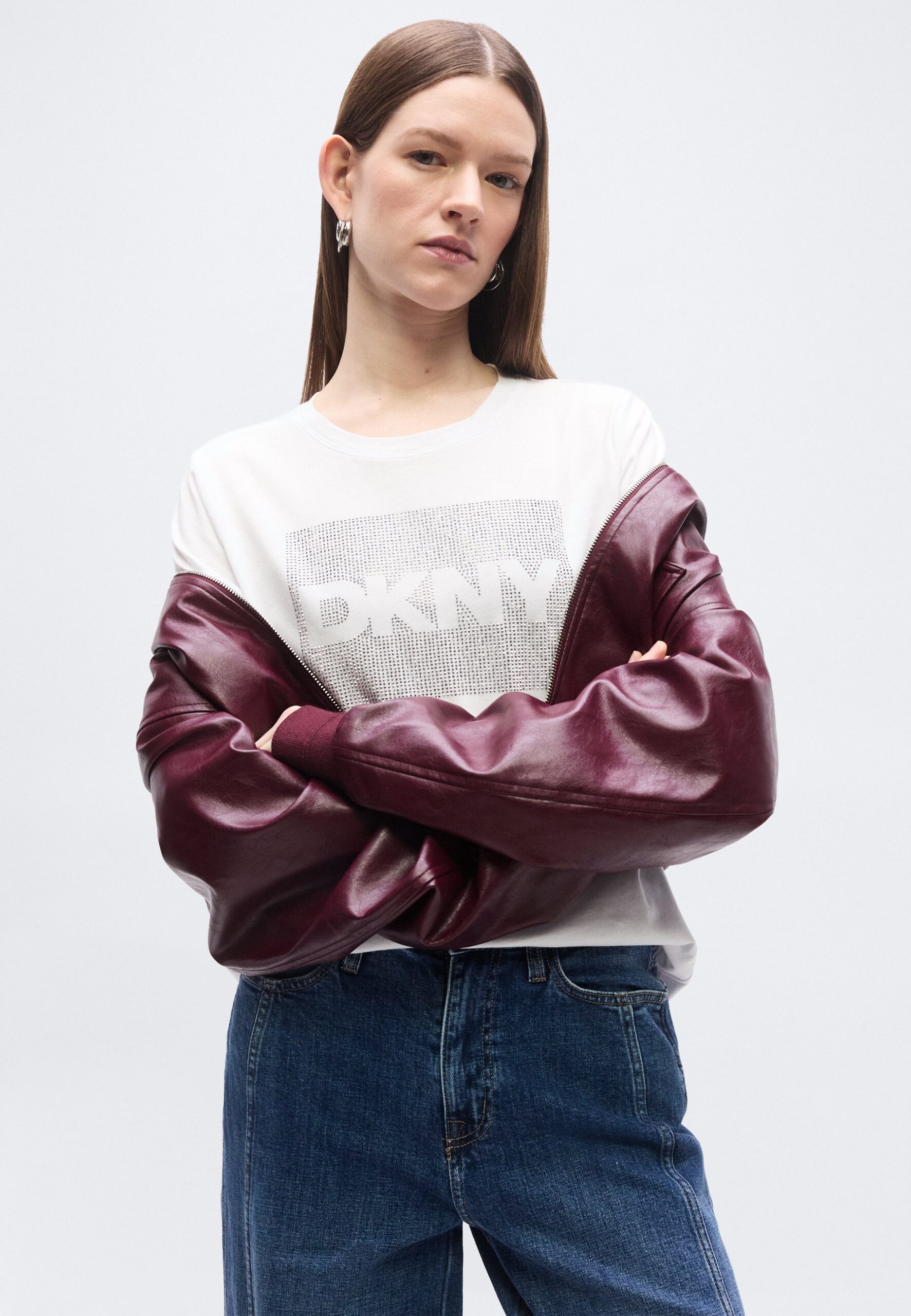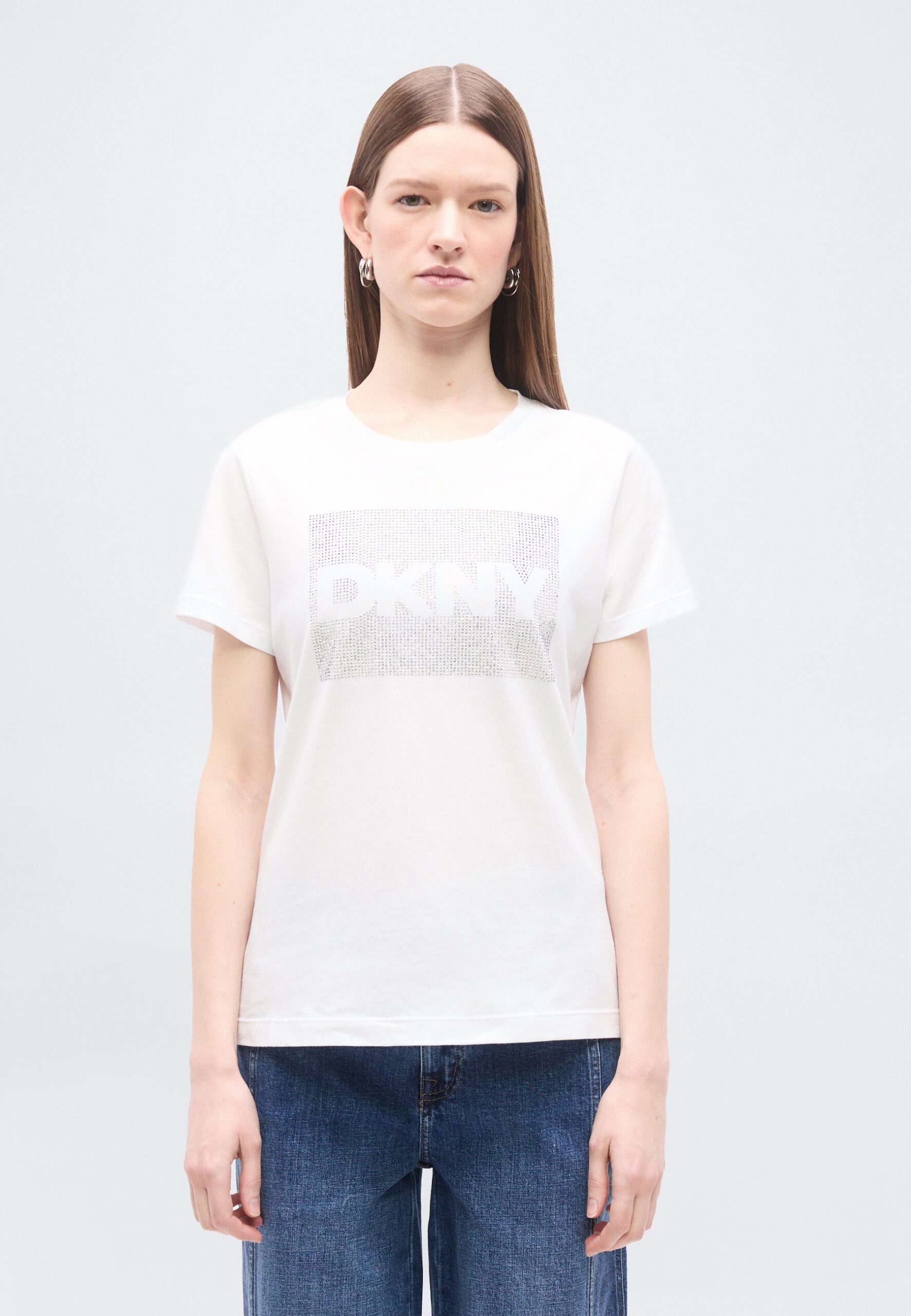 BOX RHINESTONE LOGO CREW NECK TEE – Print T-shirt – white/silver-coloured