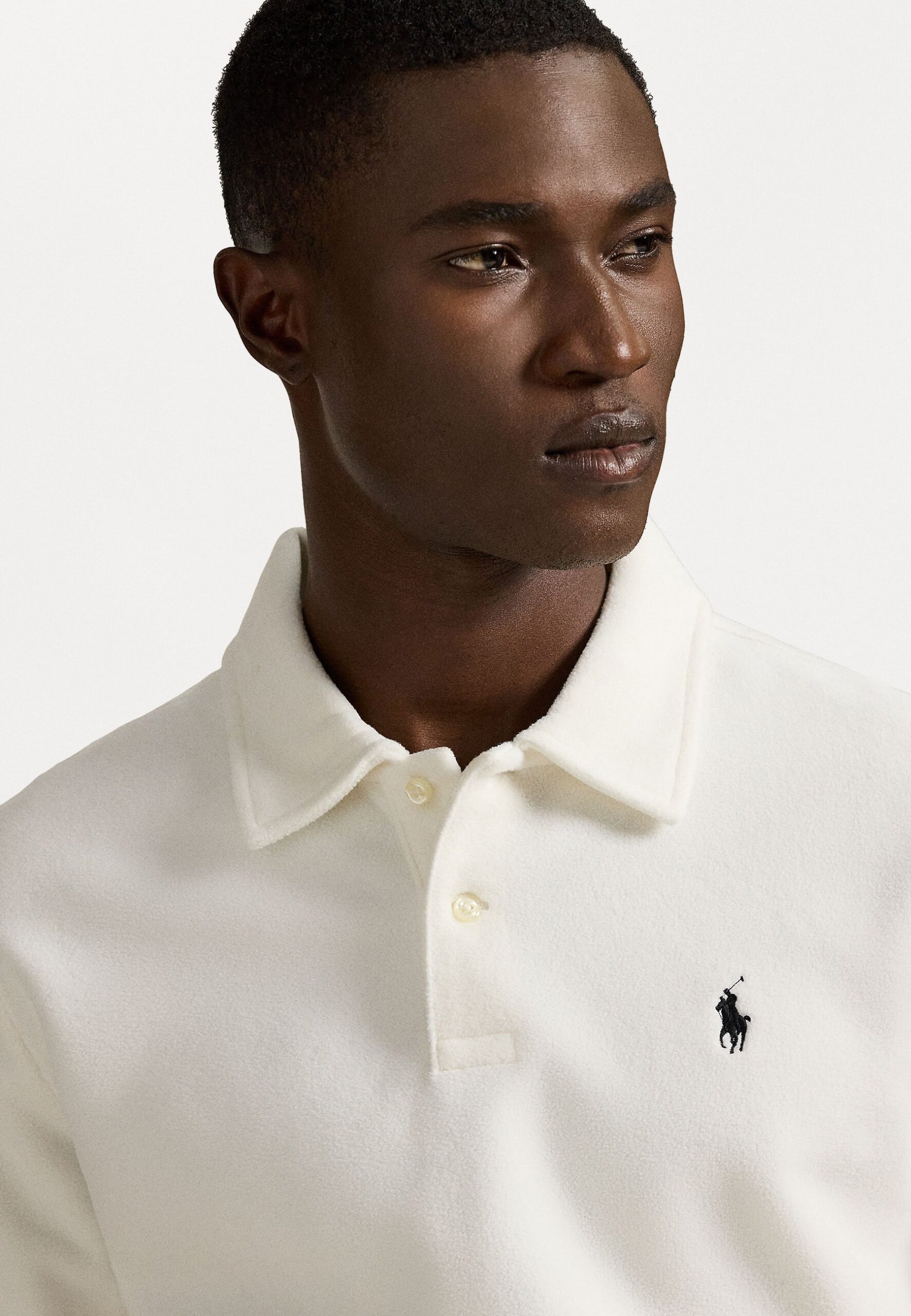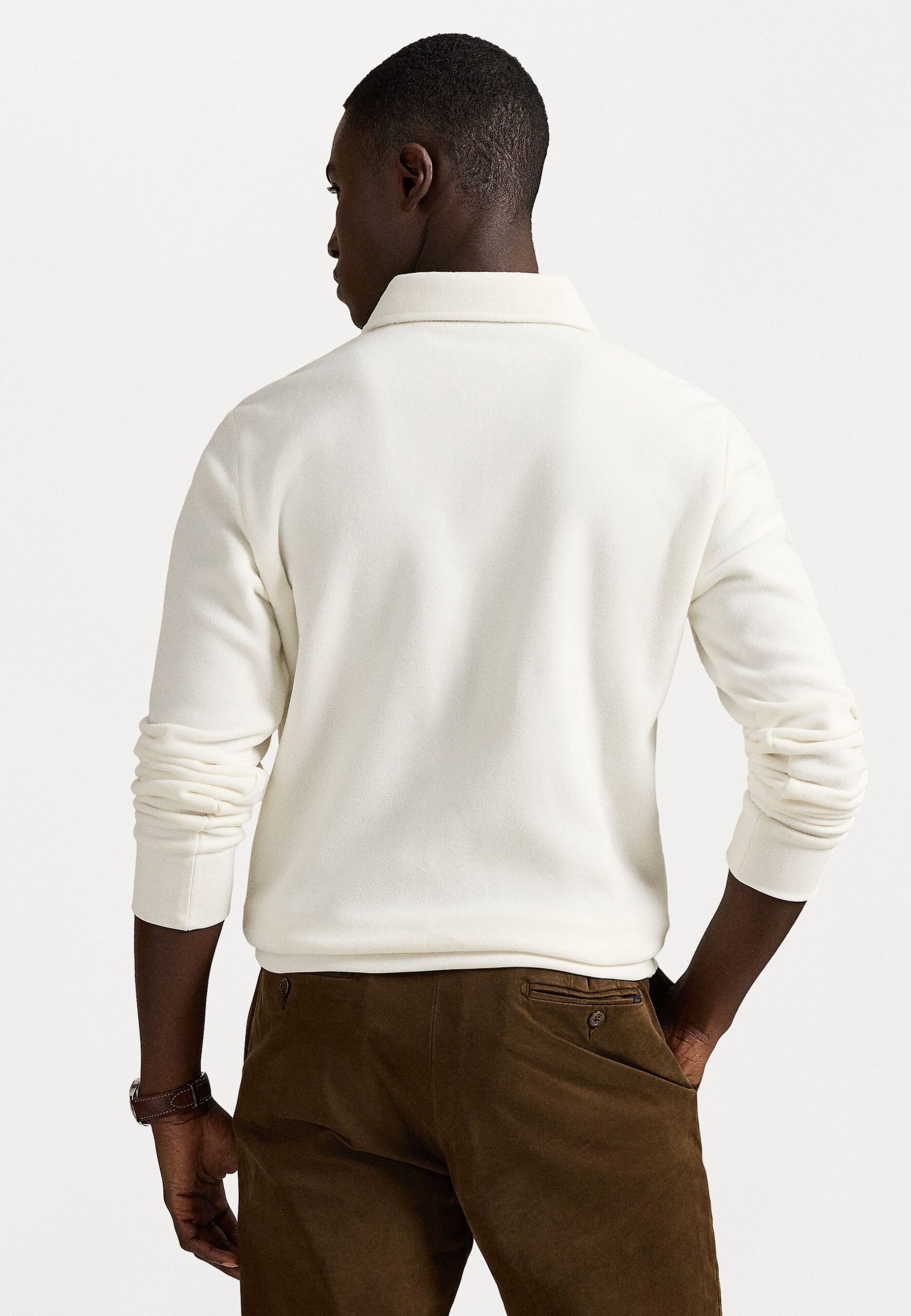 BRUSHED FLEECE POLO-COLLAR PULLOVER – Fleece jumper – trophy cream