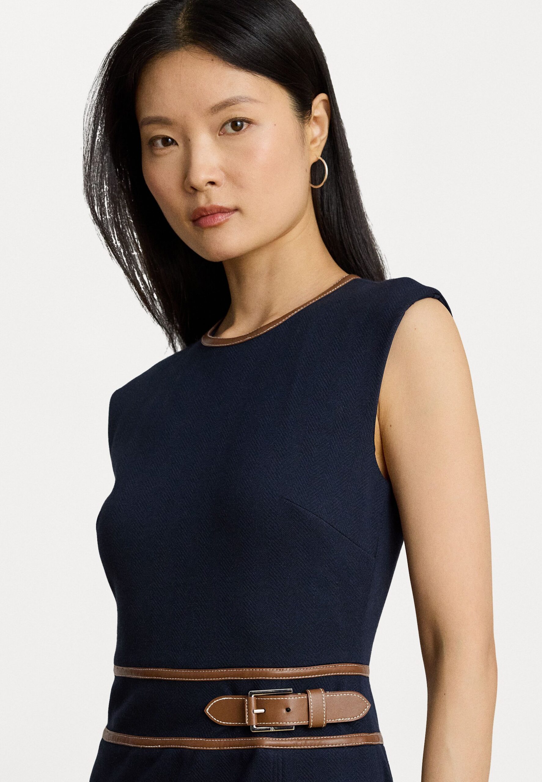 BUCKLE-TRIM HERRINGBONE CAP-SLEEVE DRESS – Shirt dress – lauren navy