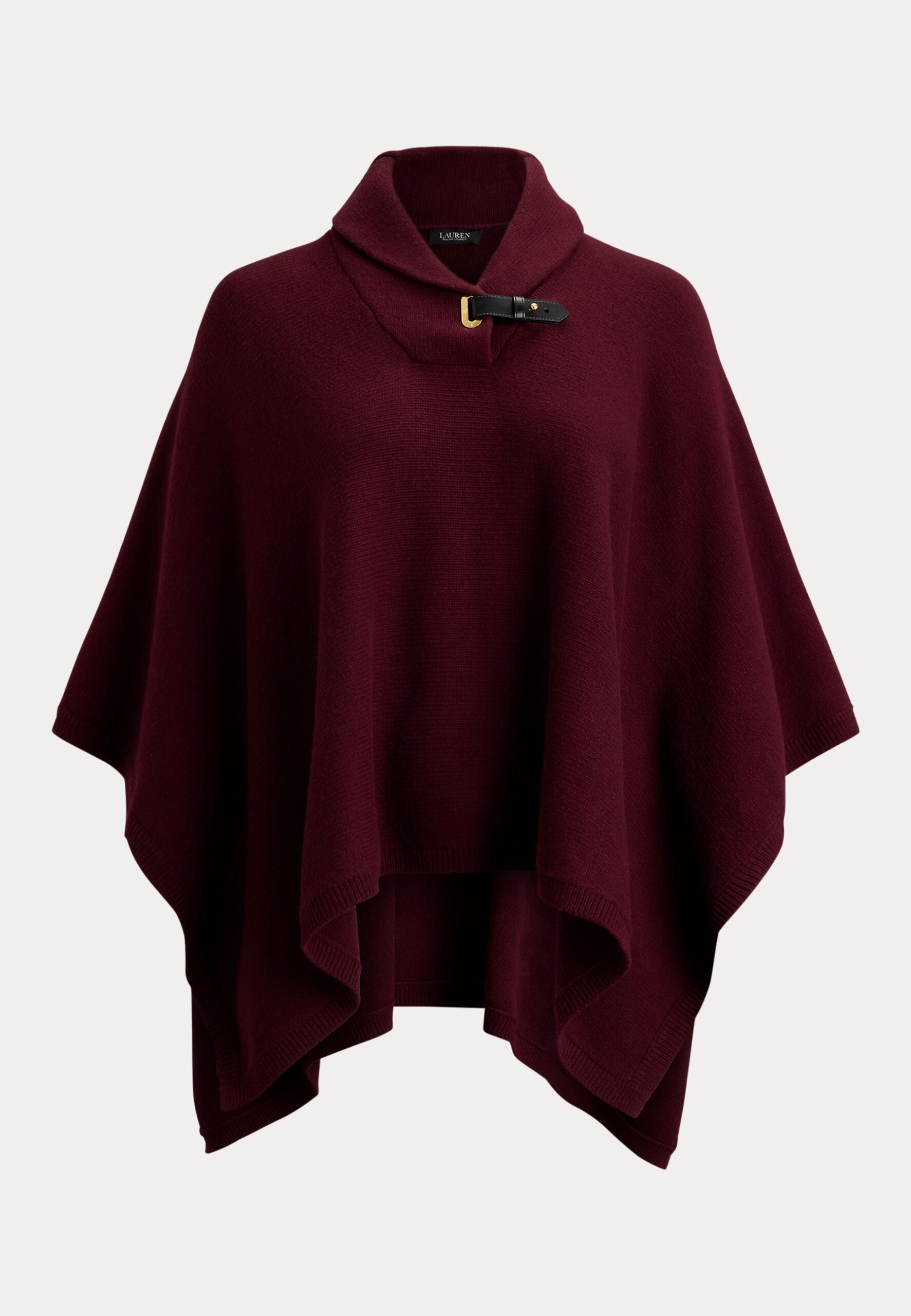 BUCKLE-TRIM WOOL-BLEND SWEATER PONCHO – Cape – dark garnet