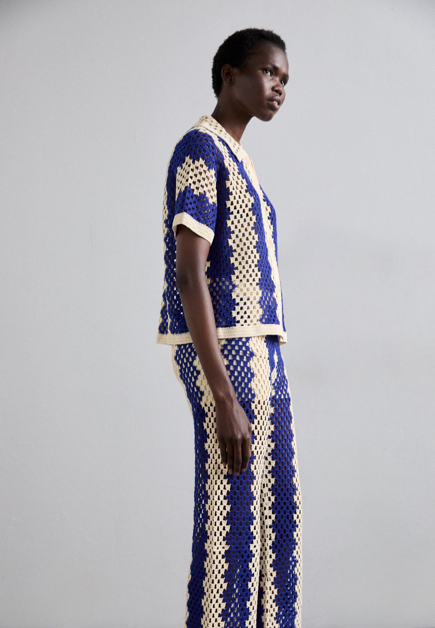 Button-down blouse – bleu/ecru