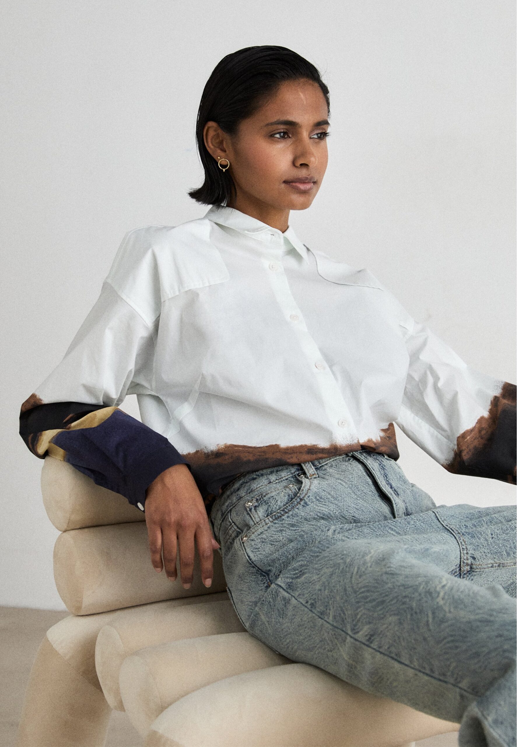 Button-down blouse – white/coffee/black/oat/midnight