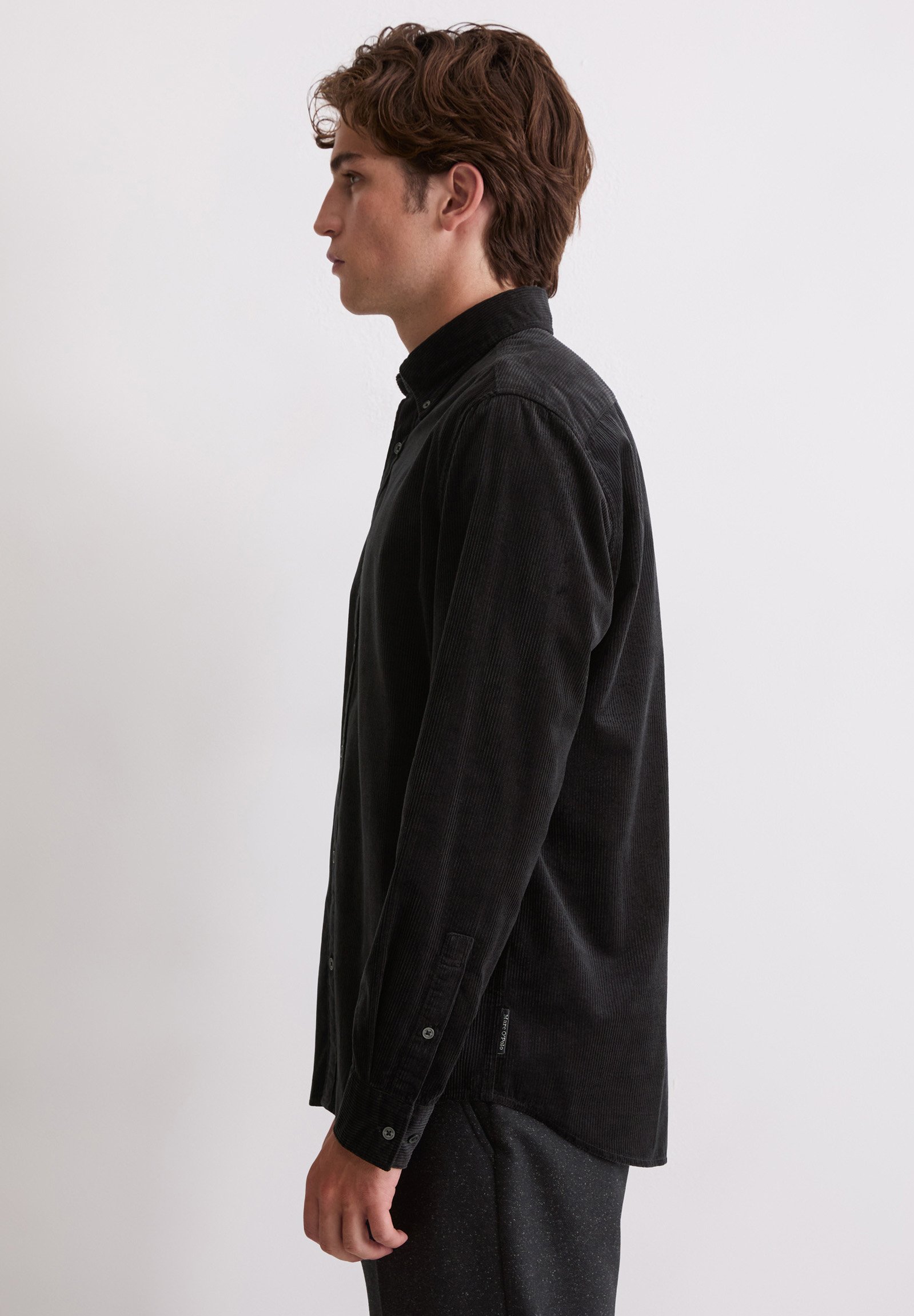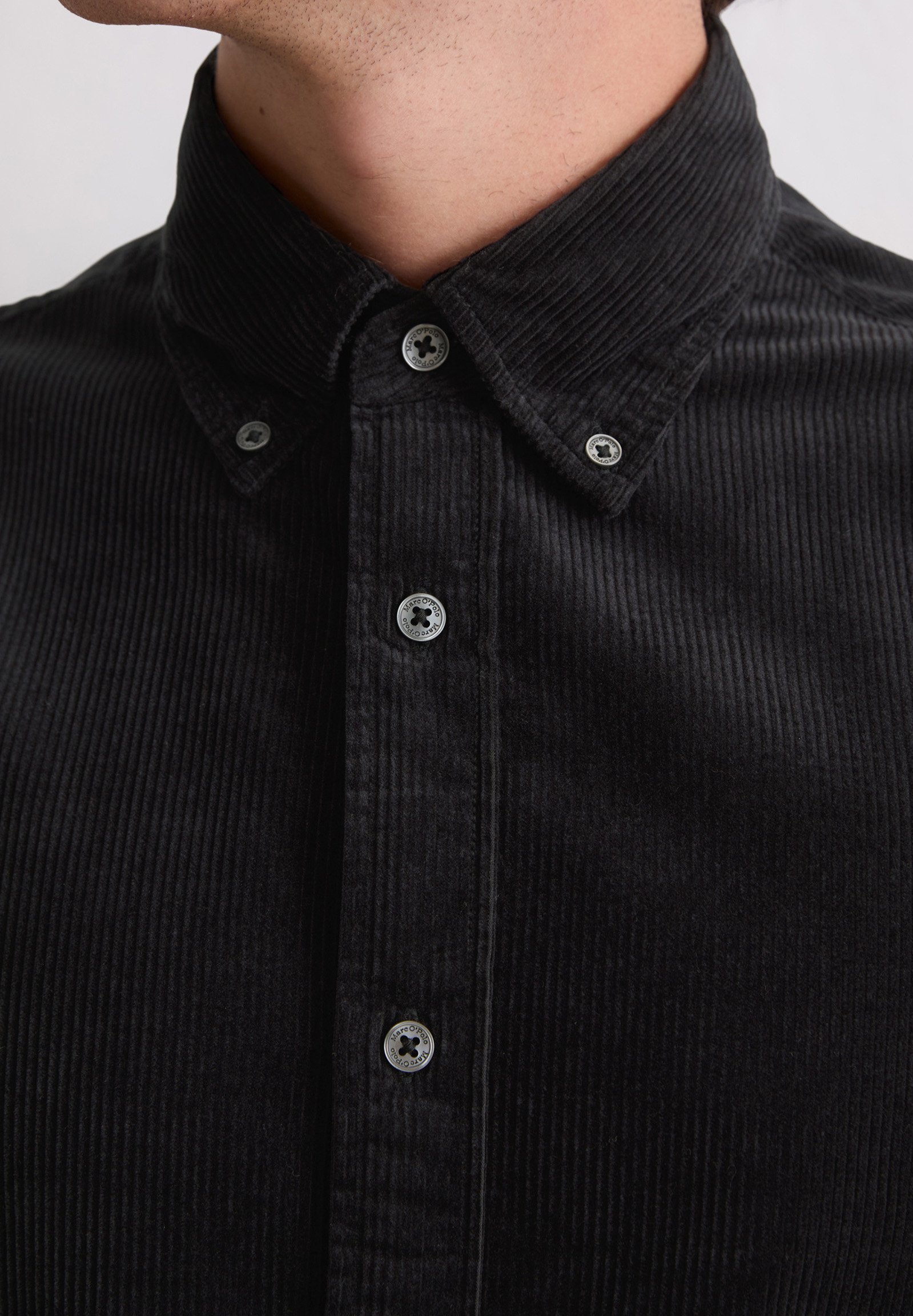 BUTTON DOWN COLLAR LONG SLEEVES ROUND HEM – Shirt – black