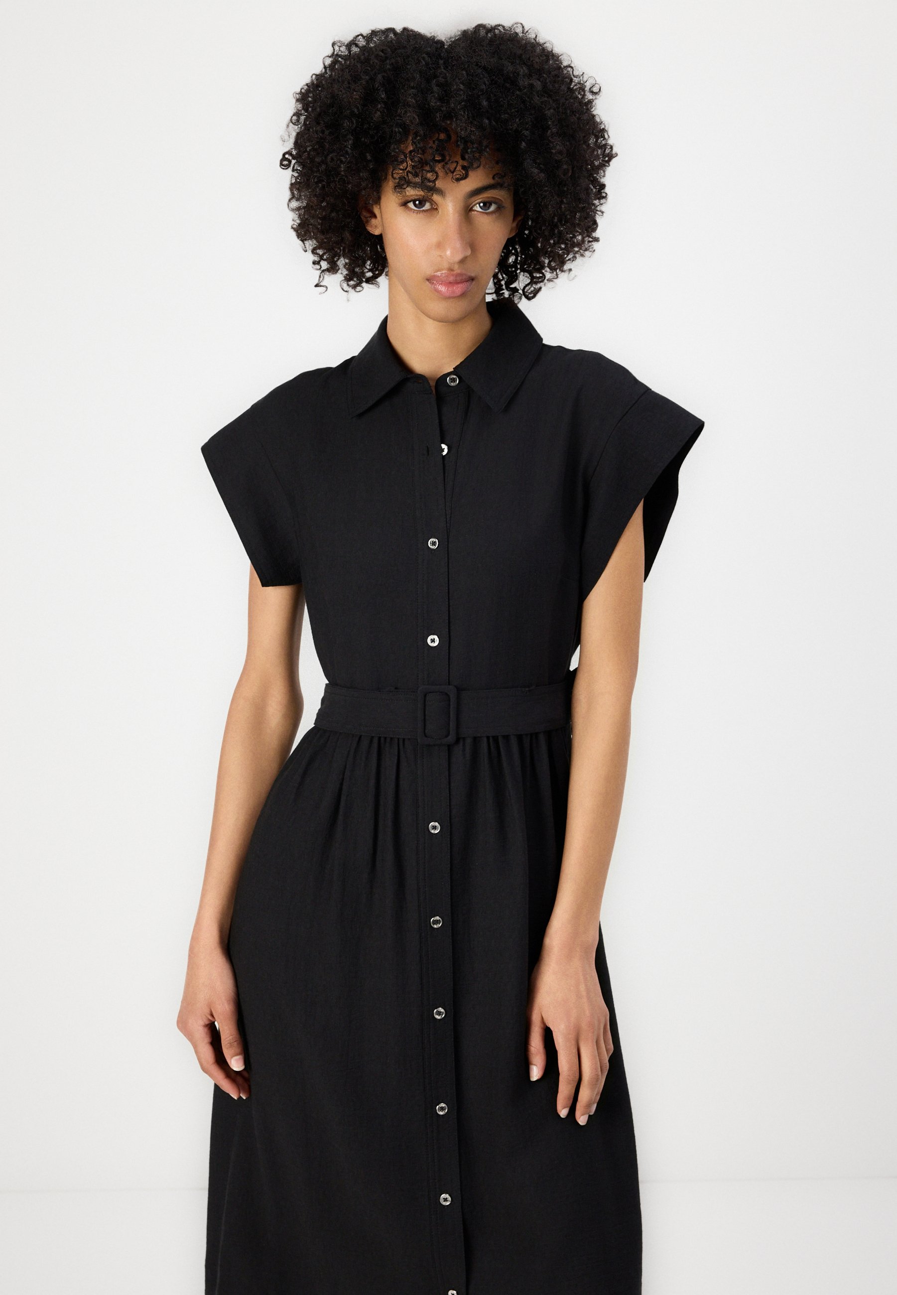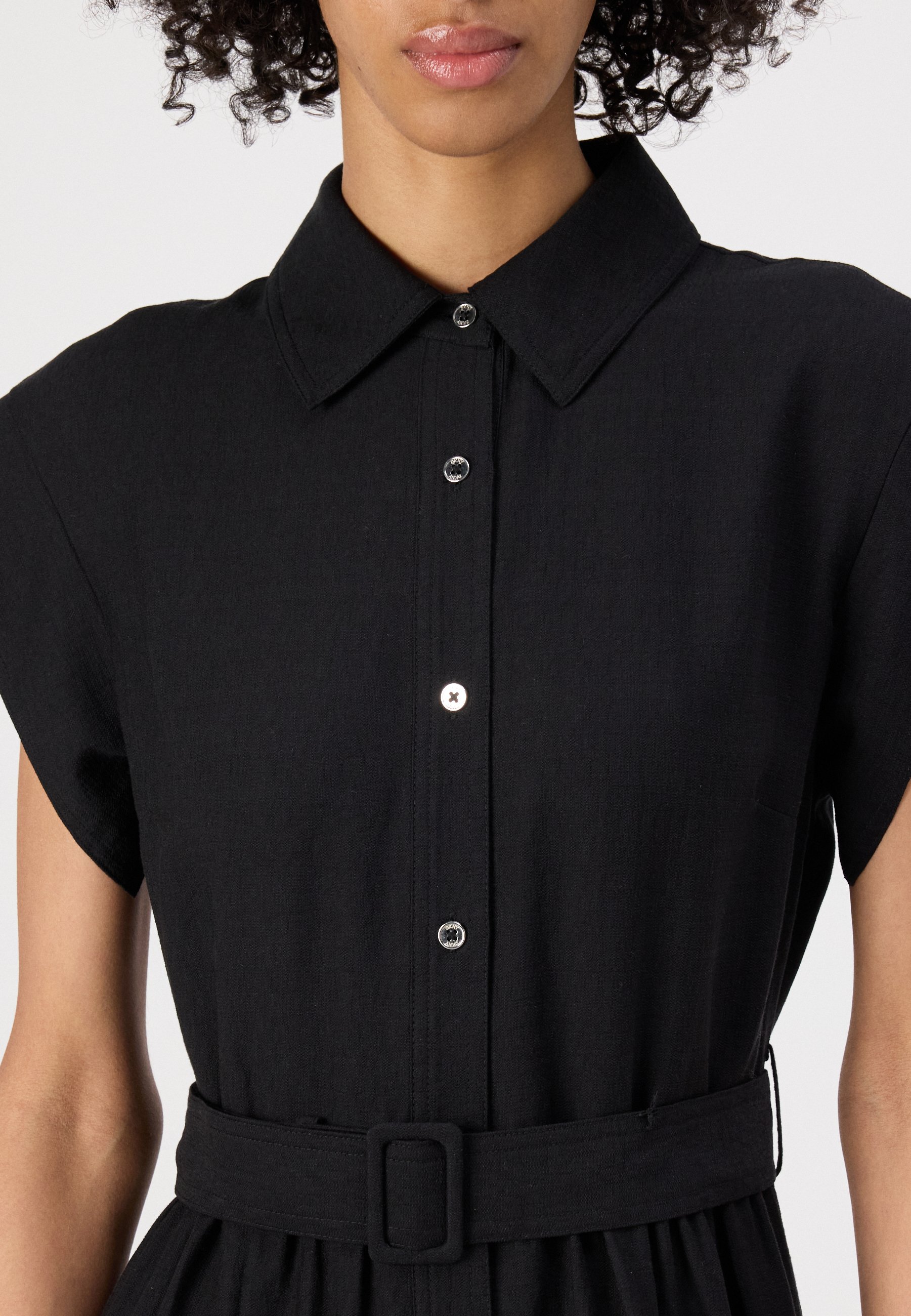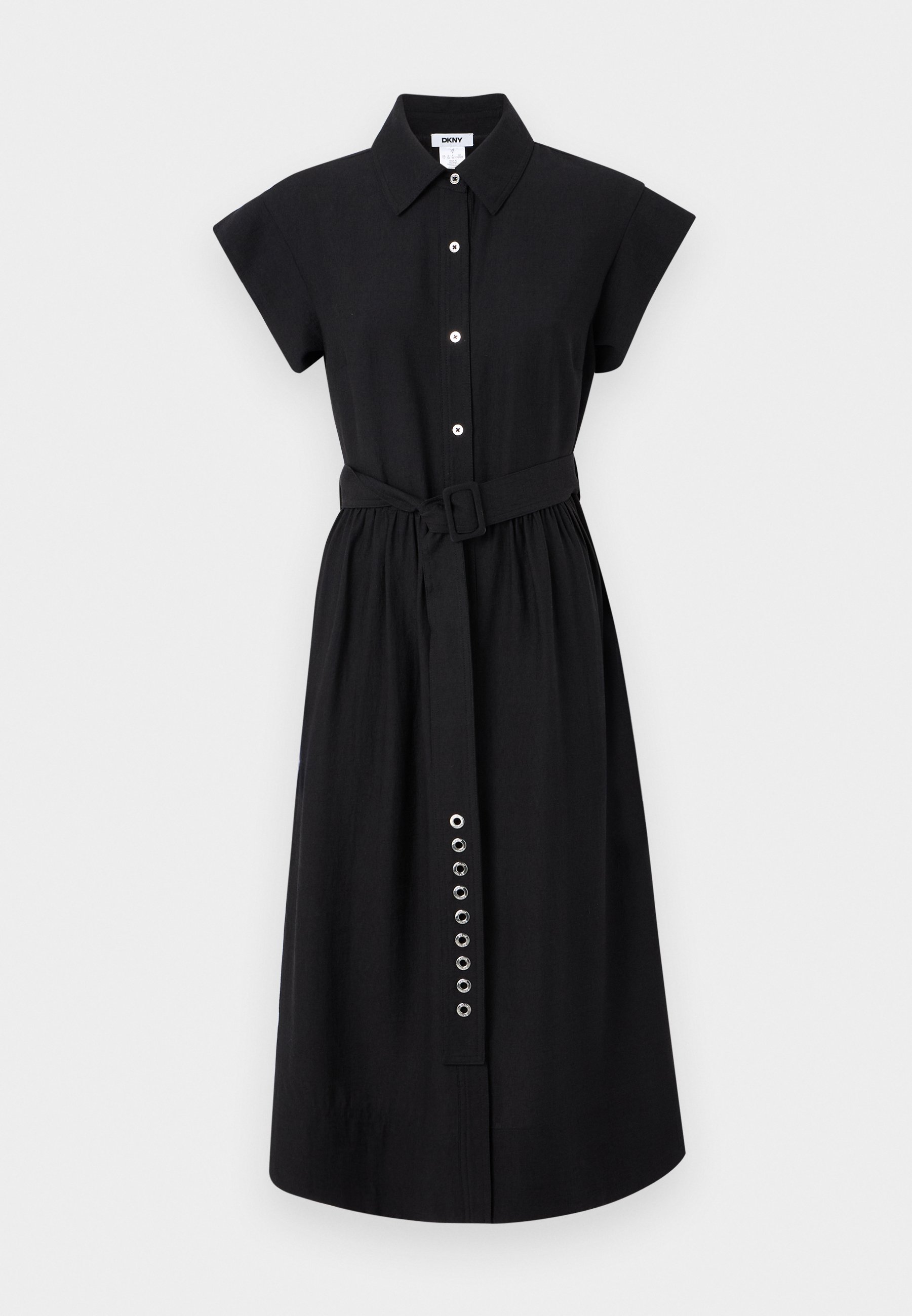 BUTTON DOWN SHIRT DRESS GROMMETS BELT – Shirt dress – black
