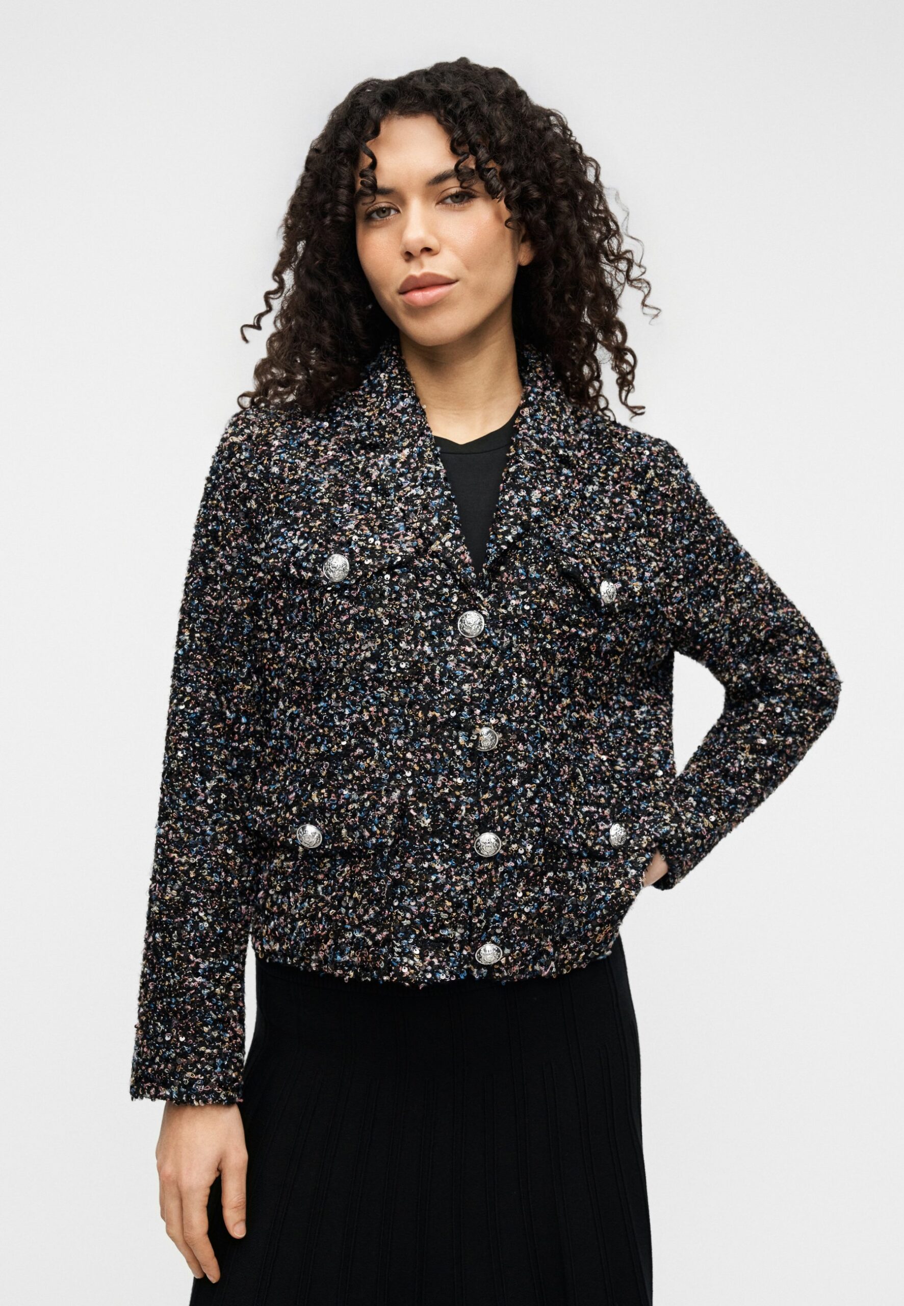 BUTTON FRONT JACKET UTILITY POCKETS – Blazer – black/shiny silver-coloured