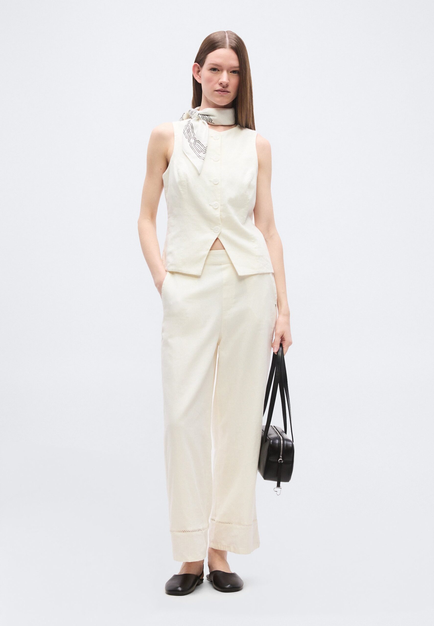 BUTTON FRONT VEST SPLIT HEM – Waistcoat – ivory