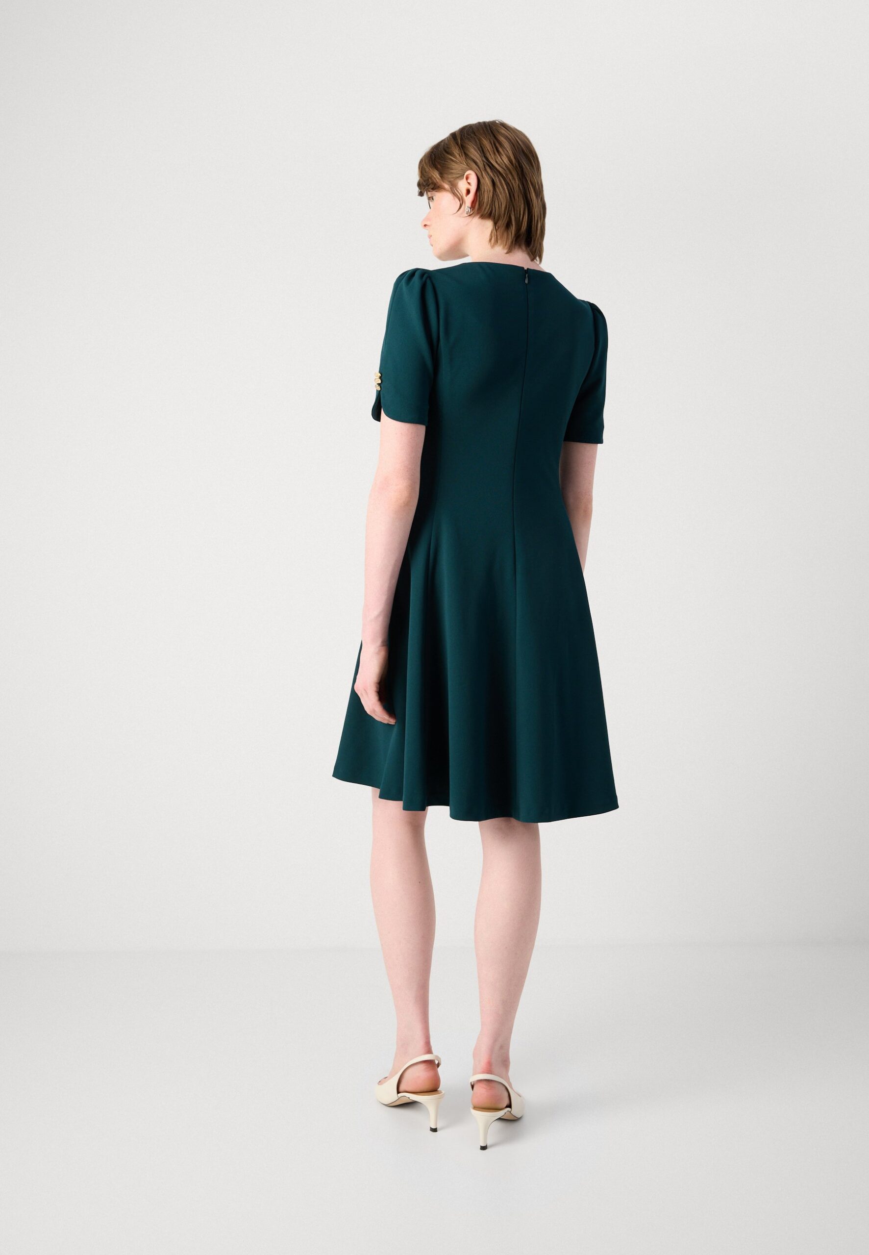 BUTTON SLEEVE FIT FLARE DRESS – Jersey dress – pine