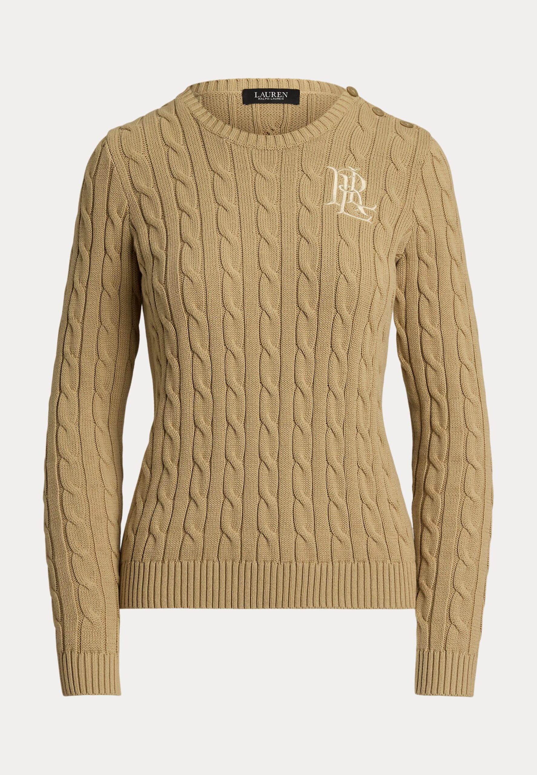BUTTON TRIM CABLE KNIT COTTON JUMPER – Jumper – beige