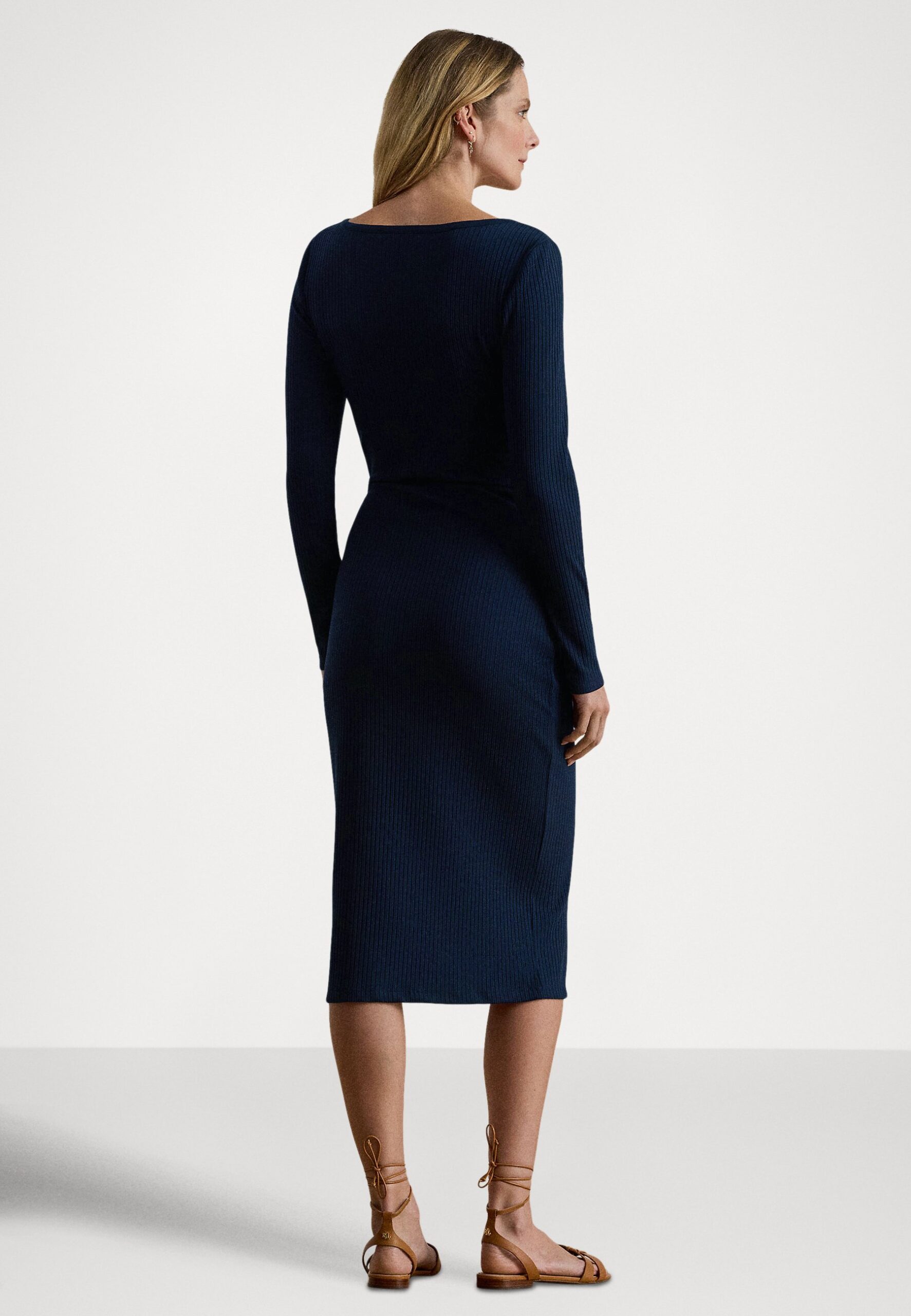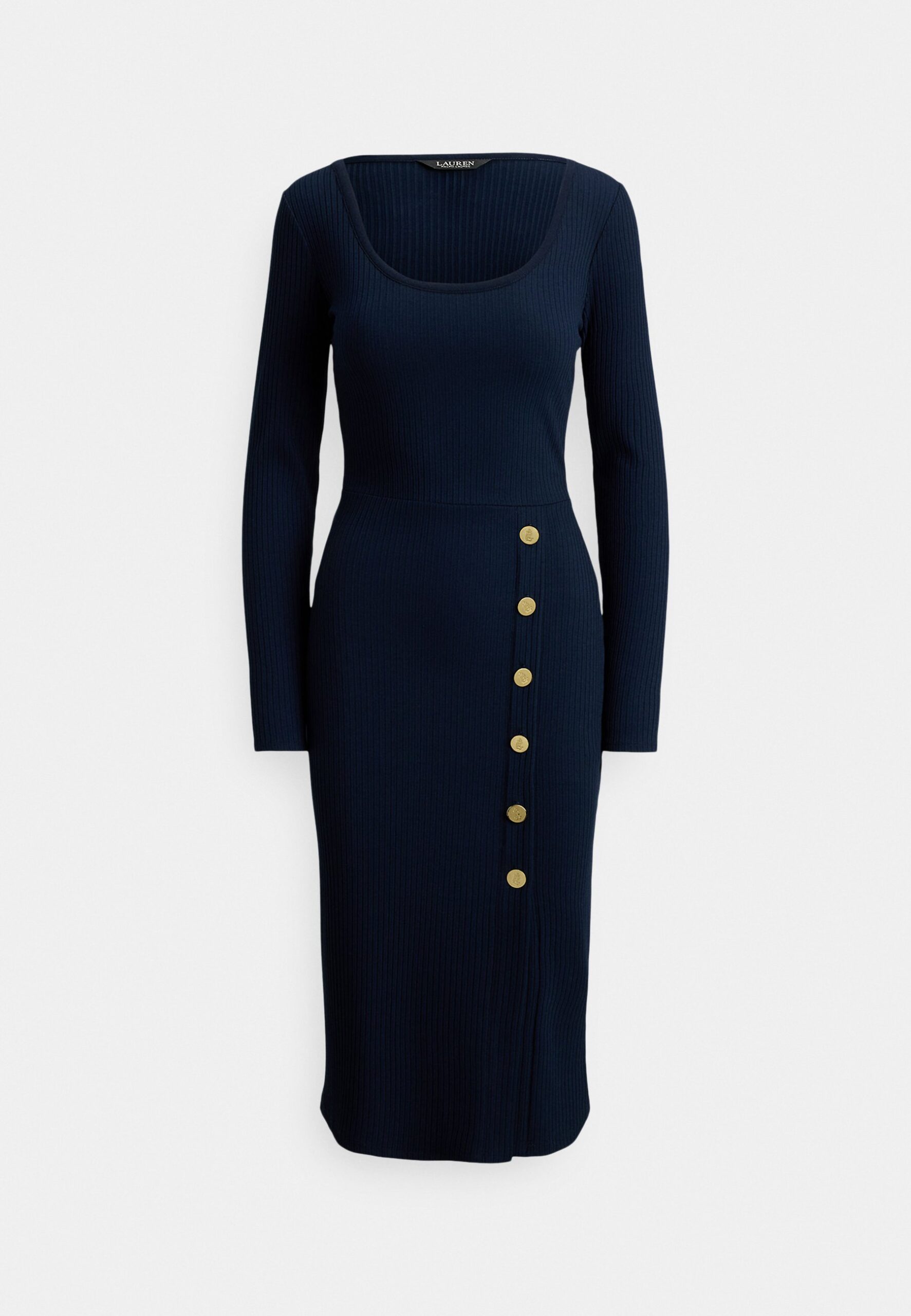 BUTTON-TRIM RIB-KNIT DRESS – Jumper dress – navy