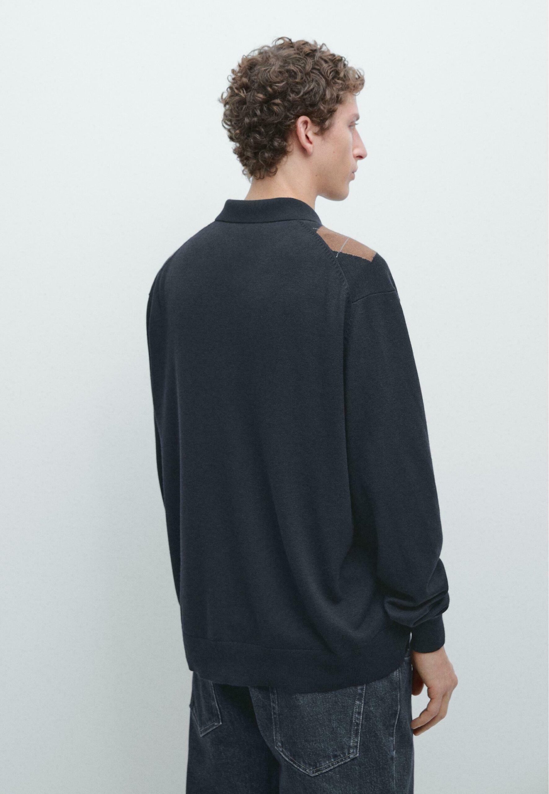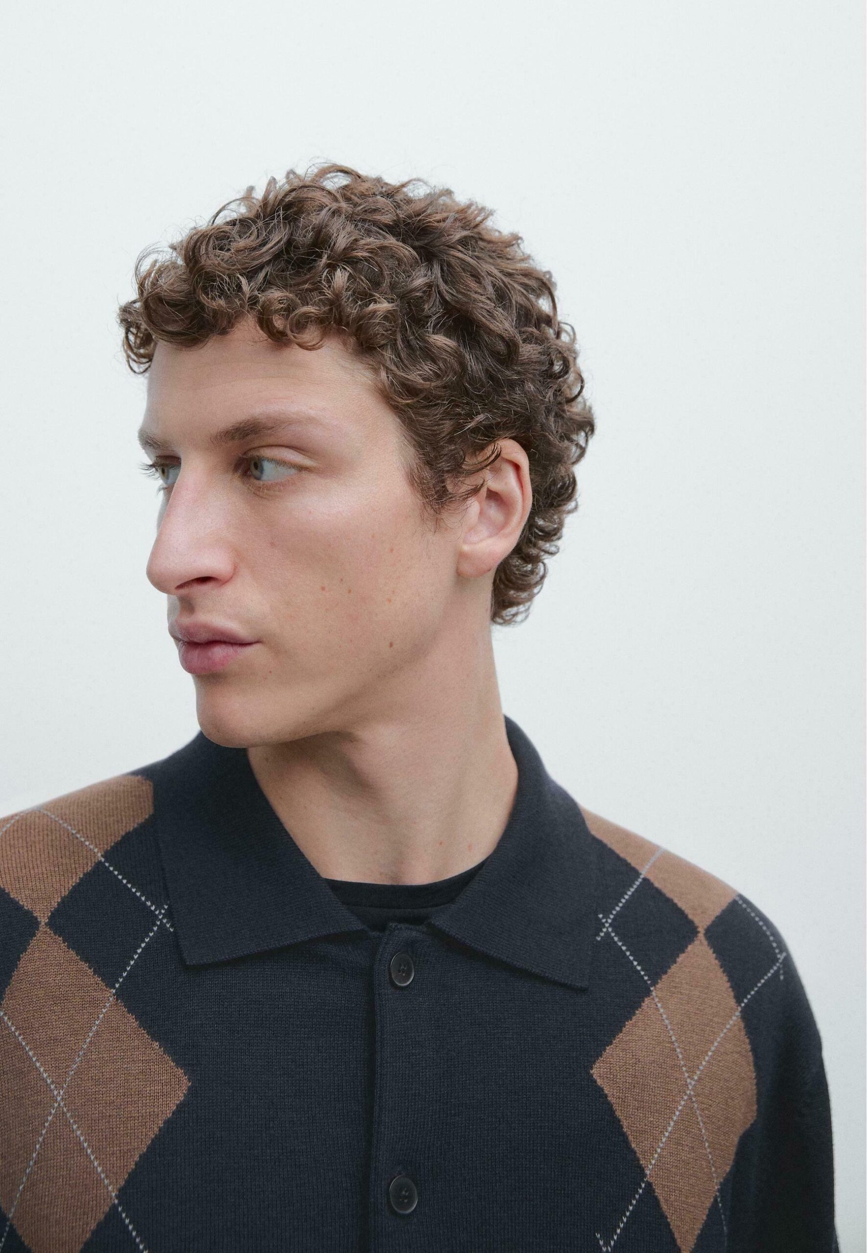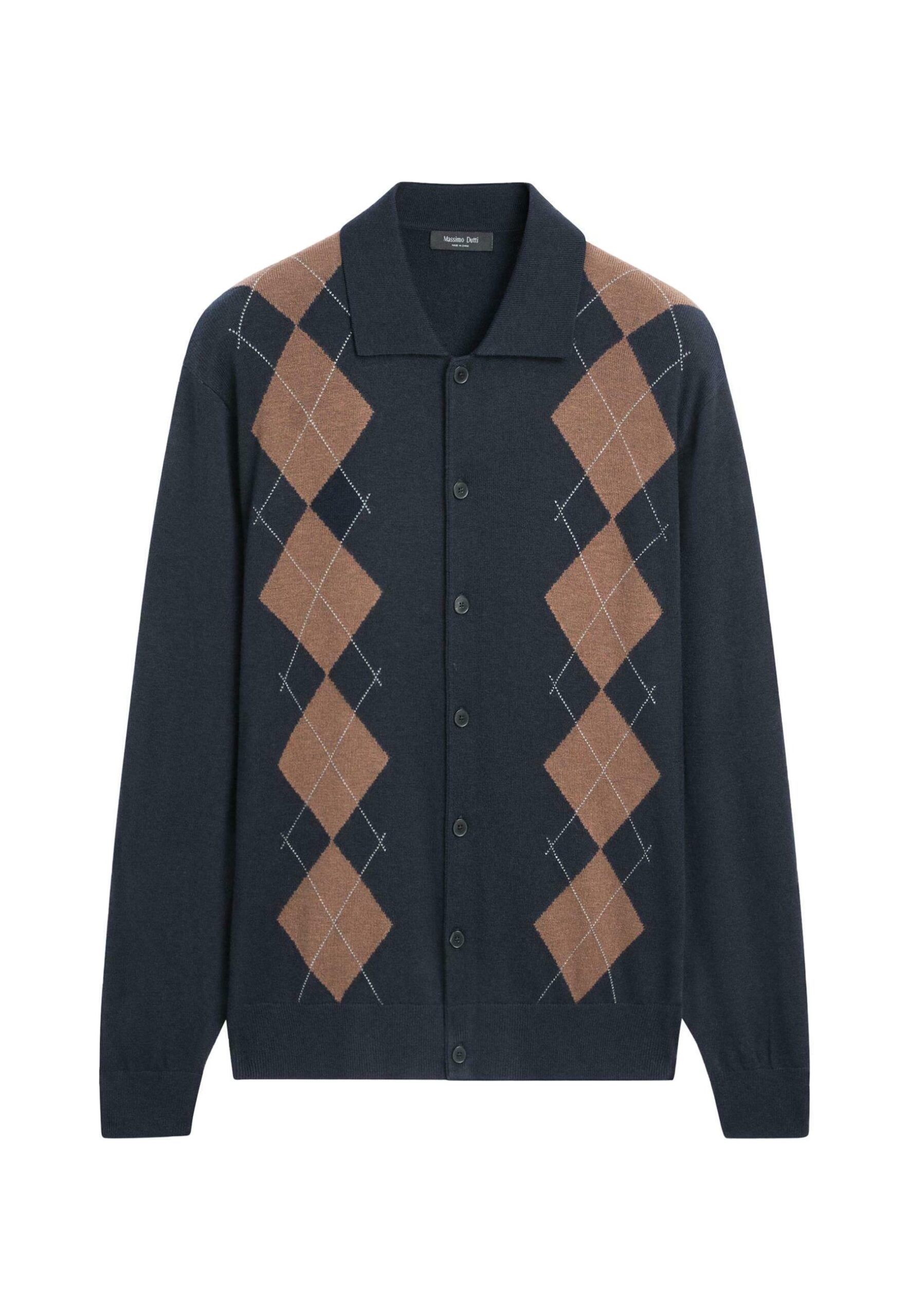 BUTTONED ARGYLE KNIT – Cardigan – dark blue