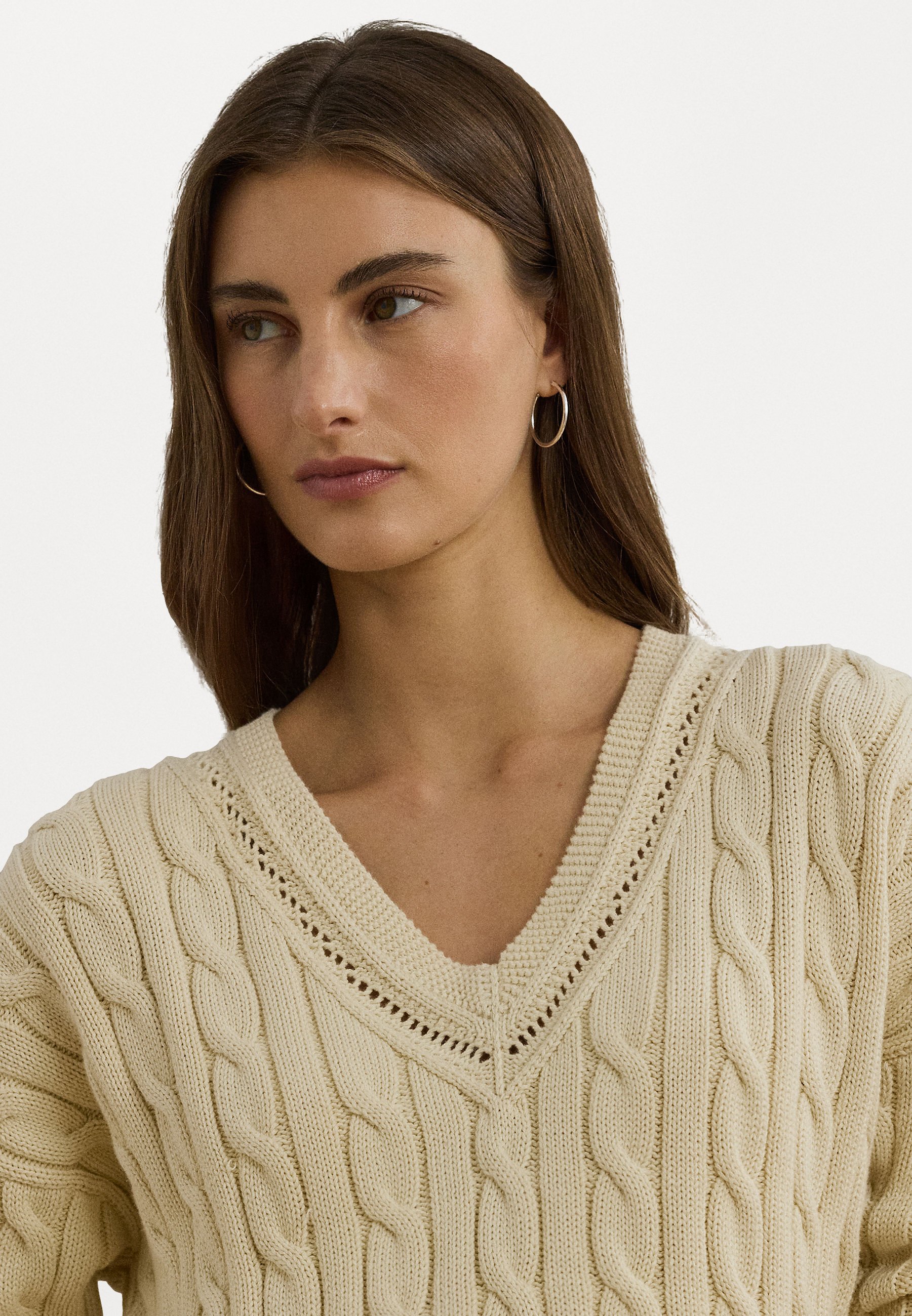 CABLE AND POINTELLE KNIT CRICKET JUMPER – Jumper – ivory beige
