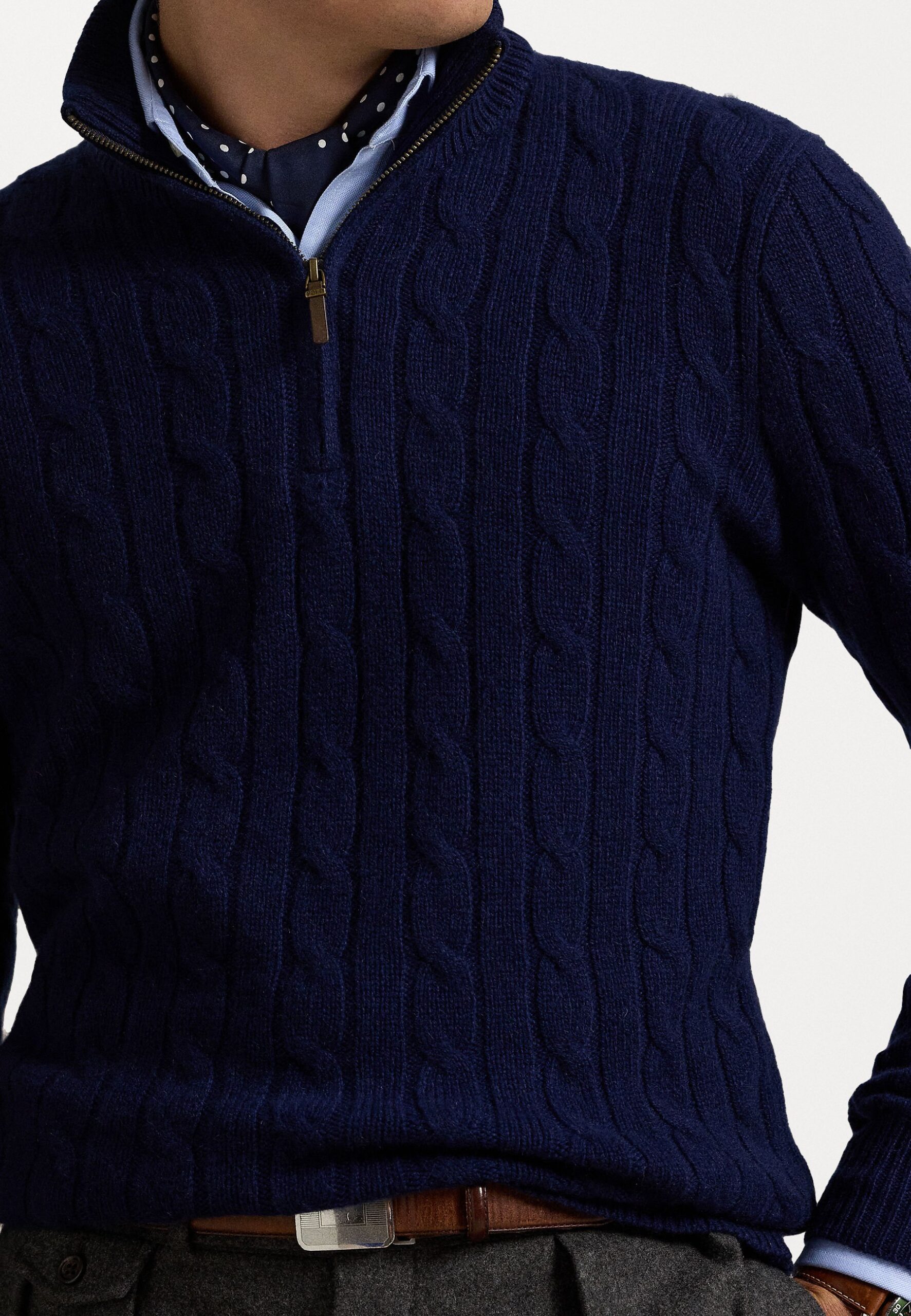 CABLE-KNIT CASHMERE QUARTER-ZIP JUMPER – Jumper – bright navy