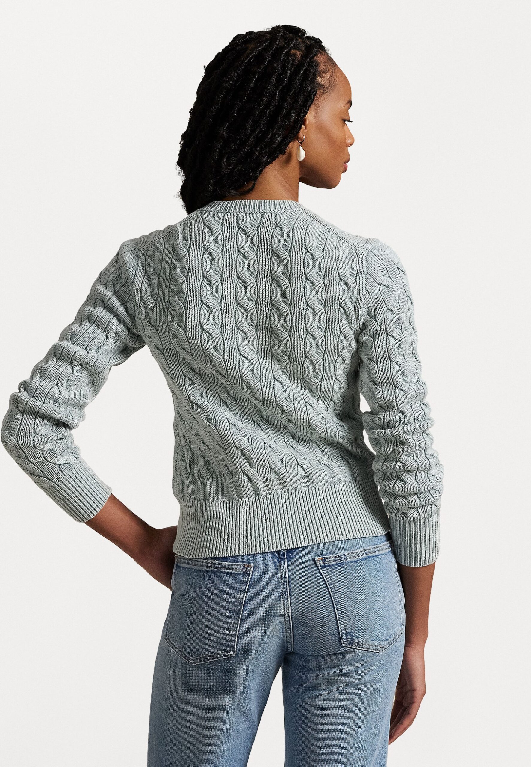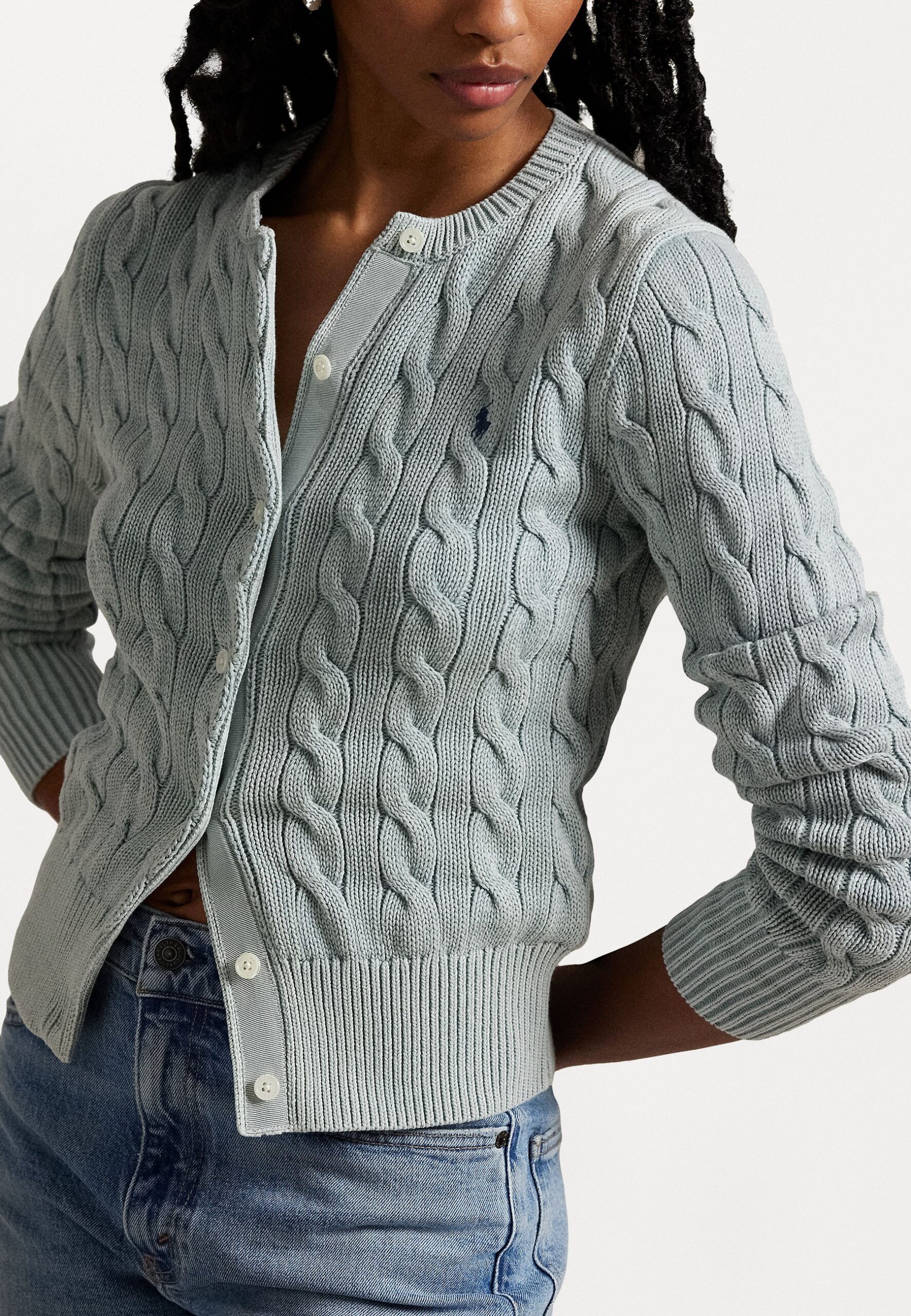 CABLE KNIT COTTON CARDIGAN – Cardigan – light chambray