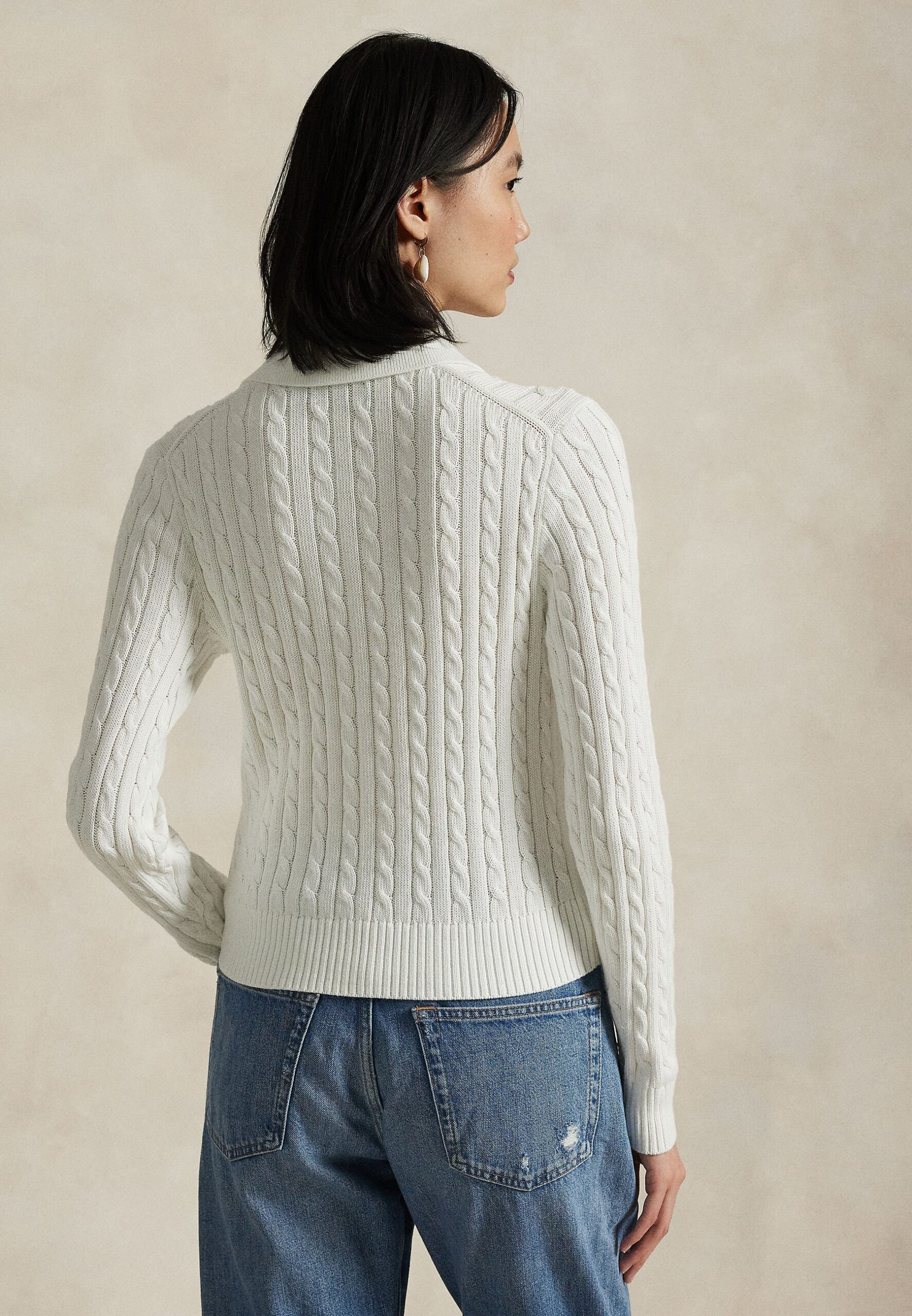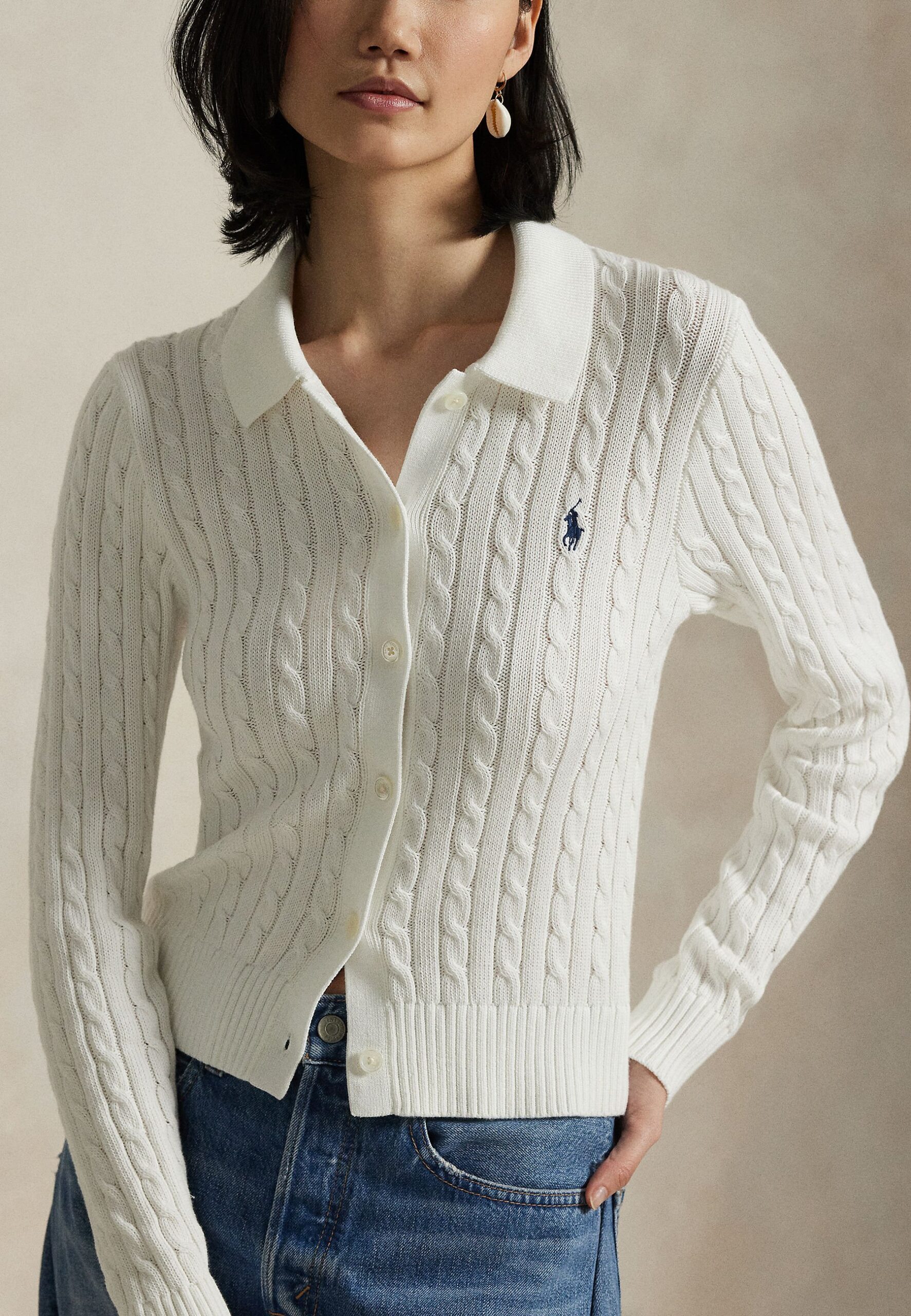 CABLE-KNIT COTTON CARDIGAN – Cardigan – white
