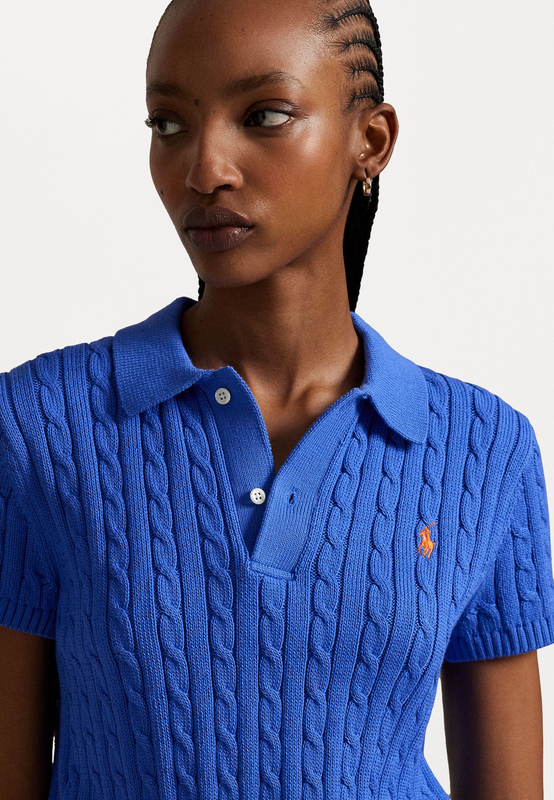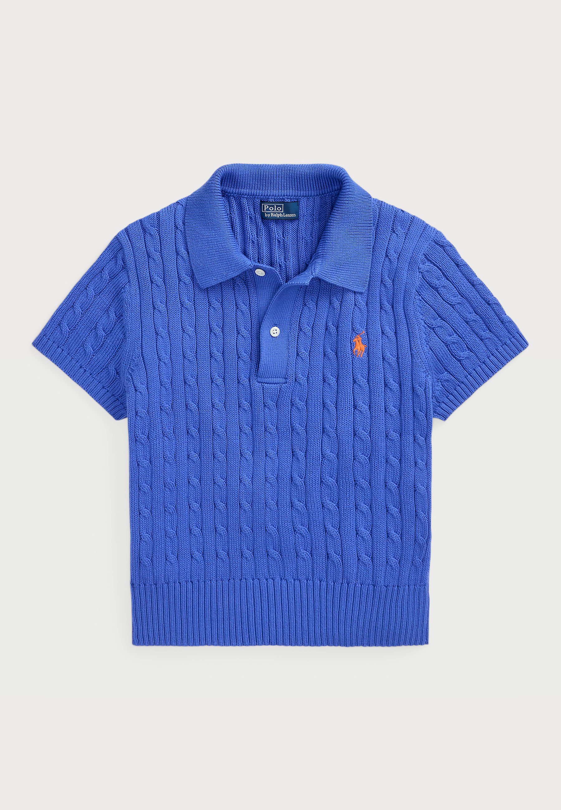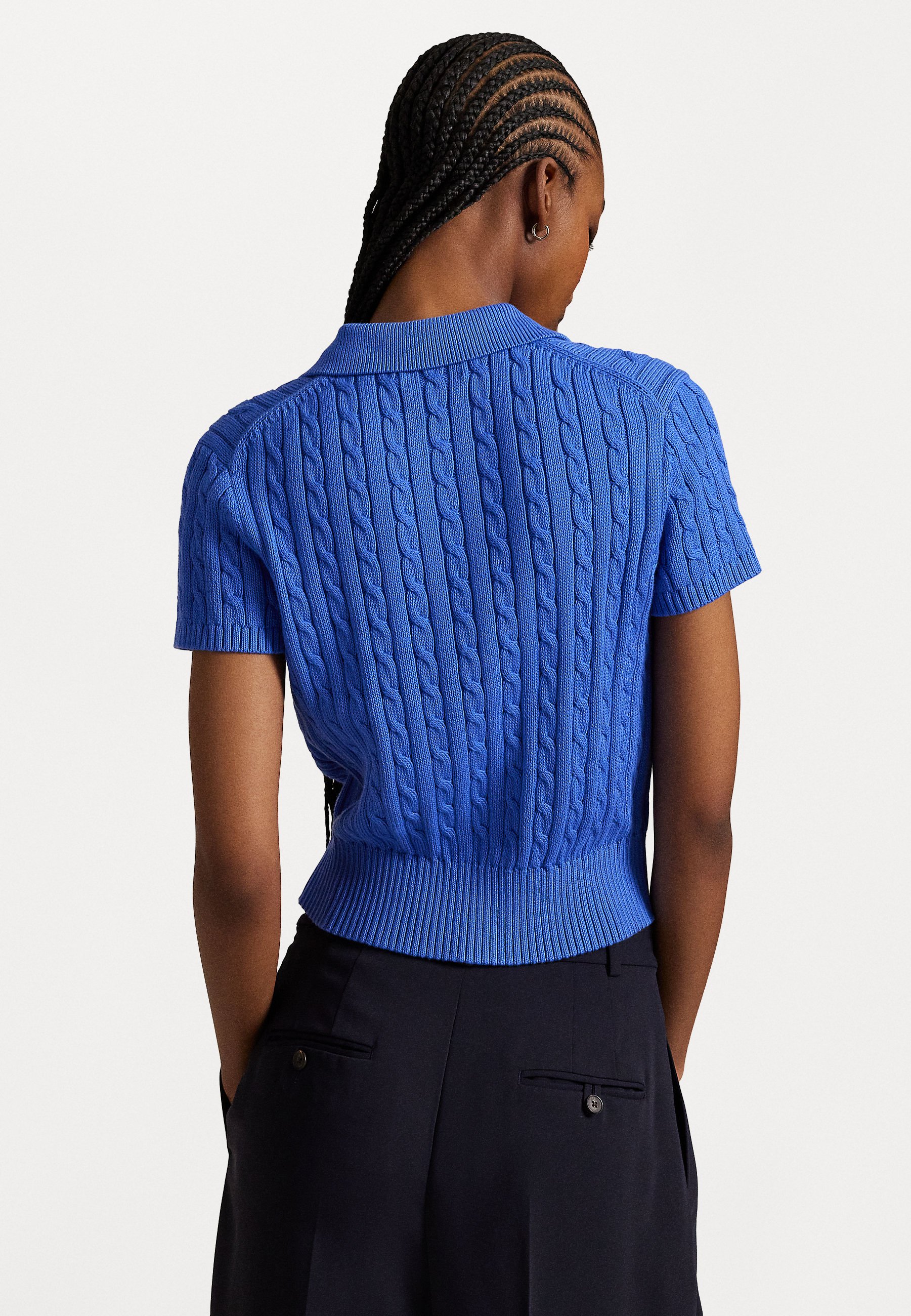 CABLE KNIT COTTON CROPPED POLO SHIRT – Polo shirt – maidstone blue