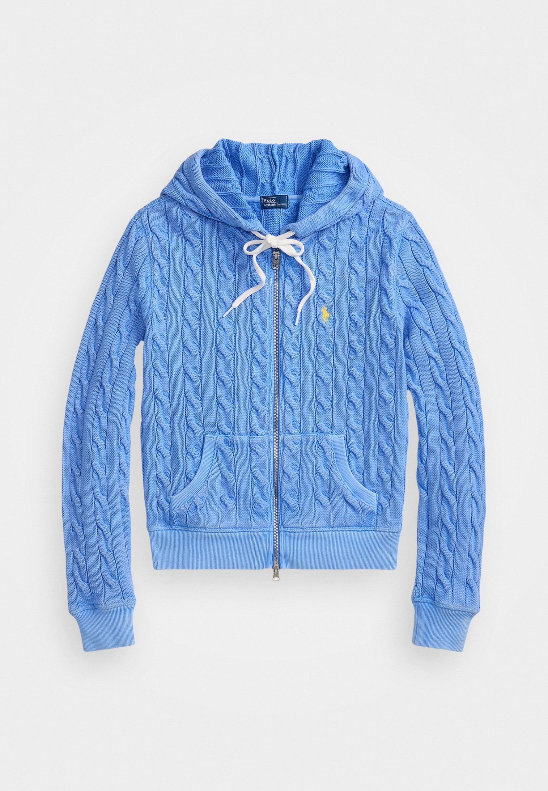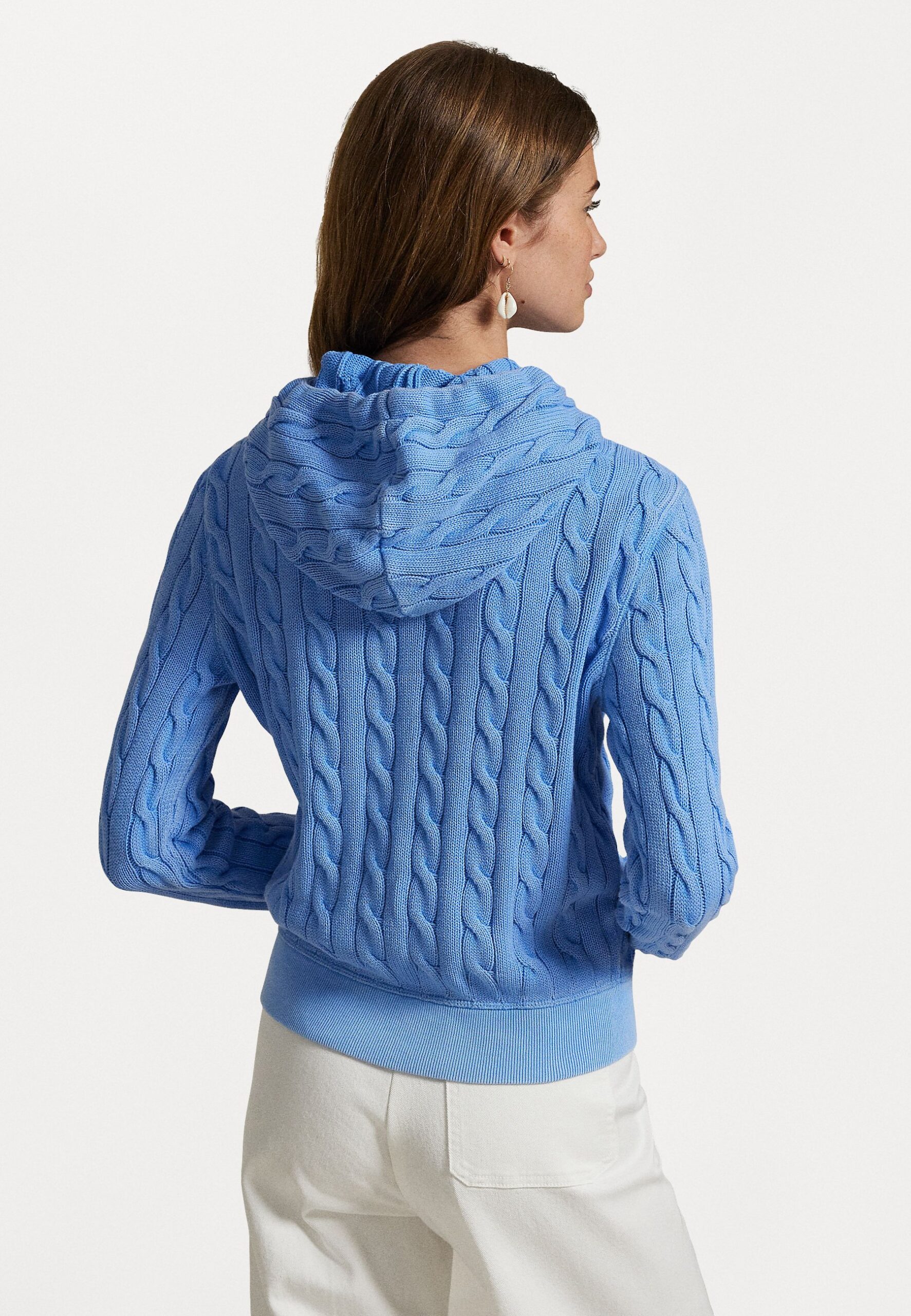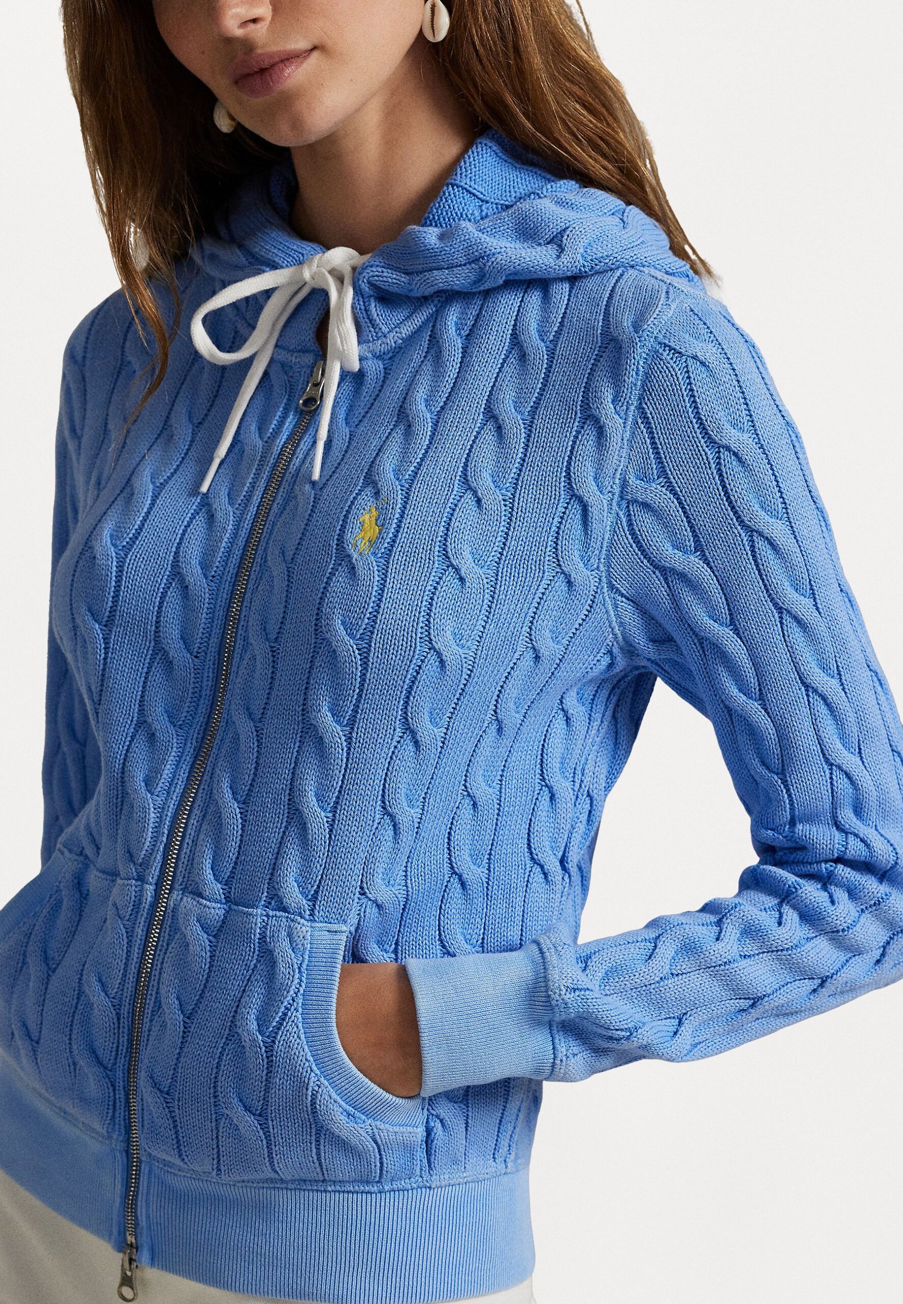 CABLE KNIT COTTON FULL ZIP HOODIE – Cardigan – harbor island blue