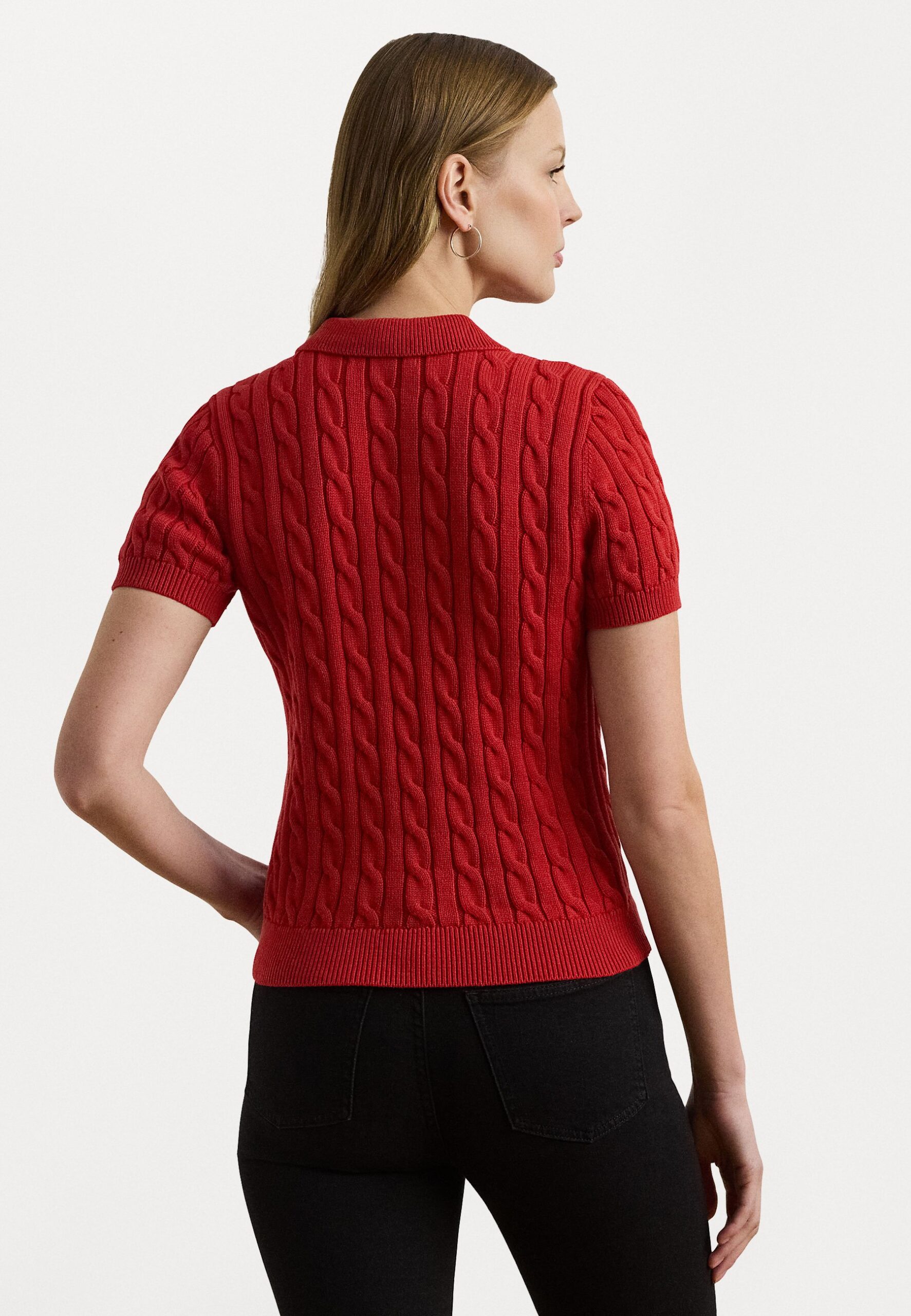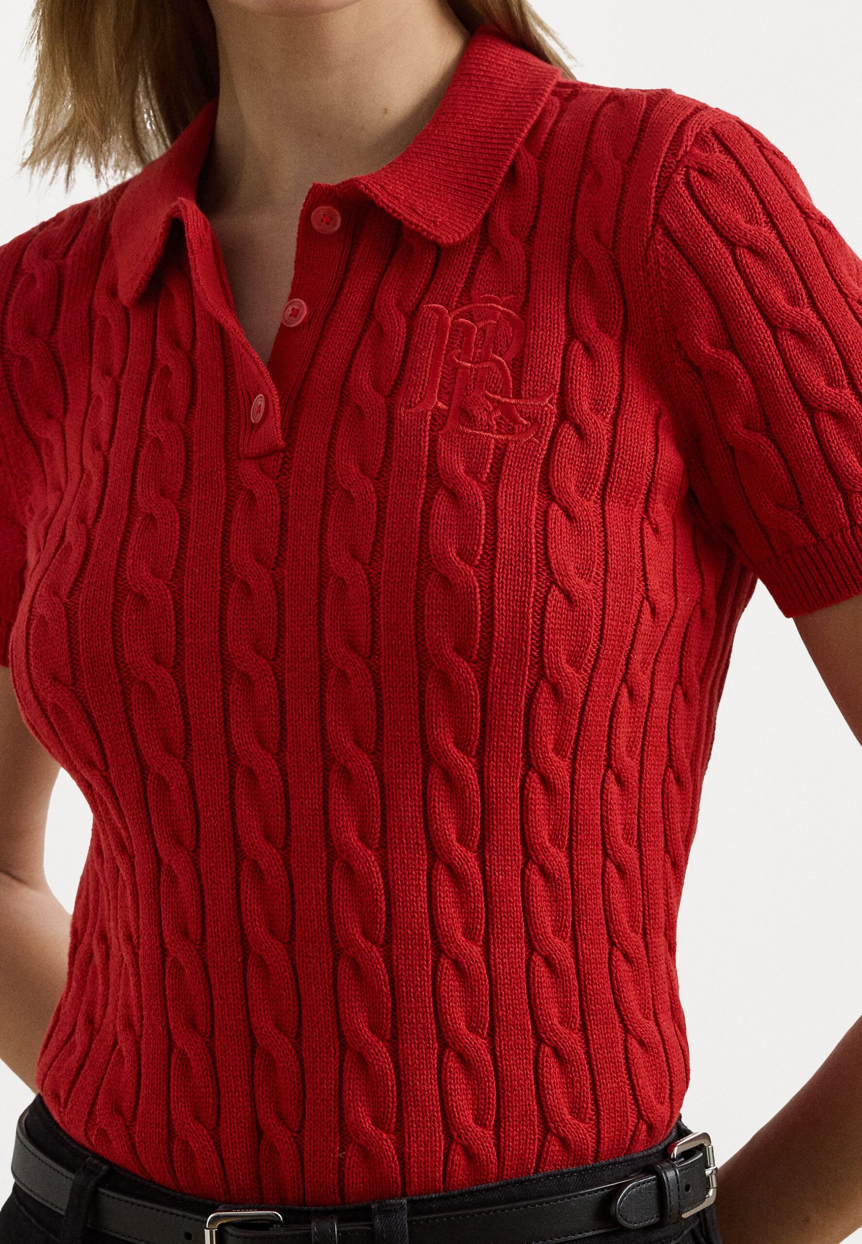 CABLE KNIT COTTON POLO JUMPER – Polo shirt – madison red