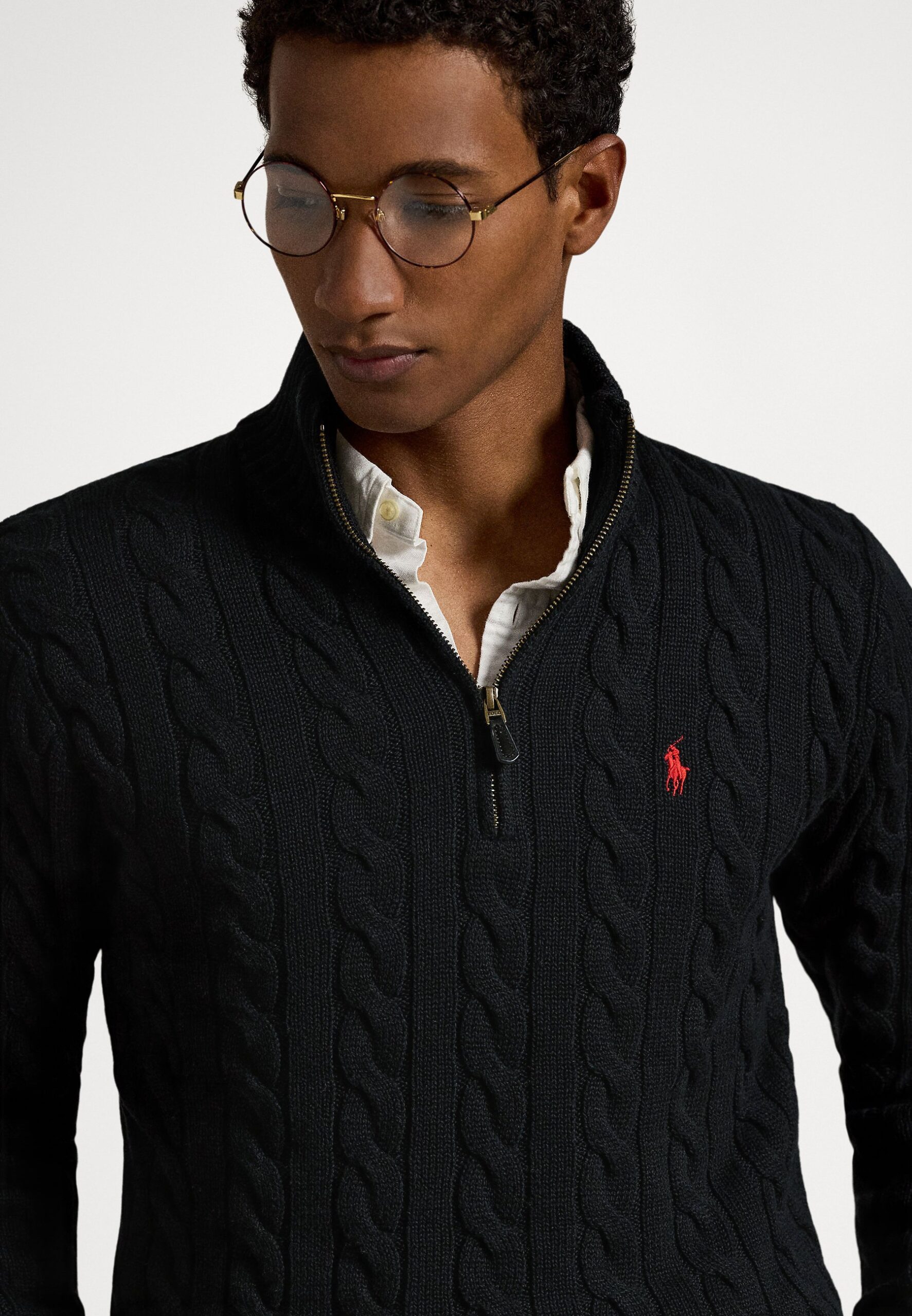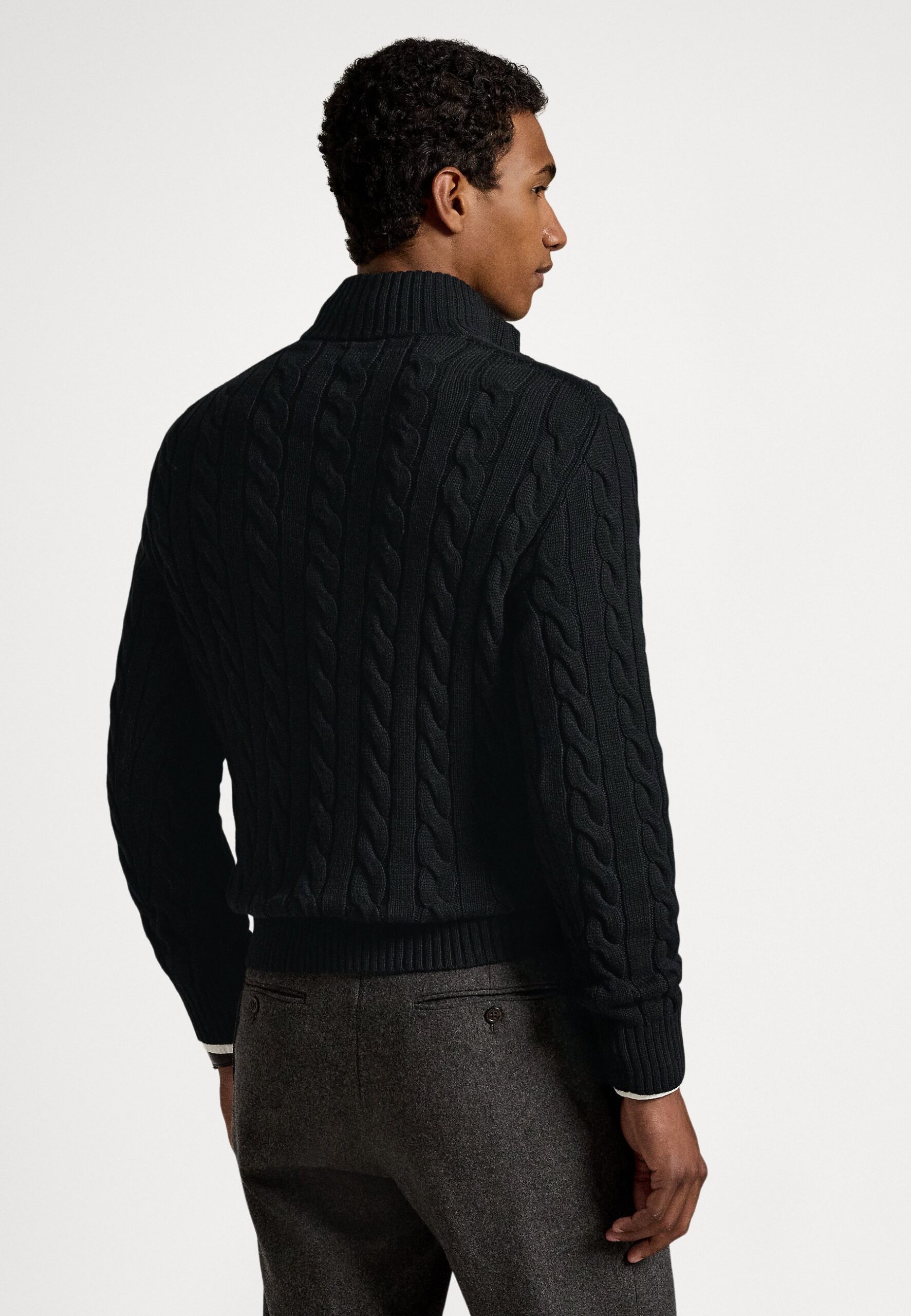 CABLE-KNIT COTTON QUARTER-ZIP SWEATER – Jumper – black