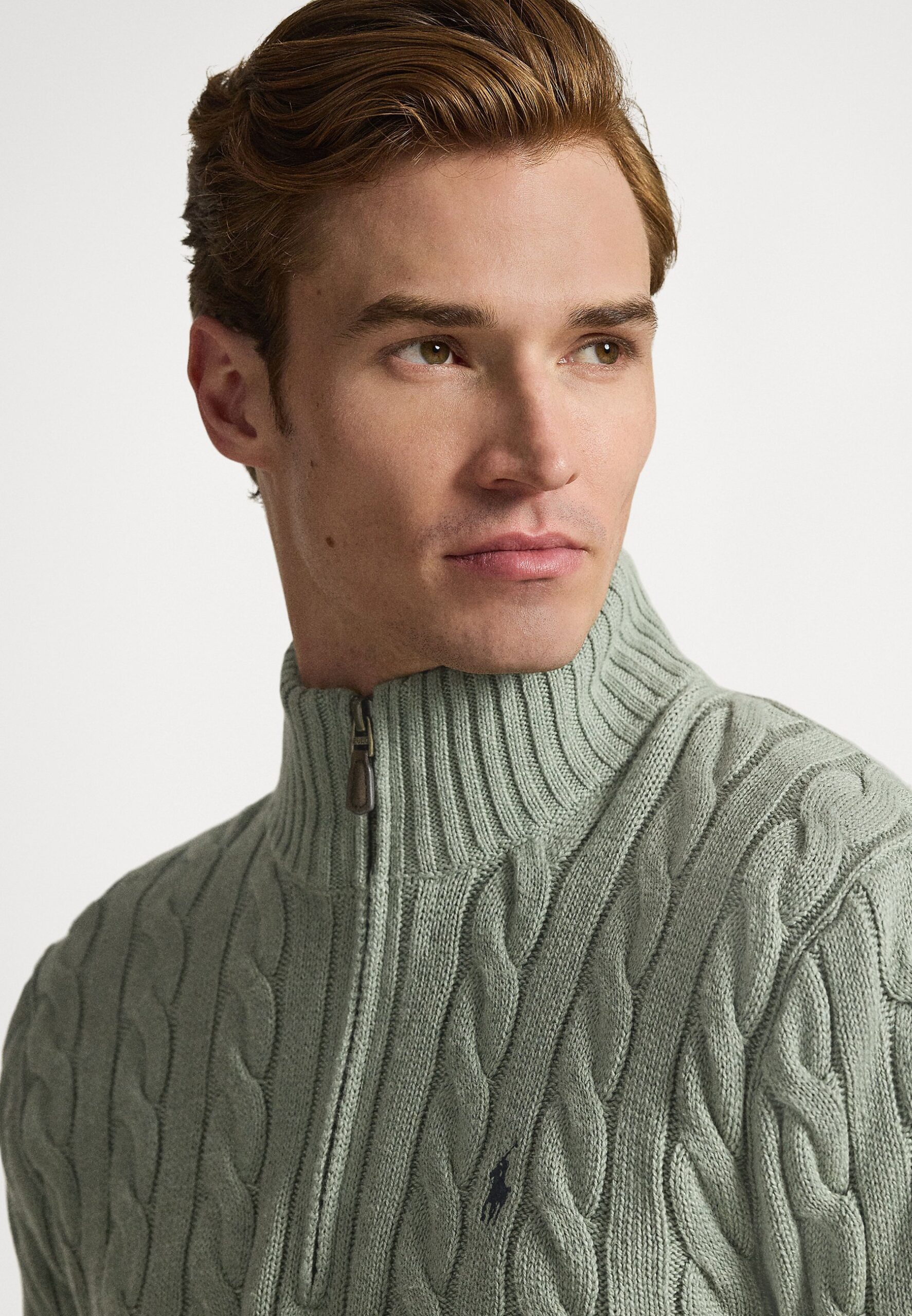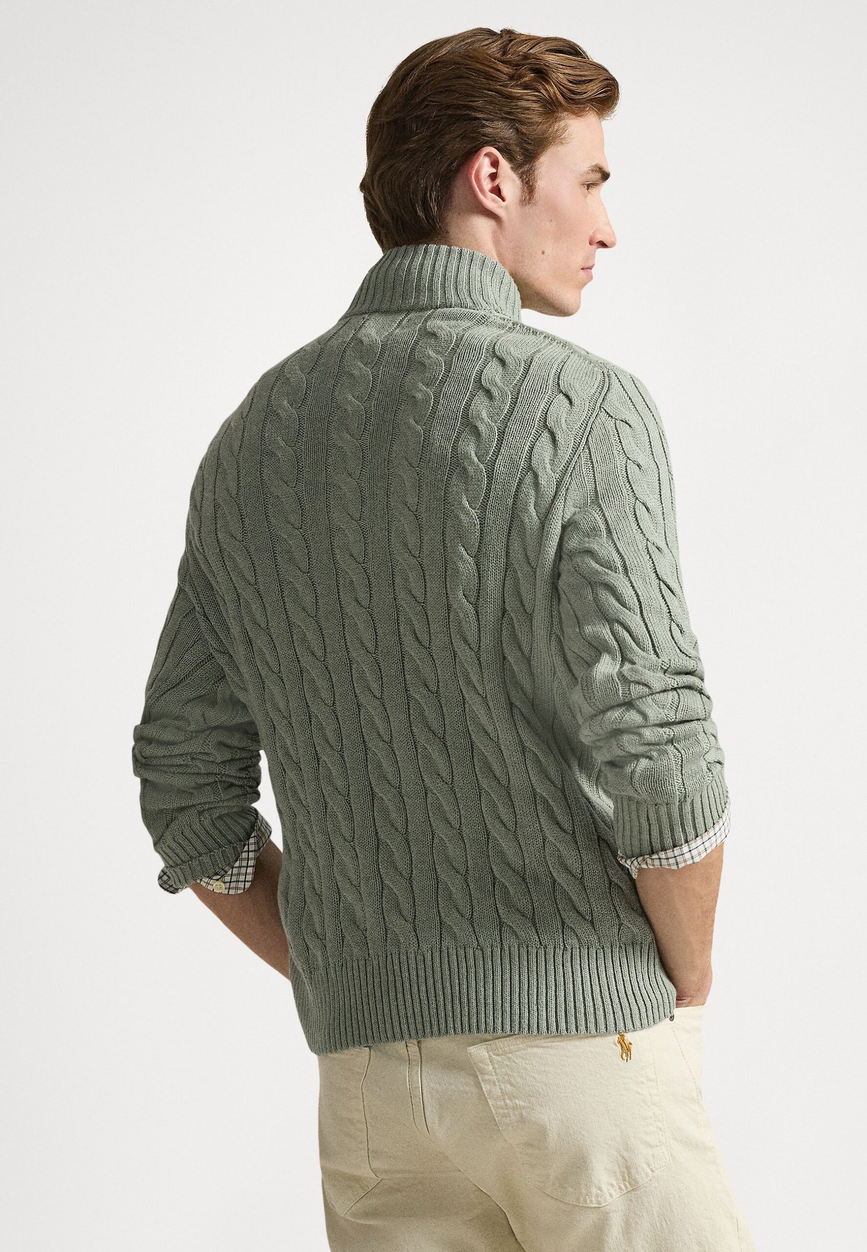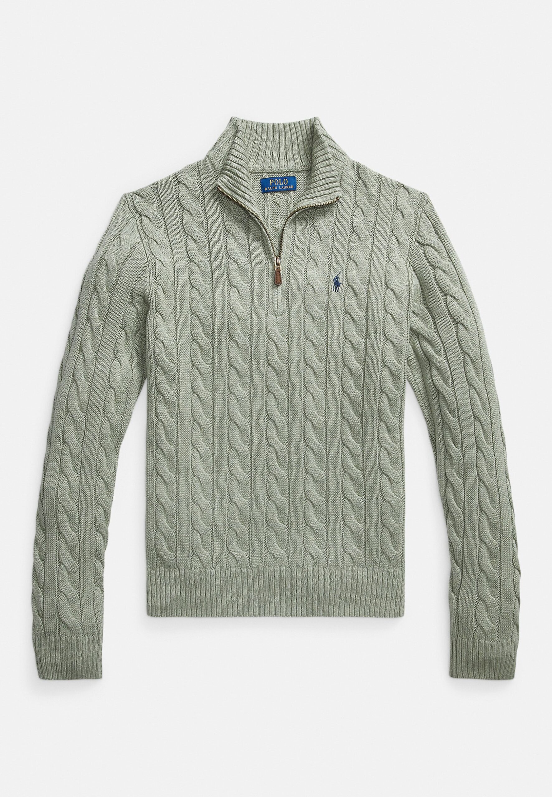 CABLE-KNIT COTTON QUARTER-ZIP SWEATER – Jumper – mottled light green